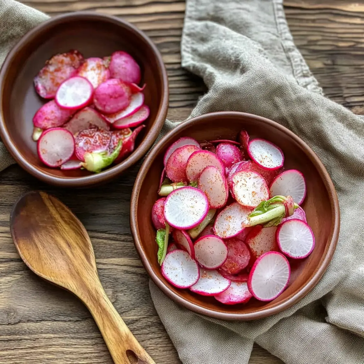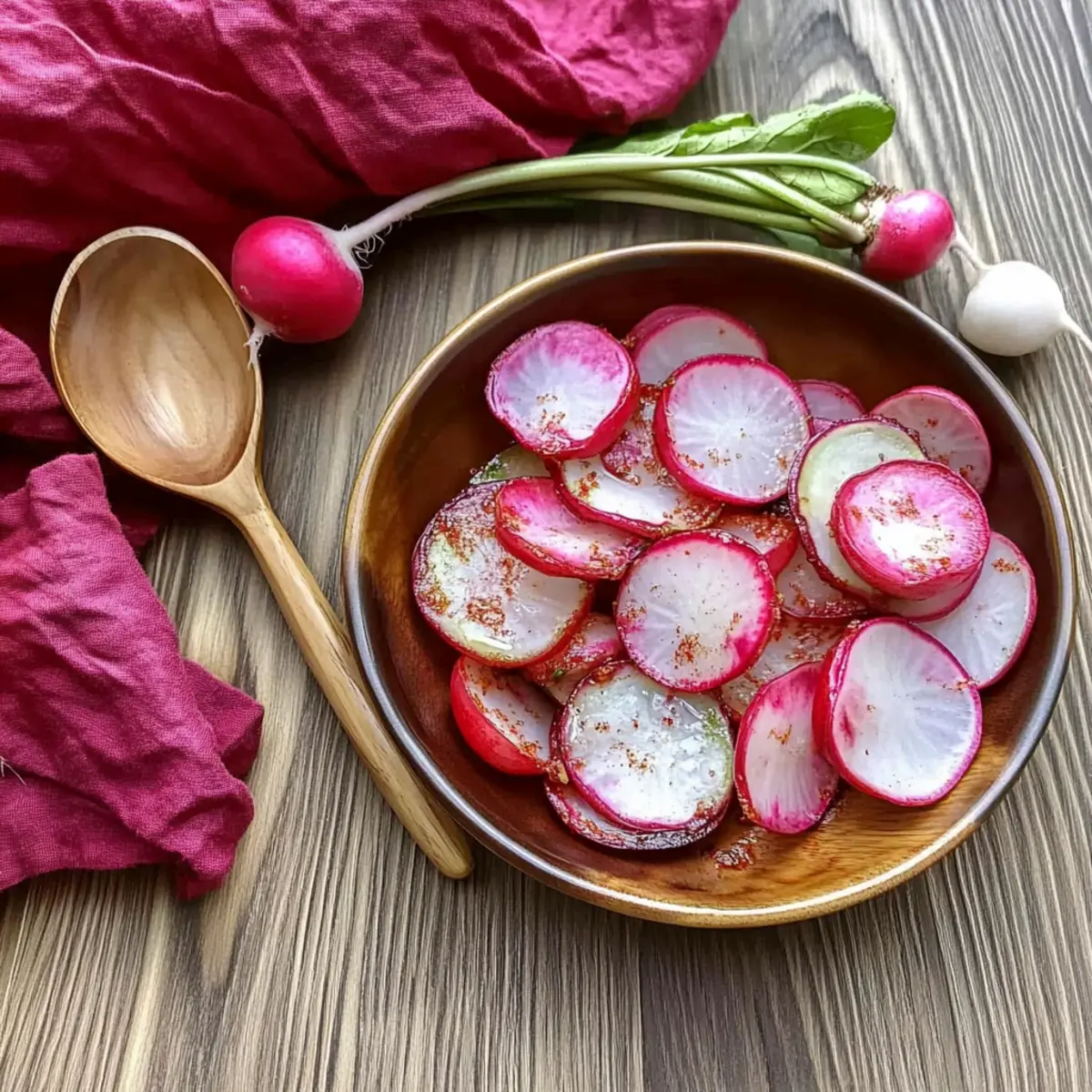 Jump to Recipe Print RecipeAs the unmistakable aroma of garlic wafts through the kitchen, I can’t help but feel a surge of nostalgia, remembering carefree afternoons spent crafting homemade snacks. Today, I’m thrilled to share my twist on a beloved classic: Crispy Air Fryer Radish Chips. This vegan snack not only satisfies your crunchy cravings but also delivers a delightful boost of nutrients. With minimal prep time, these chips are the perfect healthy alternative to traditional potato chips, making them a staple for guilt-free munching. Plus, they’re entirely gluten-free and low in cholesterol, ensuring everyone can indulge without worry. Ready to transform your snacking game and embrace something deliciously innovative? Let’s dive in and explore the simple joy of air frying radishes together! Why are Air Fryer Radish Chips amazing? Healthy Alternative: These crispy chips are a guilt-free snack, offering all the crunch without the calories of traditional chips. Vegan-Friendly: Packed with nutrients, they fit seamlessly into any plant-based diet while satisfying salty cravings. Quick & Easy: With just a few simple steps and minimal prep time, you can whip up a batch in no time, making them perfect for spontaneous snacking. Versatile Flavors: Experiment easily with your favorite spices, from savory garlic to zesty cayenne. Get creative in the kitchen! Crowd-Pleasing Snack: Whether serving at a gathering or enjoying solo, these radish chips are a hit with everyone looking for a healthy crunch. Air Fryer Radish Chips Ingredients For the Chips • Radishes – The star ingredient; select fresh, firm radishes for maximum crunch and flavor. • Olive Oil – Provides richness and helps achieve that perfect crispy texture; avocado oil works as a healthy substitute. • Salt – Essential for enhancing flavors; feel free to adjust to your taste preference. • Black Pepper – Adds a gentle kick; swap with cayenne pepper if you’re craving extra heat. • Garlic Powder – Infuses a delicious savory depth; onion powder or your favorite herbs can also work well as substitutions. For Serving (Optional) • Hummus – A creamy dip that complements the crunchiness of the chips beautifully. • Yogurt-based dip – Provides a refreshing balance to the spicy flavors of the radish chips. Enjoy the delightful crunch and healthy benefits of these air fryer radish chips while exploring different flavors and combinations! Step‑by‑Step Instructions for Air Fryer Radish Chips Step 1: Prepare Radishes Start by washing the radishes thoroughly under cool water to remove any dirt. Once they’re clean, pat them dry with a kitchen towel—this ensures they crisp up nicely in the air fryer. Choose firm, fresh radishes for the best texture and flavor, as they are the star of your air fryer radish chips. Step 2: Slice Next, slice the radishes into quarter-inch thick discs using a sharp knife or mandolin for perfect uniformity. Consistent thickness helps the radish chips cook evenly and achieve that delightful crunch. Once sliced, keep them in a bowl ready for seasoning with garlic powder and other spices. Step 3: Toss in Oil In a mixing bowl, drizzle olive oil over the radish slices. Toss them gently to coat each slice evenly with the oil—this will help them crisp up in the air fryer. Aim for a light but thorough coating; using just enough oil will lead to healthier and crunchier air fryer radish chips. Step 4: Season Sprinkle your desired amount of garlic powder, salt, and black pepper over the tossed radishes. Toss again until the seasonings are evenly distributed, ensuring every chip is flavorful. Feel free to get creative with the seasoning based on your preferences; the modifications can elevate your air fryer radish chips even more. Step 5: Cook Place the seasoned radish slices in a single layer in the air fryer basket, making sure they are evenly spaced for optimal air circulation. Set the air fryer to 360°F and cook for 10 minutes. Midway through, give the basket a shake to ensure even cooking and check for that golden, crispy finish. Step 6: Serve Once done, carefully remove the radish chips from the air fryer and allow them to cool slightly, which enhances their crispness. Serve immediately for the best texture, pairing them with a rich dip like hummus or a yogurt-based sauce for an even more enjoyable snacking experience. What to Serve with Crispy Air Fryer Radish Chips Elevate your snacking experience with these delightful radish chips, and discover what pairs perfectly with their crunch and flavor. Creamy Hummus: This smooth dip complements the radish chips’ crunch, adding richness and depth that enhances every bite. Zesty Yogurt Dip: A refreshing yogurt-based dip cools the palate while harmonizing with the savory notes of the radish, creating a fantastic balance. Crisp Green Salad: Serve with a bright salad packed with fresh veggies; the textural contrast makes for a vibrant side to your chips. Spicy Salsa: For a kick of flavor, a fresh salsa brings a zesty counterpoint, turning your snack into a bold experience. Savory Guacamole: Creamy guacamole with its rich avocado flavor pairs beautifully, creating a perfect marriage of creamy and crunchy textures. Sparkling Lemonade: A chilled glass of sparkling lemonade adds a refreshing citrusy twist, cleansing the palate with each bite of crispy goodness. Dark Chocolate Treats: For a sweet finish, pair your chips with a small piece of dark chocolate; the contrasting flavors create a delightful end to your snack! Variations & Substitutions for Air Fryer Radish Chips Feel free to get creative and customize your air fryer radish chips to suit your taste and dietary needs! Spicy Kick: Add a sprinkle of cayenne pepper or chili powder for a zesty heat that will awaken your senses and leave you craving more. Dairy-Free Cheesy: Incorporate nutritional yeast to give your chips a delightful cheesy flavor without the dairy. It’s a great way to elevat