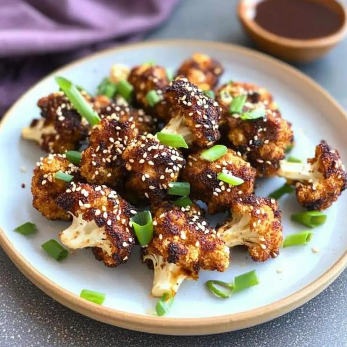 Jump to Recipe Print RecipeAs I stood in my kitchen, the enticing aroma of roasted garlic mingled with the savory scent of soy sauce, transporting me straight to a bustling Asian street market. That’s when I knew it was time to whip up a batch of my crunchy Vegan Air Fryer Sesame Cauliflower Wings. These delightful bites not only satisfy your cravings for something crispy and savory, but they’re also a healthy alternative to traditional wings—perfect for a quick snack or as a crowd-pleasing appetizer at your next gathering. With minimal oil required and a sprinkle of sesame seeds for that extra crunch, these cauliflower wings are not only plant-based but also gluten-free, making them a fantastic choice for various dietary needs. Are you ready to revamp your snack game? Let’s dive into this fun, flavorful recipe that everyone will be raving about! Why are these wings so irresistible? Crispy Excellence: These Air Fryer Sesame Cauliflower Wings deliver the perfect crunch without the extra fat, leaving you feeling guilt-free. Flavor Explosion: Each bite is infused with a delightful medley of Asian-inspired flavors—garlic, soy sauce, and sesame seeds tantalize your taste buds. Versatile Delight: Enjoy them as a snack or a main dish; they adapt gracefully to any meal or gathering. Easy to Make: With simple steps and minimal prep time, you can whip these up faster than you can order takeout! Diet-Friendly: These wings are both vegan and gluten-free, ensuring everyone can enjoy them, making them a fantastic addition to gatherings or meal preps. Don’t forget to check out Healthy Sesame Chicken for another delicious twist, or try Bbq Steak Bowls for satisfying meal ideas! Air Fryer Sesame Cauliflower Wings Ingredients These ingredients are all you’ll need to create the crispy perfection of Air Fryer Sesame Cauliflower Wings! For the Coating Cauliflower – A fresh, medium-sized cauliflower provides the main volume and texture; ensure it’s crisp and spot-free. Almond Flour – Adds a delightful crunch and slight nuttiness; feel free to swap with Panko breadcrumbs for a different texture. Cornstarch – This key ingredient creates that irresistible crisp; arrowroot can also do the trick as a substitute. Rice Flour – Enhances the overall crispiness; if unavailable, use an equal amount of cornstarch. Garlic Powder – Infuses depth and flavor; fresh garlic (1 tbsp chopped) can be an aromatic substitute. Black Pepper – A pinch adds the perfect mild heat; freshly ground offers the best flavor! Salt – Elevates the dish; adjust according to your personal taste. Oil – Just a dash in the batter provides lovely crispness; omit for a lighter option. For the Sauce Soy Sauce/Tamari – Brings in rich umami; use Tamari to keep this vegan and gluten-free! Vinegar – A touch adds necessary acidity to balance the flavors; any type works well. Siracha/Chili Garlic Sauce – For a kick of heat; customize the amount to your spice preference. Sweetener (Jaggery/Brown Sugar/Maple Syrup) – Essential for balancing the flavors; pick according to your dietary needs. For Garnish Sesame Seeds – Perfect for a crunchy topping; don’t skip this for added texture! Spring Onion Greens – The finishing touch, adding a fresh flavor and vibrant color! You’re on your way to crafting these delicious Air Fryer Sesame Cauliflower Wings with these simple, accessible ingredients! Step‑by‑Step Instructions for Air Fryer Sesame Cauliflower Wings Step 1: Prep Cauliflower Begin by rinsing your medium-sized cauliflower thoroughly under cool water. Cut it into bite-sized florets, ensuring they are evenly sized for consistent cooking. To enhance the flavor and texture of the Air Fryer Sesame Cauliflower Wings, blanch the florets in boiling water for 1 minute, then drain and dry them completely with a kitchen towel. Step 2: Create Coating In a mixing bowl, whisk together cornstarch, rice flour, garlic powder, black pepper, salt, and ¼ cup of water until it forms a smooth slurry. For added crispiness, incorporate 1 teaspoon of oil into the mixture. This coating will provide your cauliflower wings a tasty and crunchy exterior, ensuring every bite is flavorful and satisfying. Step 3: Coat Cauliflower Dip each cauliflower floret into the prepared slurry, ensuring they are completely coated. After that, toss them in almond flour to achieve an even and generous layer all around. This step is crucial for the Air Fryer Sesame Cauliflower Wings to achieve that irresistible crunchy texture, so be thorough and ensure no florets escape the coating. Step 4: Air Frying Preheat the air fryer to 200°C (400°F) for about 5 minutes. Lightly brush the fryer basket with oil to prevent sticking. Arrange the coated cauliflower florets in a single layer, ensuring enough space for air to circulate. Air fry the wings for 12-15 minutes, shaking the basket halfway through, until they are golden brown and crispy, signaling they’re ready to be coated in sauce. Step 5: Prepare Sauce While the wings are air frying, heat a small amount of oil in a pan over medium heat. Add minced garlic and sauté until fragrant, about 30 seconds. Then, pour in soy sauce or tamari, vinegar, siracha, and your choice of sweetener. Stir well and let the sauce simmer for 2-3 minutes to meld the flavors, creating a delightful coating for your Air Fryer Sesame Cauliflower Wings. Step 6: Combine Once the cauliflower wings are crispy and golden, remove them from the air fryer and promptly toss them in the prepared sauce. Ensure each floret is coated evenly for maximum flavor. After coating, garnish with sesame seeds and chopped spring onion greens, which will add a fresh, vibrant touch to your beautiful Air Fryer Sesame Cauliflower Wings. Step 7: Serve For the best texture and flavor, serve the wings immediately while they’re still hot and crispy. These delicious Air Fryer Sesame Cauliflower Wings make an excellent snack or appetizer, perfect for any gathering 