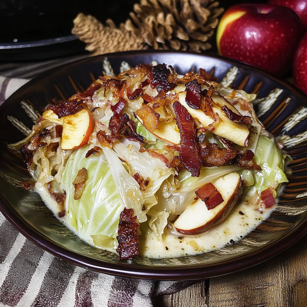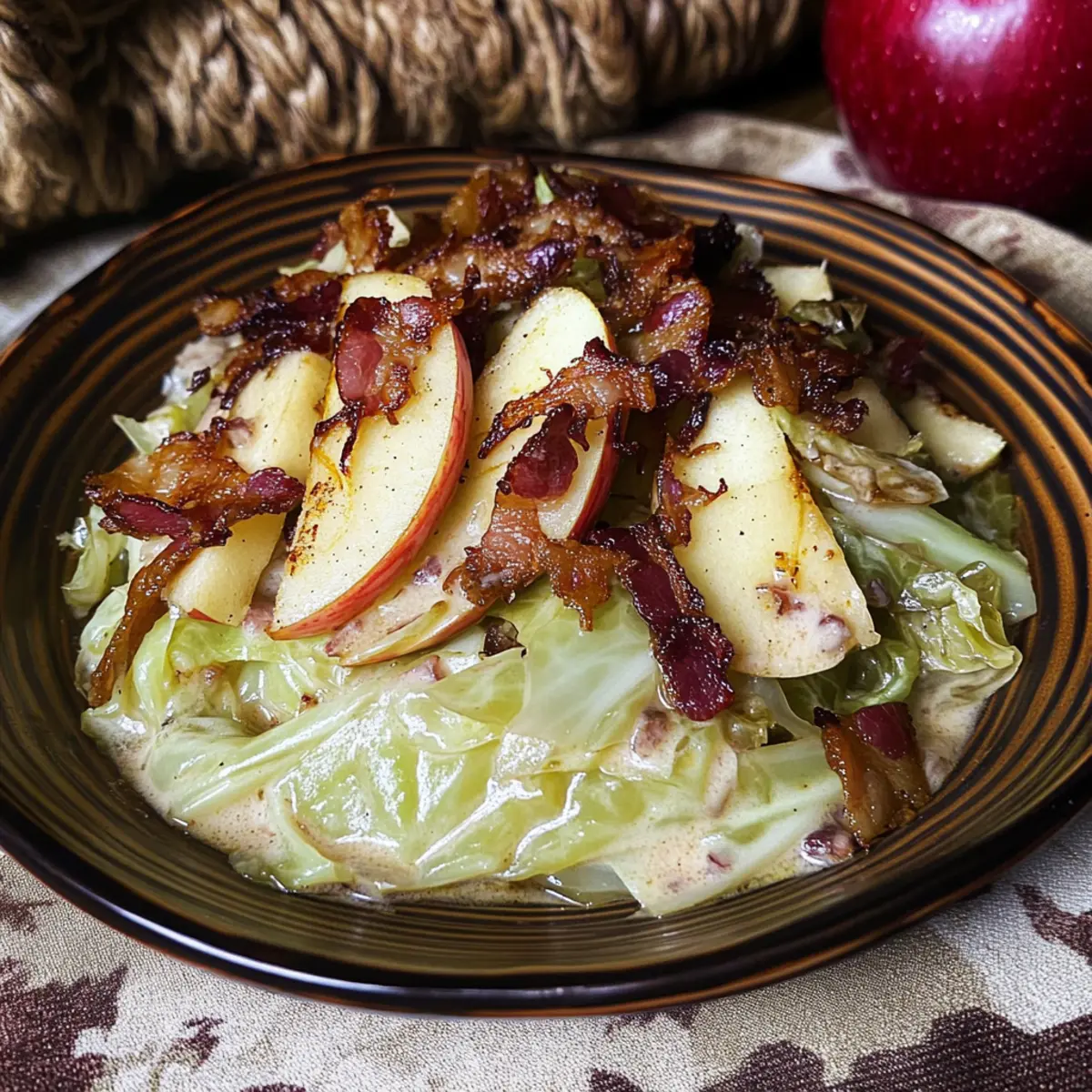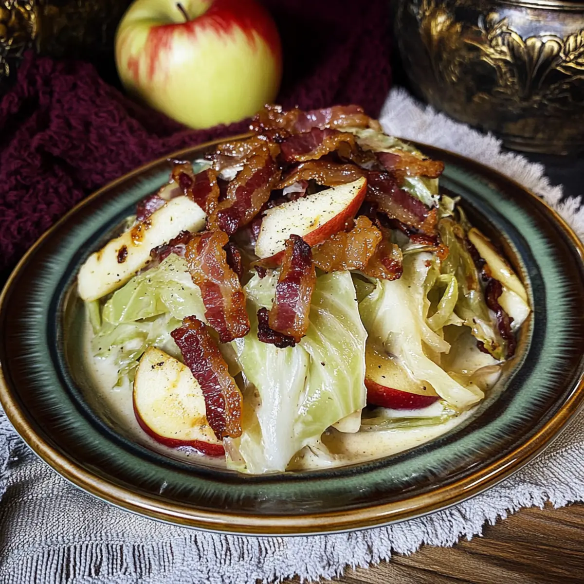 Jump to Recipe Print RecipeThe aroma of slow-braising cabbage transforms any kitchen into a comforting sanctuary, whispering tales of home-cooked warmth. With this Apple Cream Braised Cabbage, I’ve captured the spirit of Rohan, crafting a dish that’s both savory and subtly sweet. Perfect as a hearty side dish, this recipe marries tender cabbage with the delightful crunch of apples, enhanced by the optional addition of bacon for that extra layer of flavor. Not only is it an impressive way to elevate your dinner table, but it’s also adaptable for vegetarians or those looking to explore new culinary traditions. Imagine serving this delightful dish alongside roasted meats or as part of a festive gathering—it’s sure to impress! Are you ready to bring a touch of Middle Earth into your home cooking? Why is Apple Cream Braised Cabbage a Must-Try? Hearty and satisfying, this dish offers a unique blend of flavors that will warm your soul. Versatile options let you easily customize it for vegetarians by swapping bacon for sautéed mushrooms. Rich and creamy perfection comes from the heavy cream, enhancing the cabbages’ buttery texture. Quick to prepare, you can whip this up and have it roasting in no time, making dinner a breeze! Crowd-pleaser status ensures this dish will be the star at any gathering, pairing perfectly with a range of mains, just like my delicious Baked Mac Cheese or Teriyaki Pineapple Chicken. Apple Cream Braised Cabbage Ingredients • Want to whip up a warm, savory dish? Here’s what you’ll need! For the Cabbage Dish Bacon – Adds a salty, savory component; omit for a vegetarian option. Cabbage – Provides a tender, buttery texture when braised; use green cabbage and keep the core for better structure. Apples – Introduces delightful sweetness; Gala apples work well, but feel free to substitute with your favorite variety (e.g., Honeycrisp). Apple Juice – Gives moisture and sweetness; can be replaced with cider for a bolder flavor. Grainy Mustard – Enhances flavor with a spicy kick; substitute with Dijon mustard if needed. Kosher Salt – Brings out the flavors; adjust to taste. Heavy Cream – Contributes richness and creaminess; opt for light cream for a lighter dish. Optional Toppings Reserved Bacon – Sprinkle on top for an extra layer of crunch and flavor; a delicious complement to the cabbage. Step‑by‑Step Instructions for Apple Cream Braised Cabbage Step 1: Sauté the Bacon Begin by heating a non-stick skillet over medium heat. Add diced bacon and sauté for about 5–7 minutes, or until it becomes browned and crispy. Use a slotted spoon to transfer the bacon to a plate while leaving approximately 1 tablespoon of rendered fat in the skillet. This will create a savory base for the Apple Cream Braised Cabbage. Step 2: Brown the Cabbage In the same skillet, carefully place cabbage wedges cut-side down. Allow them to brown for 2–3 minutes on each side, until they develop a golden crust. This step adds depth to the flavors of your Apple Cream Braised Cabbage. Once browned, remove the wedges and set them aside for later use in the baking dish. Step 3: Prepare the Baking Dish Preheat your oven to 400°F (200°C). Lightly grease a 13″ x 9″ baking dish with cooking spray or olive oil. Arrange the browned cabbage wedges in the dish, overlapping them if necessary for an even layer. Scatter the apple wedges around and in between the cabbage, creating a colorful and appealing base for the dish. Step 4: Mix the Creamy Sauce In a mixing bowl, combine apple juice, grainy mustard, and kosher salt to taste. Whisk together until blended. Gradually add in the heavy cream, continuing to whisk until the mixture is smooth. This creamy sauce will elevate your Apple Cream Braised Cabbage with rich flavor and moisture. Step 5: Combine and Top Pour the creamy mixture over the arranged cabbage and apple in the baking dish, ensuring everything is well coated. Sprinkle the reserved, crispy bacon over the top to add texture and flavor. As the flavors meld together during baking, they will transform your dish into a mouthwatering masterpiece. Step 6: Bake to Perfection Place the baking dish in the preheated oven and bake for 45–55 minutes. Every 15 minutes, baste the cabbage with the cream sauce to keep it moist and enhance the flavors. Your Apple Cream Braised Cabbage is ready when it is tender and the liquid has reduced, leaving you with a comforting, rich side dish. Make Ahead Options These Apple Cream Braised Cabbage preparations are perfect for busy home cooks looking to save time! You can chop the cabbage and apples up to 24 hours before and store them in an airtight container in the refrigerator to maintain their freshness. The creamy sauce can also be prepared ahead of time, refrigerating it for up to 3 days. When you’re ready to serve, simply follow the final steps of browning the cabbage and assembling the dish as directed, then bake it until tender. This way, you’ll enjoy all the comforting flavors of homemade Apple Cream Braised Cabbage with minimal effort on the day of your meal! What to Serve with Apple Cream Braised Cabbage The comforting aroma of this warm side dish invites you to create a nourishing meal that brings everyone to the table. Roasted Chicken: Juicy, herb-seasoned chicken complements the muted sweetness of the cabbage wonderfully, making it a satisfying duo. Pork Tenderloin: The rich flavors of a seared pork tenderloin pair beautifully, enhancing the dish’s savory notes. Serve with a drizzle of sauce for added depth. Baked Potatoes: Fluffy, buttery baked potatoes provide a lovely texture contrast that balances the creamy cabbage—perfect for soaking up all that delicious sauce. Fresh Green Salad: A light and crisp salad with a zesty vinaigrette adds freshness to your meal, brightening each bite amidst the hearty flavors. Savory Sausages: Grilled or pan-seared sausages bring a burst of flavor that complements the richness while adding