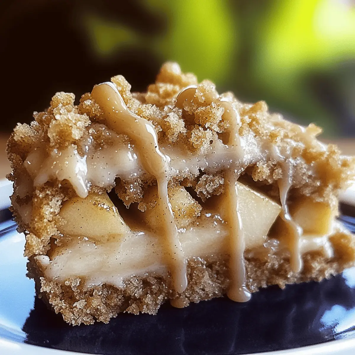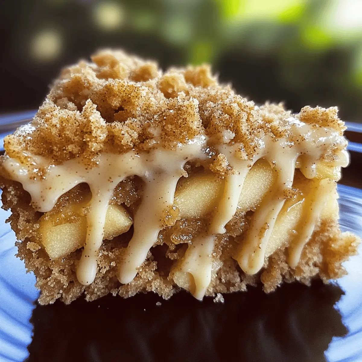 Jump to Recipe Print RecipeAmidst the cozy aroma of fall, I stumbled upon a delightful way to capture the essence of the season with my Apple Crumb Cake with Cinnamon Apple Drizzle. As I sliced into this cake, the warm scent of cinnamon mingled with the sweet notes of baked apples created an irresistible invitation to gather around the table. This recipe is a true labor of love, featuring moist layers embraced by a buttery crumb topping and a drizzle that adds a beautifully spiced finish. Not only is it a comforting dessert that’s perfect for any occasion, but it’s also quick to prepare—making it an effortless crowd-pleaser. So, are you ready to bring this slice of autumn into your kitchen? Let’s dive in and uncover how to make this delicious treat! Why is This Cake So Irresistible? Warmth of home-baked goodness: The Apple Crumb Cake with Cinnamon Apple Drizzle fills your kitchen with an inviting aroma that instantly warms the heart. Versatile delights: Customize the recipe by incorporating nuts or experimenting with different fruits like pears to please every palate. Quick and Easy: Whip it up in no time! With simple steps, it’s perfect for both novice cooks and seasoned chefs alike. Perfect for Sharing: Whether it’s a family gathering or a cozy evening with friends, this cake is sure to be a hit—don’t forget to serve it warm with a scoop of vanilla ice cream for the ultimate treat! A Dash of Nostalgia: Reminiscent of your favorite autumn memories, each bite brings back the joy of family feasts and festive celebrations, making it one dessert you’ll keep returning to. Apple Crumb Cake Ingredients • Here’s everything you need to create this delightful Apple Crumb Cake with Cinnamon Apple Drizzle! For the Cake Apples – Choose any variety like Granny Smith or Honeycrisp for a perfect balance of sweet and tart. Flour – Use all-purpose flour for the best structure, or opt for a gluten-free flour blend when needed. Butter – Adds richness to the crumb topping; for a dairy-free option, try margarine or vegan butter. Sugar – Brown sugar enhances the flavor depth, while granulated sugar offers a lighter sweetness. Eggs – Essential for binding; you can replace them with flaxseed meal or applesauce for a vegan variant. Cinnamon – A warm spice that elevates flavor; feel free to adjust the quantity to suit your taste preferences. Baking Powder – A must-have for leavening; ensure it’s fresh to achieve that perfect rise. Vanilla Extract – Enhances the cake’s flavor; almond extract is a wonderful substitution for a twist. For the Crumb Topping Flour – Similar to the cake, use all-purpose flour to create that crumbly texture. Brown Sugar – Adds a rich sweetness and depth to the topping; don’t skip this for maximum flavor. Cold Butter – Keep it cold to achieve a crunchy and crumbly topping—this is key to your cake’s texture. For the Cinnamon Apple Drizzle Brown Sugar – This ingredient sweetens the drizzle while providing that warm flavor. Butter – Helps create a smooth, luscious consistency; substitute with plant-based butter for a dairy-free option. Cinnamon – Enhances the overall flavor profile; adjust the amount to match your love for spice. Cream – Adds richness; use dairy-free cream if you’re following a dairy-free lifestyle. Now you’re armed with the ingredients for this incredible Apple Crumb Cake with Cinnamon Apple Drizzle! Enjoy creating this heartwarming dessert that’s sure to impress everyone at your table! Step‑by‑Step Instructions for Apple Crumb Cake with Cinnamon Apple Drizzle Step 1: Prepare the Apples Start by peeling, coring, and slicing 3-4 large apples into thin pieces. Toss the apple slices with a sprinkle of cinnamon and sugar, allowing them to soak in flavor while you move on to the next steps. The pieces should be evenly coated for the best taste, adding a luscious sweetness to your Apple Crumb Cake. Step 2: Make the Cake Batter In a mixing bowl, cream together ½ cup of softened butter and 1 cup each of brown and granulated sugar until light and fluffy—this should take about 2-3 minutes. Next, incorporate 2 eggs one at a time, mixing well after each addition. Gradually add in 1 ½ cups of flour, 2 teaspoons of baking powder, 1 teaspoon of cinnamon, and 1 teaspoon of vanilla extract, stirring until just combined for a moist batter. Step 3: Combine Apples Gently fold the prepared apple slices into the cake batter, ensuring they are evenly distributed throughout. Be careful not to overmix, as this could affect the texture of your Apple Crumb Cake. After the apples are combined, your batter should have a lovely, chunky consistency with glimpses of sweet fruit peeking through. Step 4: Prepare Crumb Topping In a separate bowl, mix together ½ cup of flour with ½ cup of brown sugar. Cut in ¼ cup of cold butter using a pastry cutter or your fingers until the mixture resembles coarse crumbs. This crumb topping will create a deliciously crunchy finish, so ensure it’s mixed just right and sprinkled generously over the top of your batter later. Step 5: Layer and Bake Pour the apple-infused batter into a greased 9-inch square baking pan, spreading it evenly. Once settled, generously sprinkle the crumb topping over the surface of the cake batter. Bake in a preheated oven at 350°F (175°C) for 45-50 minutes or until the top is golden brown and a toothpick inserted into the center comes out clean. Step 6: Make the Drizzle While your Apple Crumb Cake bakes, prepare the sweet cinnamon drizzle. In a saucepan over medium heat, combine ½ cup of brown sugar, ¼ cup of butter, 1 teaspoon of cinnamon, and ¼ cup of cream. Stir continuously until the mixture is smooth and slightly thickened, about 5 minutes. Set it aside to cool slightly as the cake finishes baking. Step 7: Serve Once baked, remove the Apple Crumb Cake from the oven and allow it to cool in the pan for at least 15 minutes. This cooling period helps the cake set