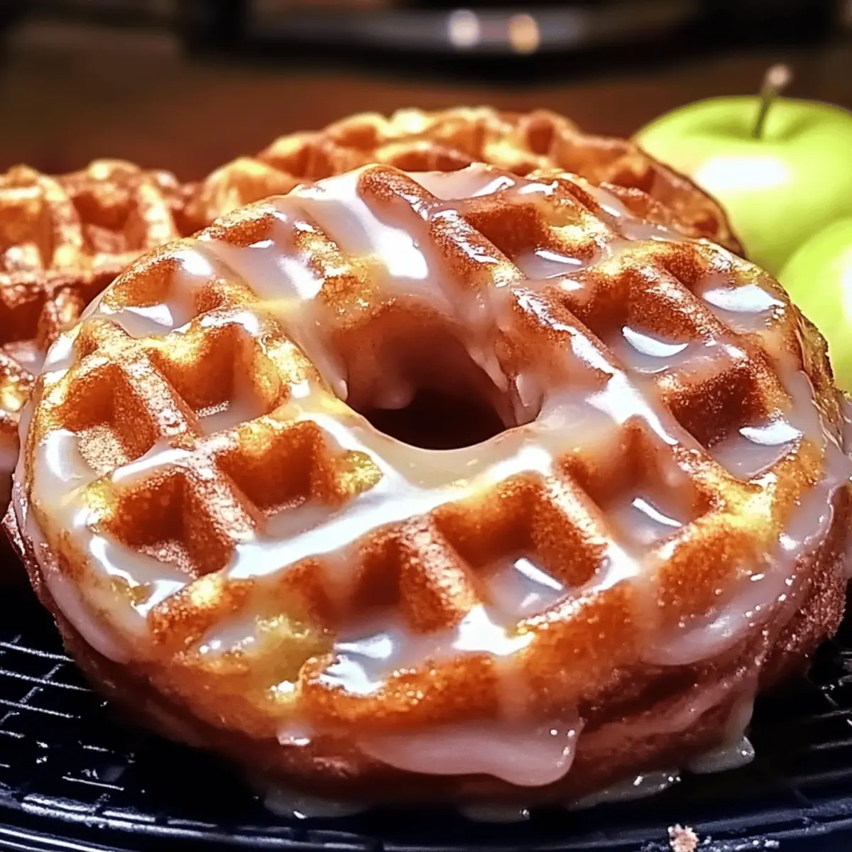 Jump to Recipe Print RecipeThere’s something magical about combining two beloved treats into one delightful creation, and that’s exactly what we have with these Apple Fritter Waffle Donuts! Imagine a warm, golden donut, crispy on the outside and tender inside, all while being infused with sweet apples and fragrant spices. In just 35 minutes, you’ll whip up a batch that’s perfect for busy mornings or a fun dessert to wow your friends and family. These treats are not only incredibly easy to make—ideal for any skill level—but they’re also vegetarian-friendly and can be easily adapted for a vegan diet. So, who’s ready to indulge in a delicious twist on a classic favorite? Let’s dive into the recipe together! Why Are These Donuts So Irresistible? Dazzling Flavor: The combination of apples, cinnamon, and vanilla creates a flavor explosion that is simply irresistible. Quick Prep Time: Whip them up in just 35 minutes, making them a perfect choice for rushed mornings or last-minute entertaining. Versatile Delight: Whether served warm for breakfast or drizzled with glaze as a dessert, these donuts never fail to impress. Diet-Friendly: Easily adapted for vegan diets, ensuring everyone can enjoy this comforting treat. If you’re also looking for a fruity dessert, check out these Apple Fritter Bread or try whipping up some Teriyaki Pineapple Chicken for a savory twist! Crowd-Pleasing Appeal: Their unique twist on a classic means these Apple Fritter Waffle Donuts will be the star of any gathering. Apple Fritter Waffle Donuts Ingredients Unlock the deliciousness with these key ingredients that bring your Apple Fritter Waffle Donuts to life! For the Batter All-Purpose Flour – Provides structure to the donut; substitute with a gluten-free flour blend for a gluten-free option. Baking Powder – Acts as a leavening agent, ensuring your donuts are fluffy; make sure it’s fresh for the best results. Ground Cinnamon – Adds aromatic flavor that perfectly complements the apples; consider mixing in nutmeg or ginger for extra spice. Salt – Enhances the overall flavor; opt for sea salt for a more complex taste. Granulated Sugar – Sweetens the batter; can be replaced with coconut sugar or a low-calorie sugar substitute if desired. Brown Sugar – Provides moisture and a slight caramel flavor; essential for richness. Whole Milk – Keeps the batter moist; feel free to use plant-based milk like almond for a dairy-free version. Unsalted Butter – Adds richness; substitute with coconut oil for a dairy-free alternative. Large Eggs – Binds the ingredients together; for a vegan version, use flaxseed meal mixed with water (1 tbsp flaxseed + 2.5 tbsp water = 1 egg). Vanilla Extract – Infuses a delightful aroma; always opt for pure vanilla extract for the best flavor impact. Peeled and Diced Apples – Introduces moisture and flavor; Granny Smith or Honeycrisp varieties work wonderfully, but feel free to substitute with pears or peaches for a twist. Chopped Walnuts or Pecans (optional) – Provides delightful crunch; omit if you need a nut-free option. Oil for Frying – Prevents sticking to the waffle iron; cooking spray is a great substitute. For the Glaze Powdered Sugar – Delivers the necessary sweetness for the glaze; it’s essential for that dreamy finish. Milk – Adjusts the consistency of the glaze; you can use non-dairy milk as an alternative if desired. Vanilla Extract – Enhances the glaze flavor; go for pure extract if possible for the best taste. Now that you have all the ingredients ready, let’s get cooking! Step‑by‑Step Instructions for Apple Fritter Waffle Donuts Step 1: Combine Dry Ingredients In a large mixing bowl, whisk together the all-purpose flour, baking powder, ground cinnamon, salt, granulated sugar, and brown sugar until well blended. This will create a lovely dry mix that serves as the base for your Apple Fritter Waffle Donuts. Make sure there are no lumps to ensure even flavor and texture throughout. Step 2: Mix Wet Ingredients In a separate bowl, whisk together the whole milk, melted unsalted butter, large eggs, and vanilla extract until the mixture is smooth and well combined. This will be the moist component that brings your dry ingredients to life. Take your time to blend thoroughly, as this will ensure a rich flavor and tender texture in your donuts. Step 3: Combine Ingredients Pour the wet ingredients into the bowl of dry ingredients, gently stirring until just combined. Be cautious not to overmix; a few lumps are perfectly fine! Next, fold in the peeled and diced apples and nuts if you’re using them, enhancing the delightful flavor and texture of your Apple Fritter Waffle Donuts. Step 4: Preheat Waffle Iron Preheat your waffle iron according to the manufacturer’s instructions. Lightly grease the surface with oil or cooking spray to prevent sticking. This step is crucial for achieving a perfectly crispy exterior while keeping the insides fluffy as your treats cook. Step 5: Pour Batter Once your waffle iron is hot, pour enough batter into the center to just cover the surface, usually about 1/2 cup, depending on your waffle iron’s size. Close the iron and cook for about 3 to 5 minutes, or until the waffles turn golden brown and slightly crisp. Keep an eye on them for that perfect, enticing color. Step 6: Prepare the Glaze While the waffles are cooking, whip up the glaze by whisking together powdered sugar, a splash of milk, and vanilla extract in a small bowl until smooth. Adjust the consistency to your liking by adding more milk for a thinner glaze or more powdered sugar for a thicker one. This dreamy glaze will add a sweet finish to your Apple Fritter Waffle Donuts! Step 7: Finish and Serve Once the waffles are cooked and golden brown, gently remove them from the waffle iron and let them cool slightly on a wire rack. Dip the tops into the prepared glaze, letting any excess drip off. Serve these Apple Fritter Waffle Donuts warm for the best ta