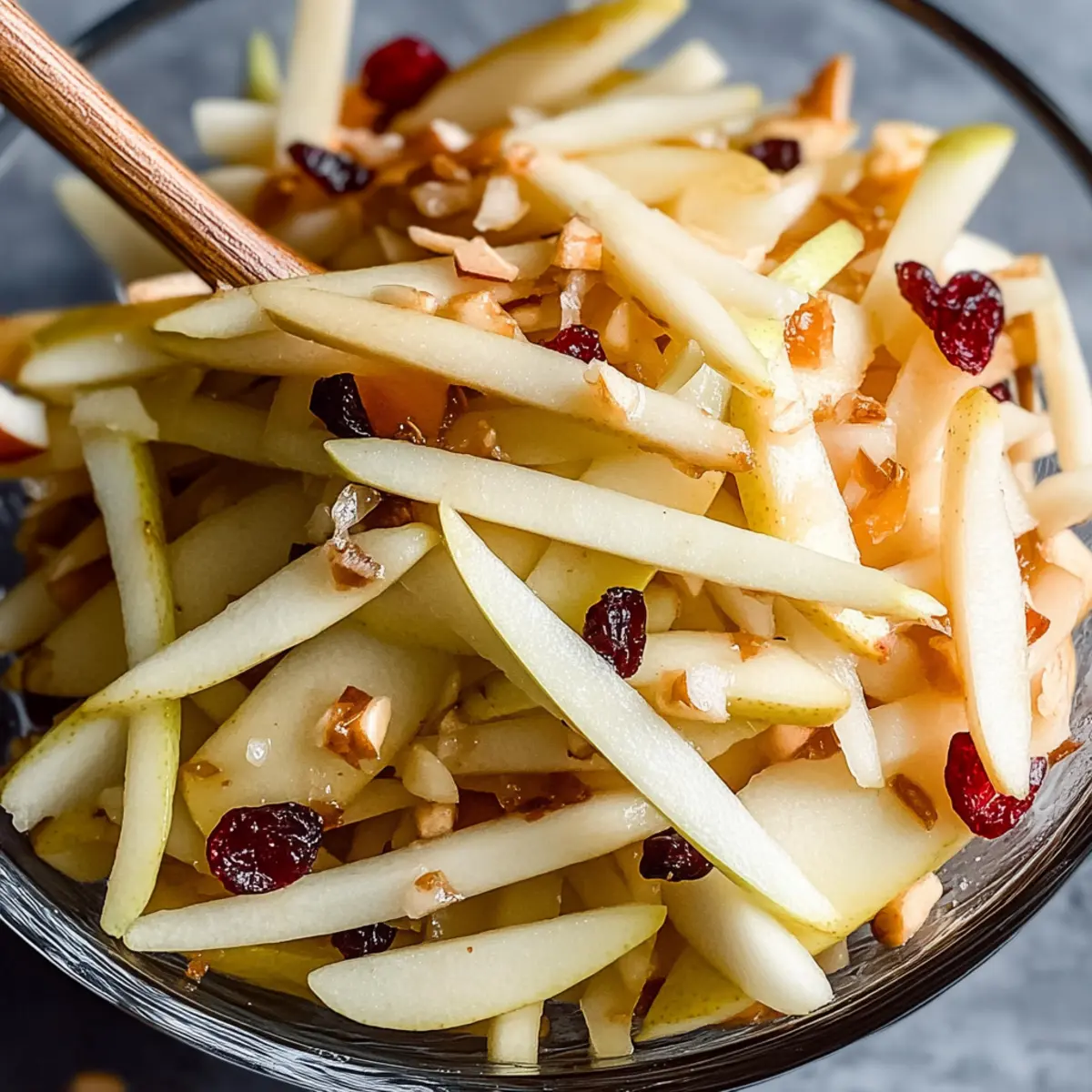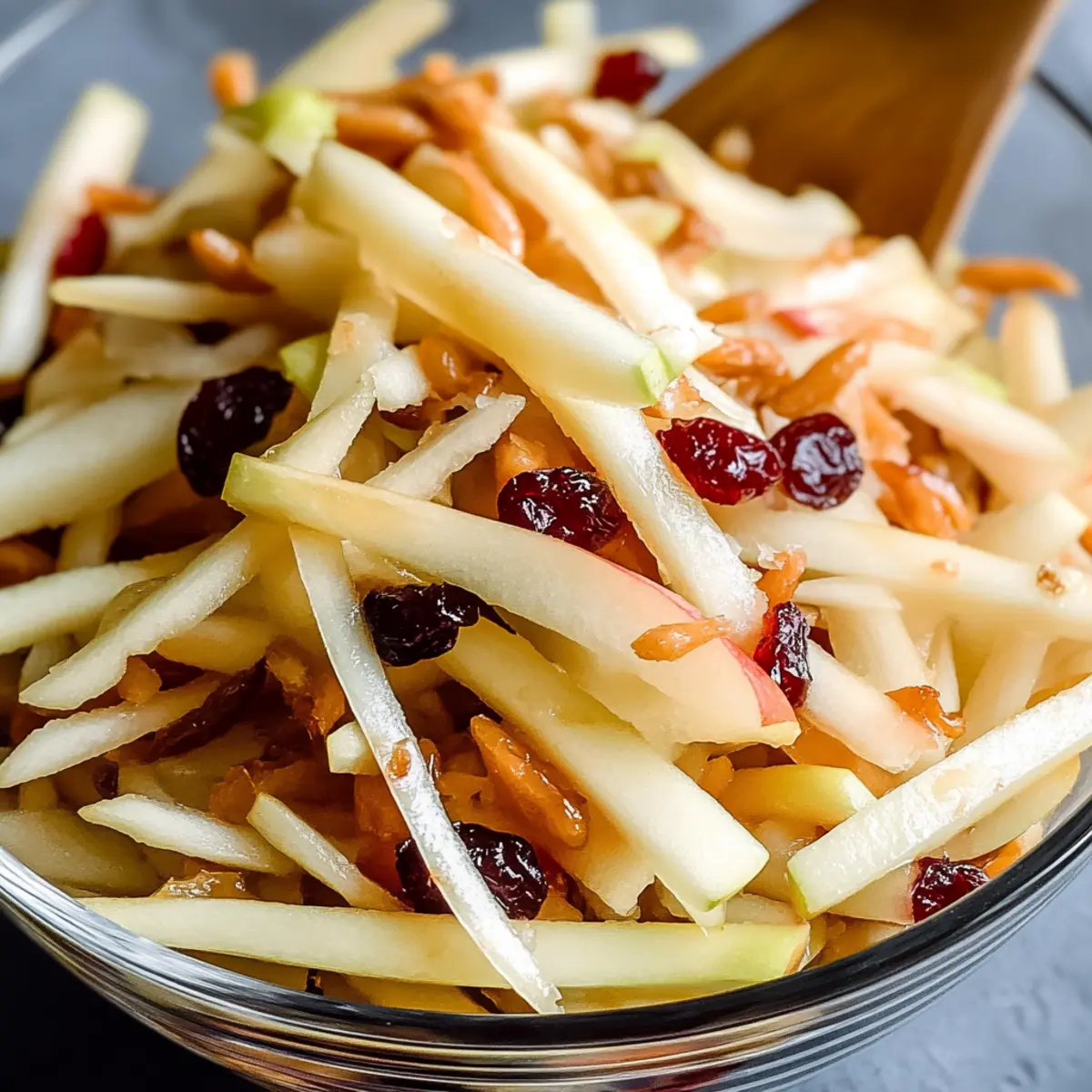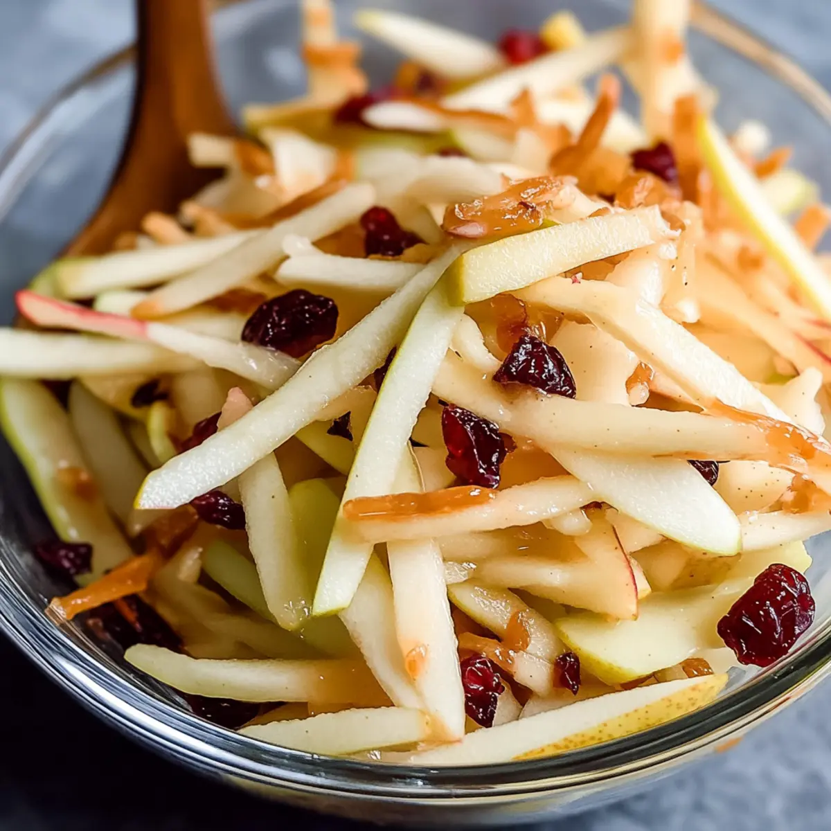 Jump to Recipe Print RecipeAs I was rummaging through my autumn pantry, a delightful thought struck me—what if I could capture the essence of fall in a fresh, crunchy salad? That’s when I whipped up this Apple Pear Slaw with Caramel Cider Vinaigrette, a recipe that transforms humble ingredients into something extraordinary. This refreshing slaw offers a vibrant alternative to your usual mayonnaise-laden sides, making it a perfect companion for roasted meats and hearty dishes. Not only is it a celebration of seasonal produce, but it’s also incredibly easy to prepare, allowing you to spend less time in the kitchen and more time enjoying the company of loved ones. Intrigued? Let’s dive into the luscious world of this fall-inspired dish together! Why is this slaw a must-try? Freshness and Flavor: This slaw bursts with crunchy textures and a sweet-tart taste that captures the essence of fall. Each bite is a delightful journey through seasonal produce. Quick and Easy: With just a few simple steps, you can create a stunning side dish that won’t take up your entire afternoon. Versatile Dish: Perfect as a stand-alone salad or a topping for grilled meats, wraps, or even tacos. It’s adaptable for any meal! Healthy Alternative: Skip the mayonnaise and enjoy a refreshing recipe that’s naturally vegan, making it a nourishing choice for everyone. Plus, if you’re looking for other ways to elevate your meals this fall, check out my recipe for Shrimp Bowl Corn for a tasty twist! Apple Pear Slaw Ingredients • Here’s everything you need to make the Apple Pear Slaw with Caramel Cider Vinaigrette. For the Vinaigrette Caramel Sauce – Adds sweetness and richness; adjust for desired flavor intensity. Apple Cider – Contributes tanginess, enhancing the overall apple taste. Apple Cider Vinegar – Provides acidity to balance sweetness; essential for a perfect vinaigrette. Extra Virgin Olive Oil – Infuses healthy fats and a smooth texture to the dressing. Kosher Salt – Enhances flavor; modify to suit your palate. Freshly Cracked Black Pepper – Adds a hint of heat; personalize to taste. Ground Cinnamon – Brings warmth and a touch of fall flavor; adjust according to preference. For the Slaw Gala Apples – Sweet and crisp; ideal for a refreshing slaw. Substitute with other sweet varieties as desired. Fuji Apples – Offers extra sweetness and crunch; you can also try Honeycrisp for a delightful twist. Bartlett Pears – Adds juicy texture; feel free to substitute with other soft pears if needed. Dried Cranberries – Imparts a chewy sweetness; can replace with raisins or cherries if necessary. Golden Raisins – Adds a pop of sweetness and color; omit if you don’t have them on hand. Now that you’ve got all the ingredients ready, let’s bring the cozy ambiance of fall to your kitchen by whipping up this slaw! Step‑by‑Step Instructions for Apple Pear Slaw with Caramel Cider Vinaigrette Step 1: Make the Vinaigrette In a medium bowl or jar, combine the caramel sauce, apple cider, apple cider vinegar, extra virgin olive oil, kosher salt, freshly cracked black pepper, and ground cinnamon. Whisk vigorously for about 30 seconds or shake the jar until the mixture is well emulsified and slightly thickened. The vinaigrette should have a smooth consistency, ready to brighten the Apple Pear Slaw. Step 2: Prepare the Slaw Using a sharp knife, slice the gala and Fuji apples, along with the Bartlett pears, into long matchsticks. Aim for uniform pieces to ensure even flavor and texture. As you cut, be sure to keep the fruits looking vibrant, avoiding any browning. Place the freshly sliced apples and pears in a large mixing bowl, creating a stunning base for your slaw. Step 3: Combine Ingredients To the bowl with the sliced apples and pears, add the dried cranberries and golden raisins. Gently fold the ingredients together, ensuring that the fruits are evenly distributed for a balanced flavor in every bite. The colorful medley should be visually appealing, showcasing the beauty of autumn’s bounty, setting the stage for the dressing. Step 4: Dress the Slaw Pour about ¼ cup of the caramel cider vinaigrette over the mixed fruits and sprinkle a touch of ground cinnamon for an extra layer of flavor. Carefully toss the slaw with tongs or a spatula, ensuring that every piece is lightly coated with the delicious dressing. The vinaigrette should enhance, not overpower, the fresh tastes of the Apple Pear Slaw. Step 5: Chill Cover the bowl with plastic wrap or a lid, and refrigerate the slaw for at least 1 hour before serving. This chilling time allows the flavors to meld beautifully while keeping the slaw crisp. When you’re ready to serve, the bright and colorful Apple Pear Slaw will have developed a delightful harmony of flavors. Step 6: Serve Once chilled, give the slaw a gentle toss before serving. Transfer it to a beautiful serving bowl to showcase its vibrant colors. Enjoy the refreshing Apple Pear Slaw as a delightful side dish, complementing roasted meats or hearty autumn meals. This slaw is also great for up to 3 days in the fridge, making it a perfect make-ahead option! Expert Tips for Apple Pear Slaw Choose Crisp Fruits: Select firm gala apples and ripe Bartlett pears; overly soft fruit can lead to a mushy slaw. Crisp textures are key to a delightful bite. Adjust Sweetness: Feel free to customize the vinaigrette’s sweetness by varying the amount of caramel sauce. Start small and taste as you go for the perfect balance. Mix Dried Fruit Last: If preparing in advance, hold off on adding dried cranberries or raisins until just before serving to maintain their chewy texture in the Apple Pear Slaw. Chill for Best Flavor: Allow the slaw to chill for at least an hour; this enhances flavor melding and helps the textures hold up beautifully. Experiment with Nuts: For added crunch and nutrition, consider mixing in toasted walnuts or pecans. They pair wonderfully with the flavors of fall! Make Ahead 