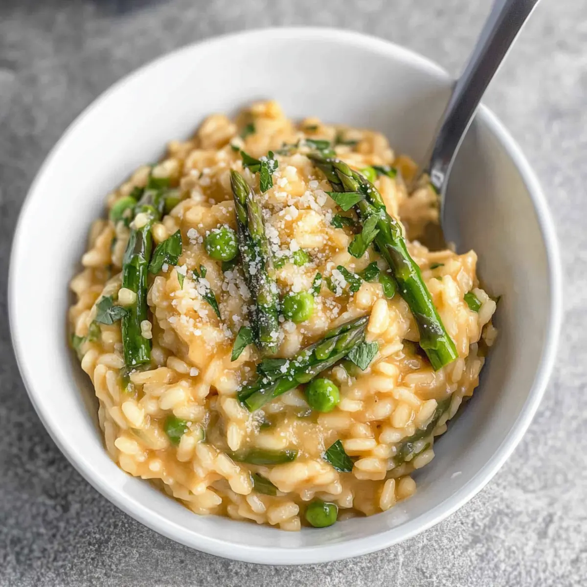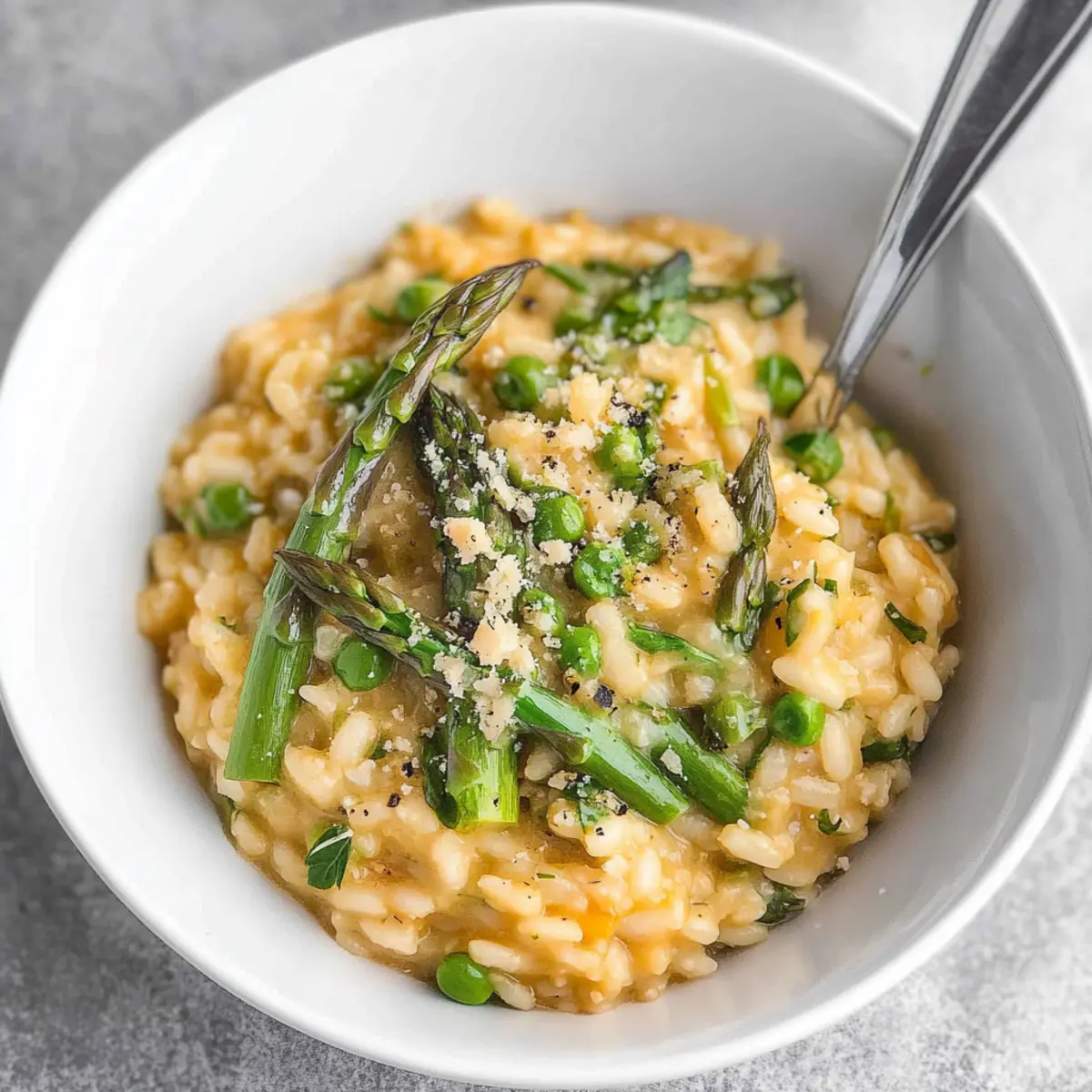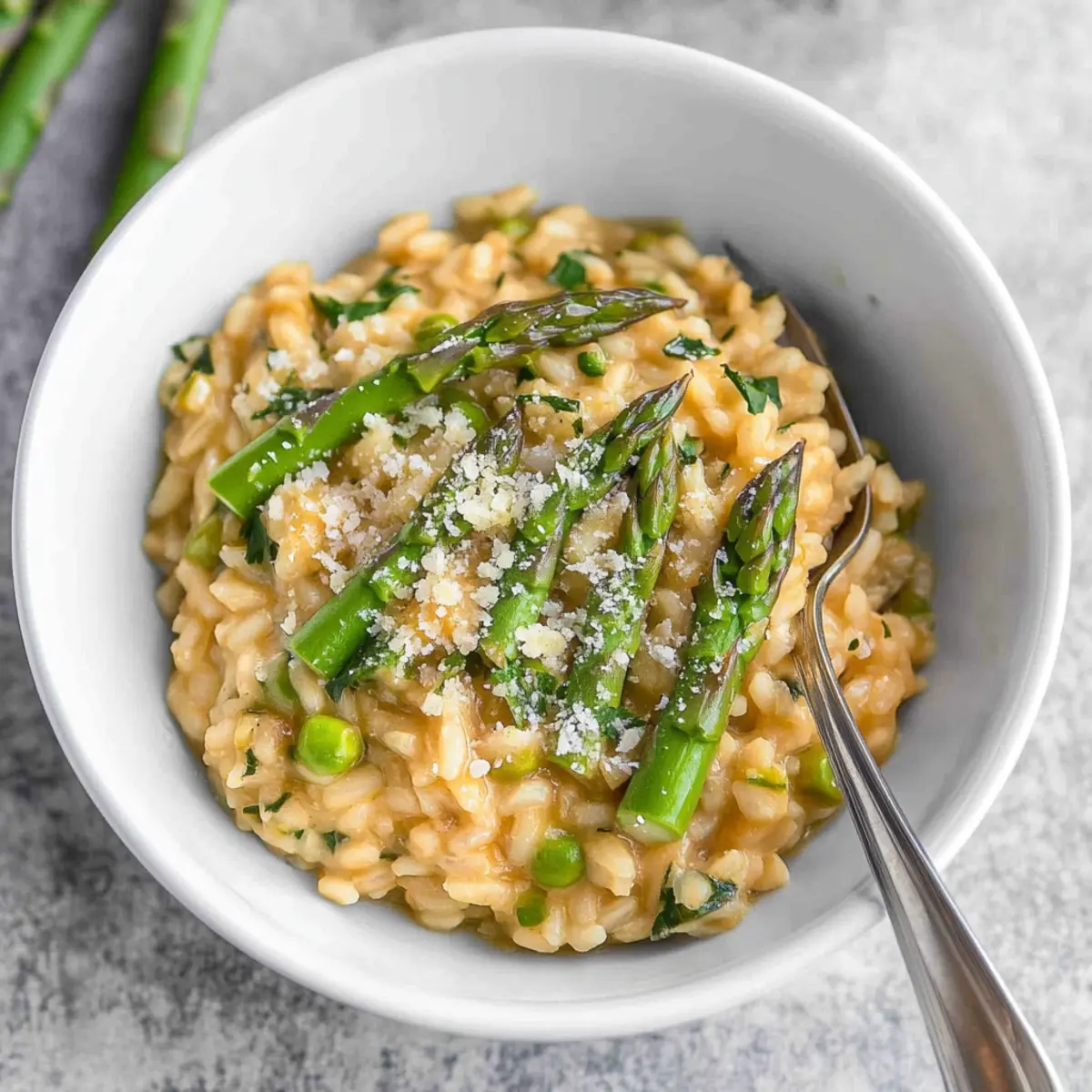 Experience the delightful flavors of spring with this creamy asparagus risotto, perfect for any dinner occasion.
