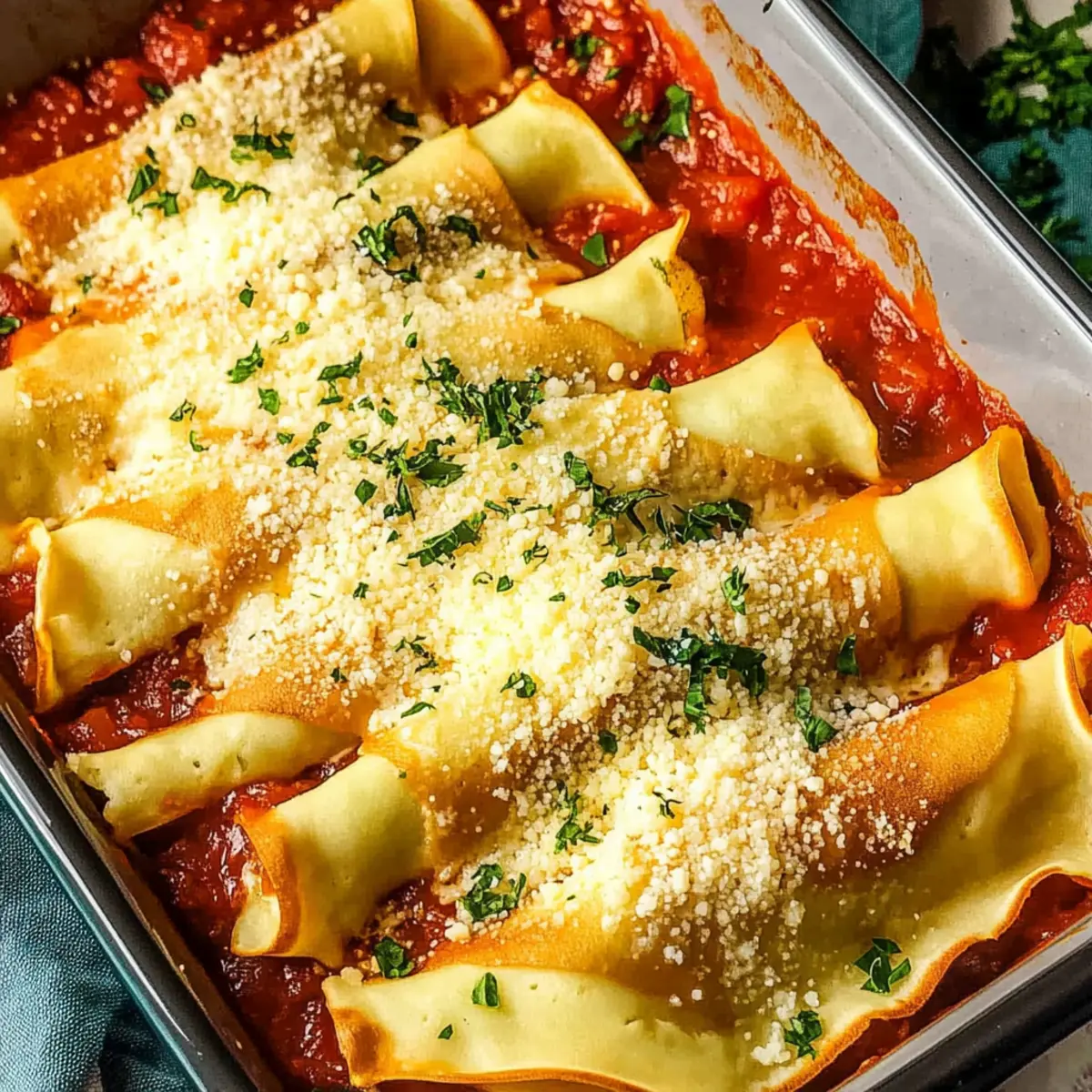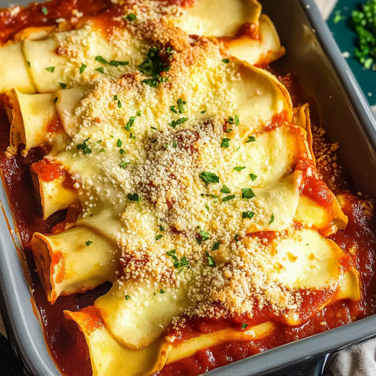 Jump to Recipe Print RecipeAs I stood in my kitchen, the rich aroma of simmering marinara sauce wafted through the air, instantly transporting me to a bustling Italian eatery. This Authentic Homemade Italian Manicotti with Crepes is my take on a classic dish that combines nostalgic flavors with a delightful twist. Using crepes instead of the traditional pasta, it offers a tender, delicate wrap that perfectly envelops a creamy ricotta filling—truly a comfort food for the ages. Not only is this recipe great for impressing your guests during festive gatherings, but it also transforms an ordinary family dinner into a cozy culinary experience. Are you ready to create a masterpiece that brings the warmth of Italy into your home? Let’s dig into the details! Why is this manicotti special? Authentic Flavors: This recipe brings the taste of Italy into your kitchen, celebrating the beauty of traditional dishes. Simple Yet Elegant: Using crepes adds a unique twist that’s both easy to prepare and visually stunning, making it perfect for any occasion. Creamy Filling: The combination of ricotta and mozzarella creates a rich, dreamy filling that will have everyone asking for seconds. Versatile: Whether enjoyed on a cozy weeknight or presented at a holiday feast, this dish fits every dining experience beautifully. Make-Ahead Friendly: Prep the crepes and filling in advance for a quick assembly and baking time later, making hosting stress-free. Elevate your meal by serving this manicotti with a vibrant salad or some delicious garlic bread, just like with Garlic Chicken Thighs or Italian Pasta Fagioli. Get ready to enjoy a delightful Italian experience! Authentic Homemade Italian Manicotti Ingredients • Dive into this comforting recipe and discover the delightful ingredients that make your Authentic Homemade Italian Manicotti with Crepes sing! For the Crepes Whole Milk – Adds moisture and creaminess to the crepe batter; swap with low-fat milk for a lighter option. Large Eggs – Provides structure and binding in both the crepe and filling; choose organic for extra flavor. All-Purpose Flour – Acts as the base for the crepes, giving them structure; use gluten-free flour for a gluten-free dish. Kosher Salt – Enhances flavor in both the crepe batter and filling; table salt is a good alternative if kosher isn’t available. Unsalted Butter – Greases the pan and adds richness to the crepes; non-stick spray works well as a substitute. For the Filling Whole Milk Ricotta Cheese – Adds creaminess and serves as the main filling; straining it results in a thicker consistency. Shredded Whole Milk Mozzarella Cheese – Offers a melty, gooey texture; opt for low-fat cheese for a lighter filling. Grated Parmesan Cheese – Contributes an umami flavor to the filling; you can switch it with Pecorino Romano for a sharper taste. Chopped Fresh Parsley – Provides freshness and color; dried parsley can be used but will alter the flavor slightly. Black Pepper – Adds a hint of spice to the filling; white pepper can be used if you prefer a milder taste. For the Sauce Marinara Sauce (or Old School Italian Gravy) – Acts as the base for cooking and adds flavor; homemade sauce enhances authenticity beautifully. Grated Pecorino Romano Cheese – Melts and browns slightly during baking, adding flavor and richness; more Parmesan can be used as a substitute if desired. With these ingredients at hand, you’re well on your way to creating a dish that not only fills the stomach but also warms the heart—your Authentic Homemade Italian Manicotti with Crepes is just a few steps away! Step‑by‑Step Instructions for Authentic Homemade Italian Manicotti with Crepes Step 1: Prepare Crepe Batter In a blender, combine 2 cups of whole milk, 4 large eggs, 1 ½ cups of all-purpose flour, and ½ teaspoon of kosher salt. Blend until smooth and homogenous. Once well mixed, let the batter chill in the refrigerator for at least 30 minutes, allowing the flour to hydrate fully and the crepes to become light and delicate when cooked. Step 2: Make Filling In a large mixing bowl, combine 15 ounces of whole milk ricotta cheese, 1 cup of shredded mozzarella cheese, ½ cup of grated Parmesan cheese, ¼ cup of chopped fresh parsley, 1 beaten egg, and a pinch of salt and black pepper. Stir until all ingredients are well blended and creamy. Cover the mixture and chill in the refrigerator while you prepare the crepes, enhancing the flavors as it sits. Step 3: Cook Crepes Heat a non-stick skillet over medium-low heat and lightly grease it with unsalted butter. Pour ¼ cup of the crepe batter into the skillet, swirling it around to coat the bottom evenly. Cook until the edges gently lift from the pan, about 30-60 seconds. Carefully flip the crepe using a spatula and cook for an additional 30 seconds until set. Transfer to a plate, and repeat until you have 6-8 crepes. Step 4: Assemble Manicotti Preheat your oven to 350°F (175°C). Spread 2 cups of marinara sauce evenly at the bottom of a 9×13 inch baking dish. Take a crepe, fill it with ⅓ cup of the ricotta filling, and roll it up tightly. Place the filled crepe seam-side down in the baking dish. Continue this process until all crepes are assembled and arranged snugly in the dish. Top with the remaining marinara sauce. Step 5: Bake Sprinkle ½ cup of grated Pecorino Romano cheese over the top of the assembled manicotti. Place the baking dish in the preheated oven and bake for 25-30 minutes. The manicotti should be bubbly and the cheese lightly browned. Remove from the oven and allow it to cool slightly before serving, enhancing the flavor and making it easier to slice. What to Serve with Authentic Homemade Italian Manicotti with Crepes Transform your meal into a comforting Italian feast that delights every sense! Garlic Bread: Piping hot, buttery garlic bread adds a crunchy texture that perfectly contrasts the creamy filling of the manicotti. It’s the ideal vehicle for sopping up delicio