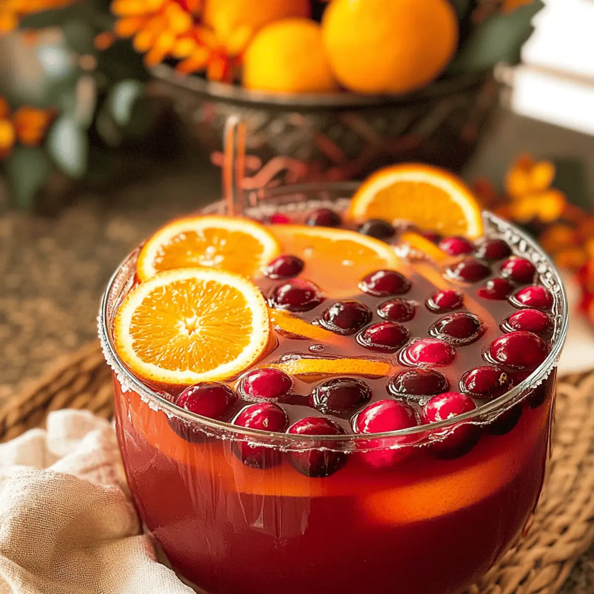 Jump to Recipe Print RecipeAs the leaves turn to hues of gold and crimson, my kitchen transforms into a cozy haven, bustling with the scents of the season. It’s during these beautiful autumn days that I love crafting this delightful Autumn Punch, a vibrant drink that captures the essence of fall. With its gorgeous mix of sweet pineapple, refreshing cranberry, zesty orange, and spiced apple cider, this recipe is not only quick to prepare, taking just 5 minutes, but it’s also perfect for family gatherings and Thanksgiving celebrations. This non-alcoholic punch brings everyone together, whether you’re entertaining friends or simply enjoying a slice of seasonal bliss with the family. Curious how to whip up this seasonal delight? Let’s dive in! Why is Autumn Punch a Must-Try? Simplicity: This recipe is super quick to make, taking only 5 minutes to prepare, making it a go-to for busy hosts. Vibrant Flavors: The unique blend of seasonal juices delivers a refreshingly fruity taste that perfectly captures the spirit of fall. Family-Friendly: Being non-alcoholic, it’s perfect for all ages, ensuring everyone can enjoy a festive drink during gatherings. Customizable: Easily adapt it for adults with spirits or switch up the juices based on your personal preferences. Gorgeous Presentation: With its deep burgundy color and bright garnishes, this punch makes a stunning centerpiece for your holiday table. Whip up this delicious punch and enjoy the flavors of fall. For more autumn-inspired beverages, check out my Delicious Pumpkin Spice Latte. Autumn Punch Ingredients For the Spice Blend Cinnamon Sticks – Adds warm, aromatic spice; substituting with ground cinnamon (1 tsp) will intensify the flavor. Allspice Berries – Provides a sweet and spicy flavor; ground allspice (1 tsp) works in a pinch. Whole Cloves – Imparts a rich, aromatic depth; replace with a pinch of ground cloves for ease. For the Juices Apple Cider – The base for the punch, providing sweetness and delightful fall flavor; swap with fresh apple juice if necessary. Cranberry Juice – Adds tartness and brilliant color; opt for unsweetened if you prefer a less sweet punch. Orange Juice – Offers citrusy brightness; use either store-bought or freshly squeezed for convenience. Pomegranate Juice – Contributes a lovely sweet and tart flavor; any berry juice can be a great substitute. Pineapple Juice – Adds tropical sweetness; feel free to use a fruit juice blend in place of this. For the Fizz and Garnish Lemon-Lime Soda – Provides fizz and sweetness; ginger ale can create a unique flavor profile as a substitute. Orange Slices – Used for garnish and a flavor boost; lemon slices can be an excellent alternative. Cranberries – A lovely garnish that enhances the drink’s visual appeal; both fresh and frozen work beautifully. This delightful Autumn Punch is not only a feast for the eyes but also a delicious way to enjoy seasonal flavors! Step‑by‑Step Instructions for Autumn Punch Step 1: Combine the Spice Blend In a large punch bowl, combine 2-3 cinnamon sticks, 1-2 teaspoons of allspice berries, and 4-6 whole cloves. Pour in 4 cups of apple cider, 2 cups of cranberry juice, 1 cup of orange juice, 1 cup of pomegranate juice, and 1 cup of pineapple juice. Stir gently to mix, allowing the spices to infuse the juices. Aim for a harmonious blend that showcases the essence of your autumn punch. Step 2: Chill the Mixture Once the juices are mixed, cover the punch bowl with plastic wrap or a lid. Place the mixture in the refrigerator for at least 2 hours to chill and enhance the flavors. This step allows the aromatic spices to meld perfectly with the fruity juices, giving your Autumn Punch a deeper, richer taste, perfect for serving during fall gatherings. Step 3: Add the Fizz Just before serving, remove the punch from the refrigerator and add 4 cups of lemon-lime soda to the chilled juice mixture. This fizz adds a festive sparkle and sweetness to your Autumn Punch. Gently stir to combine, being careful not to disturb the carbonation too much. You’ll see the mixture bubble and froth, creating a delightful visual appeal. Step 4: Garnish and Serve To elevate your Autumn Punch, add fresh orange slices and a handful of cranberries as a garnish. These not only provide a pop of color but also infuse extra flavor into the punch. Serve immediately over ice in festive glasses, ladling the punch into each glass, and making sure to distribute the garnishes evenly. Your vibrant Autumn Punch is now ready to bring warmth to your gatherings! Make Ahead Options These Autumn Punch preparations are perfect for busy home cooks looking to save time! You can prepare the juice mixture—containing apple cider, cranberry juice, orange juice, pomegranate juice, and pineapple juice—up to 24 hours in advance. Simply combine all the juices and spices (cinnamon sticks, allspice, and cloves) in a large bowl, cover tightly, and refrigerate. This allows the flavors to meld beautifully while ensuring freshness. When it’s time to serve, just add the lemon-lime soda, orange slices, and fresh cranberries for a fizzy finish. Trust me, the punch will be just as delightful and refreshing, making your gatherings a breeze! Autumn Punch Variations to Try Feel free to get creative with your Autumn Punch! Here are some delicious ideas to make it uniquely yours. Alcoholic Twist: Add 1 cup of rum or vodka for an adult version of your punch. Spicy Kick: Incorporate a dash of cayenne pepper or sliced jalapeños for a surprising heat that complements the sweetness beautifully. Berry Blend: Swap the pomegranate juice with a mix of your favorite berry juices for a vibrant twist. This will enhance the fruity notes and add a lovely color. Herbal Infusion: Try adding fresh mint or rosemary sprigs to your punch. The herbal notes elevate the drink with a refreshing complexity. Ginger Zing: Replace lemon-lime soda with ginger ale for an extra layer of spice and a fizzy delight