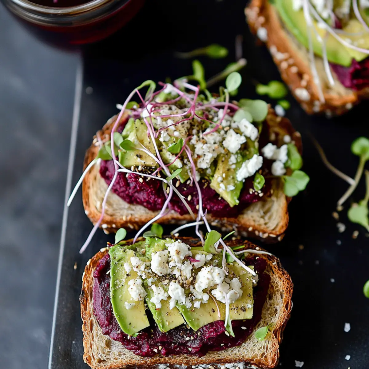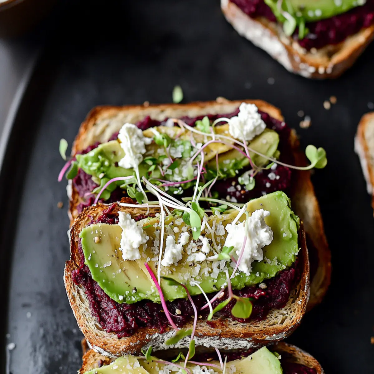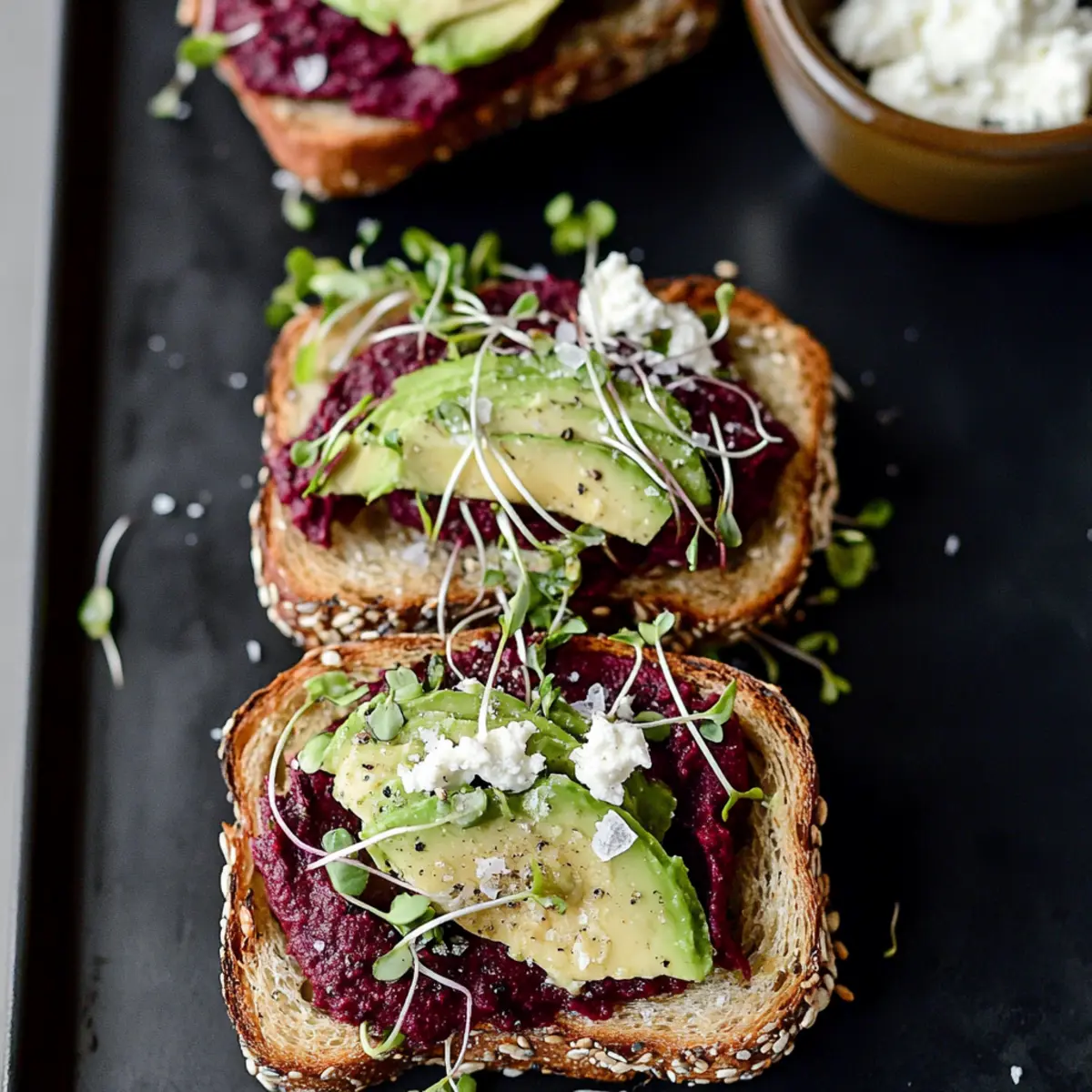 • Experiment with Greens: Don’t hesitate to switch up sprouts or micro-greens. Try arugula or spinach for a unique taste twist in your Avocado Beet Hummus Toast.