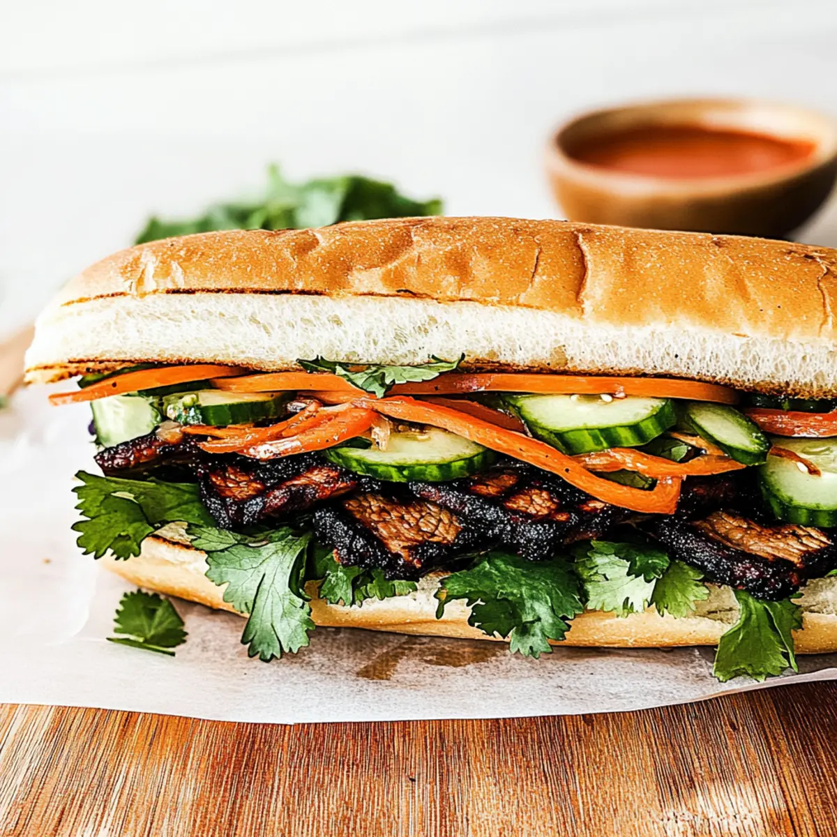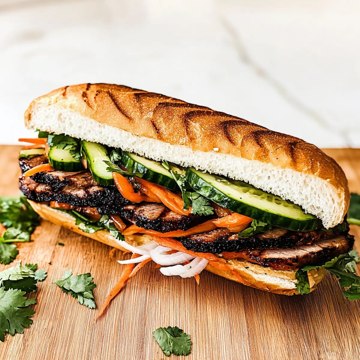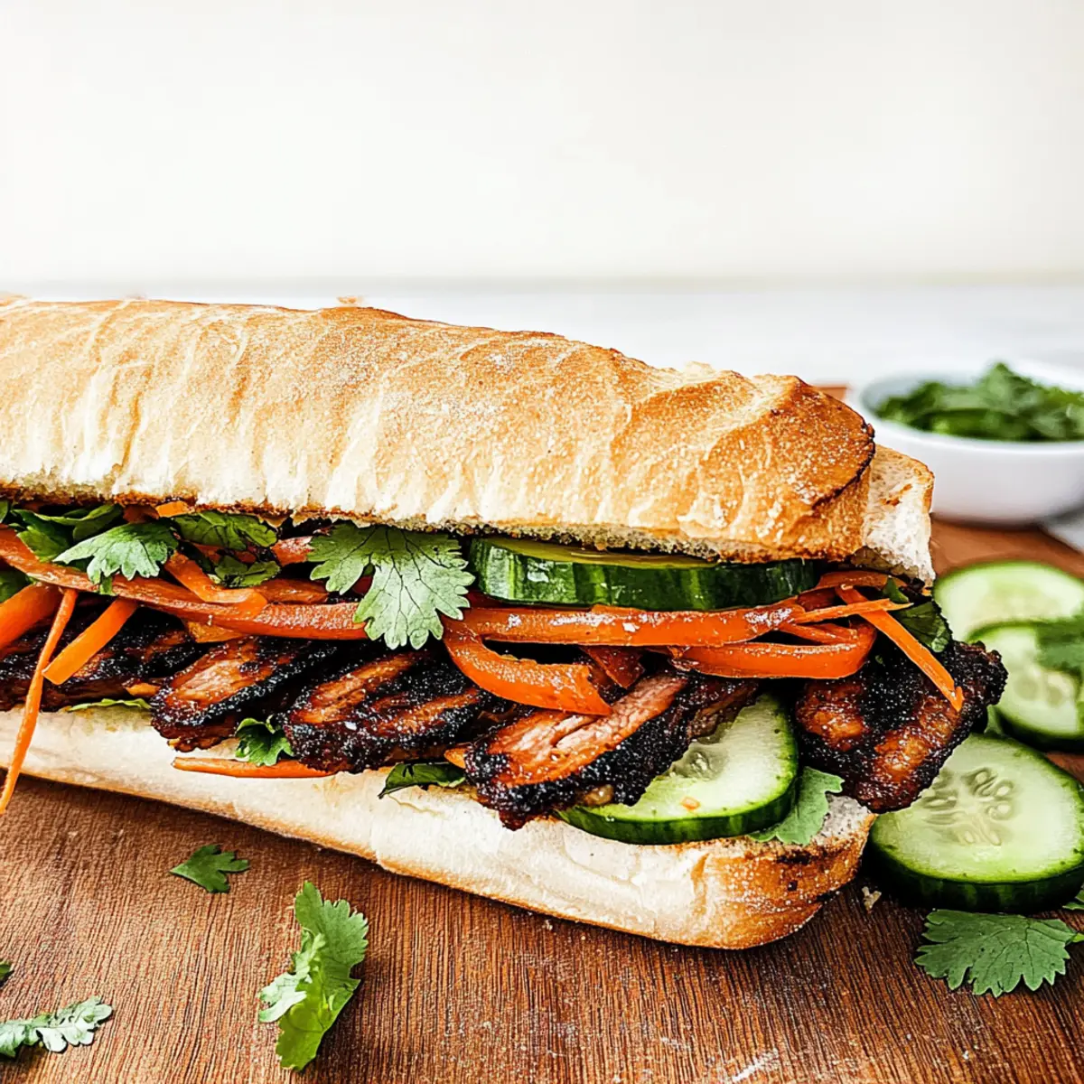 Jump to Recipe Print RecipeThe moment I took my first bite of a Banh Mi Sandwich from a bustling Hanoi street cart, I was hooked. This Vietnamese gem combines contrasting flavors and textures that create an unforgettable harmony. Today, I’m excited to share my recipe for an Authentic Vietnamese Banh Mi Sandwich featuring savory pork tenderloin—a masterpiece that’s not only quick to prepare but also highly customizable to suit anyone’s taste buds. You can easily switch the pork for chicken or tofu, making this fusion dish accessible for everyone craving a delicious homemade meal. With aromatic lemongrass, crunchy pickled vegetables, and creamy chili mayonnaise, each bite transports you to Vietnam without leaving your kitchen. Are you ready to elevate your sandwich game and impress your friends with this delightful treat? Why is Banh Mi So Irresistible? Flavor Explosion: The Banh Mi Sandwich features a mouthwatering blend of savory pork, tangy pickled vegetables, and creamy chili mayonnaise for a taste sensation. Quick Preparation: In under 30 minutes, you can craft this dish—a perfect fix for your lunch or dinner rush! Customizable Options: Feel free to swap pork for chicken or tofu, making it a versatile choice catering to diverse dietary preferences. Texture Delight: The crispy baguette combined with the crunch of pickled veggies and tender pork offers a satisfying crunch in every bite. Cultural Fusion: This sandwich beautifully marries Vietnamese and French influences, bringing a gourmet street food experience right to your home! Banh Mi Sandwich Ingredients For the Marinade Pork Tenderloin – The star ingredient for a tender, flavorful sandwich. Ideal for quick cooking! Shallots – Adds subtle sweetness; feel free to substitute with yellow onion if needed. Lemongrass – Essential for authenticity; use the tender inner part or lemongrass paste for convenience. Fish Sauce – Provides rich umami flavor; choose high-quality varieties for the best results. Oyster Sauce – Enhances sweetness and umami in the marinade; opt for reputable brands. Lime Juice – Fresh adds brightness and acidity; bottled lime juice serves well in a pinch. Maple Syrup & Brown Sugar – Sweetness is key to balance; adjust brown sugar with more maple syrup if necessary. Ginger & Garlic – Fresh aromatics deepen the marinade flavor for that authentic taste. Toasted Sesame Oil – Adds a robust nutty flavor; avoid light sesame oil for best results. Chili Paste – Introduces heat; your favorite variety, like Sambal Oelek, works nicely! Ground Coriander & Chinese 5 Spice – Essential spices bringing depth and warmth to the marinade. For the Pickled Vegetables Pickled Carrots & Daikon – Crunchy, tangy toppings that contrast with savory pork perfectly. Rice Vinegar & Sugar – Essential for the pickle brine; use unseasoned rice vinegar for the best flavor. For Assembly French Baguettes – The traditional bread base; choose crispy, fresh baguettes for the perfect crunch! Chili Garlic Mayonnaise – Adds creaminess and heat; adaptable with different mayo types or butter. Cucumber & Jalapeños – Fresh vegetables that contribute crunch and spice; slice thin for easy layering. Fresh Cilantro – A burst of freshness that shouldn’t be skipped; essential for the authentic Banh Mi Sandwich experience. Get ready to create a flavorful masterpiece that you and your loved ones will adore! Step‑by‑Step Instructions for Authentic Vietnamese Banh Mi Sandwich Step 1: Marinate the Pork Start by slicing the pork tenderloin lengthwise into thin pieces, about 1/4 inch thick, then pound with a meat mallet for tenderness. In a blender, combine shallots, lemongrass, fish sauce, oyster sauce, lime juice, maple syrup, brown sugar, ginger, garlic, sesame oil, chili paste, ground coriander, and Chinese 5 spice, blending until smooth. Coat the pork in this marinade, cover, and refrigerate for 6-8 hours to infuse flavors. Step 2: Pickle the Vegetables Prepare the pickled vegetables by heating water, rice vinegar, and sugar in a small saucepan over medium heat until the sugar dissolves completely, about 3-4 minutes. Pour this liquid over matchstick carrots and daikon in a bowl, making sure they are fully submerged. Allow the mixture to cool to room temperature, then refrigerate for at least 30 minutes to develop tanginess. Step 3: Toast the Baguettes When you’re ready to assemble your Banh Mi Sandwich, preheat your oven to 375°F (190°C). Slice the French baguettes lengthwise, creating a pocket for the filling. Place them on a baking sheet and toast in the oven for about 5-7 minutes or until the crust is golden and crispy, ensuring the inside remains soft. You can also grill them for an extra crispy finish. Step 4: Cook the Pork Heat a grill or a large skillet over high heat until hot. Remove the marinated pork from the refrigerator and grill or pan-fry for 1-2 minutes per side, or until they are browned and just cooked through, aiming for a slightly caramelized exterior. The pork should reach an internal temperature of 145°F (63°C) for optimal tenderness. Step 5: Assemble the Sandwiches Spread a generous layer of chili garlic mayonnaise (and pâté if desired) inside each toasted baguette. Layer the cooked pork slices evenly, followed by heaps of the tangy pickled vegetables. Top off with fresh cucumber slices, a sprinkling of sliced jalapeños, and a handful of fresh cilantro. Press down gently to allow flavors to meld, creating your delightful Banh Mi Sandwich. How to Store and Freeze Banh Mi Sandwich Fridge: Store assembled Banh Mi Sandwiches wrapped tightly in plastic wrap or in an airtight container for up to 3 days to maintain freshness and texture. Pickled Vegetables: Keep pickled carrots and daikon in a sealed jar in the refrigerator. They can last for up to a week, making them perfect for future sandwiches. Freezer: For best results, freeze the marinated pork separately in an airtight container for up to 3