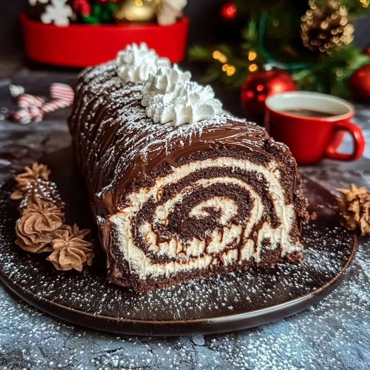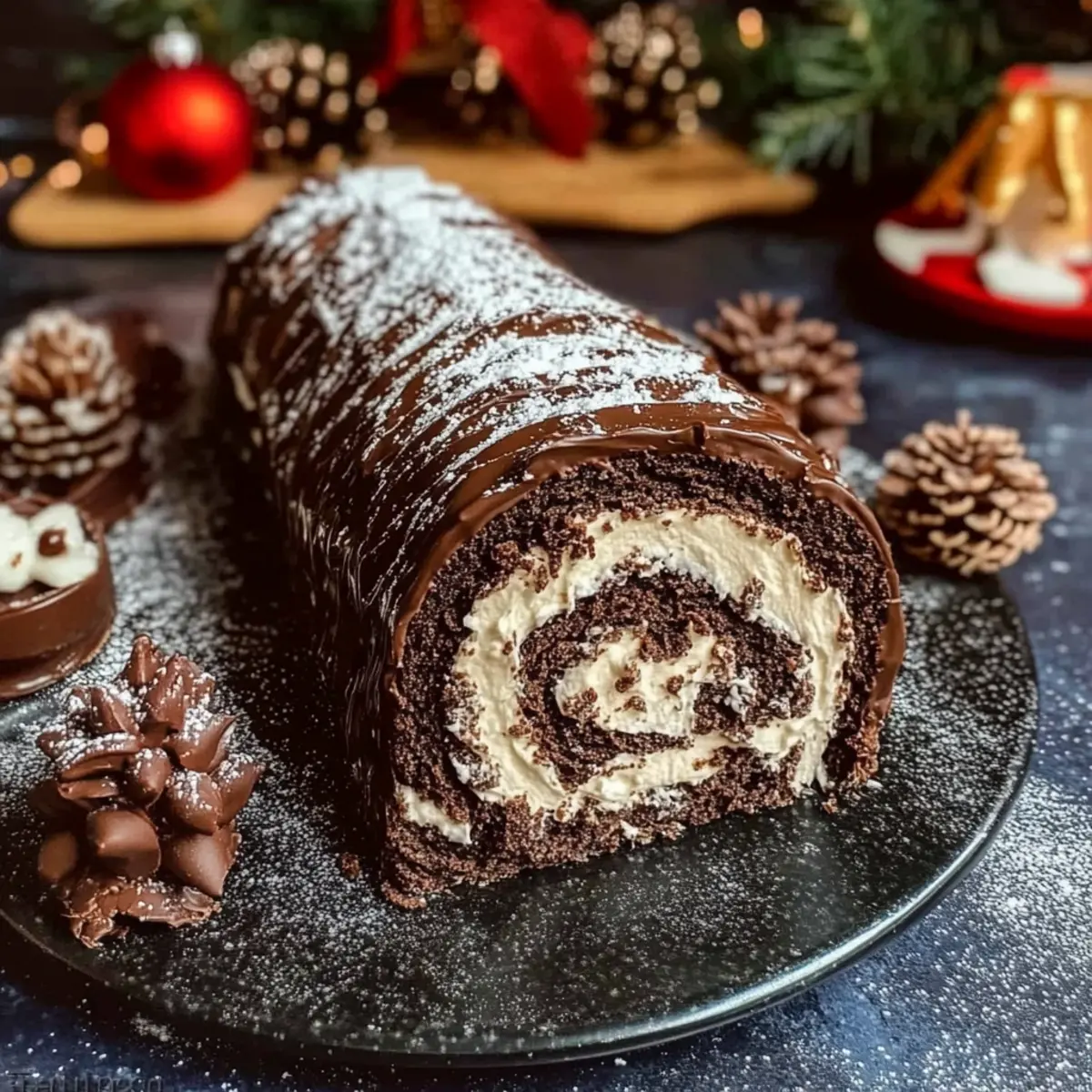Jump to Recipe Print RecipeAs the holiday season approaches, the scent of cocoa and sweet cream fills the air, reminding me of the joyous gatherings where dessert takes center stage. I’m excited to share my recipe for a delightful Baileys Yule Log, a chocolate cake that’s not just a dessert but an experience in itself. With its easy preparation and the option to leave out the Baileys for the little ones, it suits every festive palate. This rich cake is filled with Baileys-infused whipped cream and finished with a silky chocolate ganache, making it a showstopper at any party. Are you ready to elevate your holiday dessert game with this indulgent creation? Let’s dive in! Why is this Yule Log a Must-Try? Decadent flavors: This Baileys Yule Log features a rich chocolate sponge paired with the silky smoothness of Baileys-infused cream, guaranteed to impress your guests. Easy preparation: With simple steps and common ingredients, you’ll have this stunning dessert ready in no time! Family-friendly: Tailor it to everyone’s taste—just omit the Baileys for a kid-approved version. Eye-catching centerpiece: Its beautiful, rustic design makes it the star of any holiday table. Make-ahead option: Prepare it in advance and simply decorate before serving, saving you time during busy festivities. Baileys Yule Log Ingredients For the Sponge Cake • Eggs (5 large) – Provide structure and moisture to the sponge cake; fresh eggs at room temperature yield a fluffier texture. • Caster Sugar (100g) – Sweetens and aids in creating volume when whisked with eggs; granulated sugar can work but may slightly alter the texture. • Vanilla Extract (1 tsp) – Adds warmth and depth to the flavor; opt for pure extract for the best taste. • Plain Flour (60g) – Forms the base of the sponge; try whole wheat flour for added nutrition, but be mindful of texture changes. • Cocoa Powder (40g) – Provides rich chocolate flavor and color; Dutch-processed cocoa gives a deeper taste if you prefer. For the Whipped Cream Filling • Double Cream (300ml) – Essential for the filling’s richness and smoothness; heavy cream is a good alternative. • Icing Sugar (0.5 tbsp) – Mixed into the whipped cream for sweetness; adjust to your personal taste. • Baileys Irish Cream (2-3 tbsp) – Infuses the cream with a boozy richness; omit for a non-alcoholic version suitable for children. For the Ganache • Dark Chocolate (300g, chopped finely) – Forms a rich, smooth ganache coating; semi-sweet chocolate can replace it if preferred. • Milk Chocolate (100g, chopped finely) – Balances the bitterness of dark chocolate in the ganache; can be omitted for a purely dark flavor. • Icing Sugar (1 tbsp, for dusting) – Gives a decorative snowy finish; optional but highly recommended for presentation. Step‑by‑Step Instructions for Baileys Yule Log Step 1: Preheat and Prepare Begin by preheating your oven to 180°C (160°C fan). Grease a 23x33cm swiss roll tin with a little butter and line it with parchment paper to prevent sticking. Make sure the paper hangs over the edges to aid in easy removal later. This preparation sets the stage for a perfectly baked Baileys Yule Log. Step 2: Whisk the Eggs and Sugar In a large mixing bowl, whisk together 5 large eggs and 100g caster sugar using an electric mixer on medium speed for about 5 minutes. The mixture should become thick, pale, and fluffy, doubling in volume as air is incorporated. As you whisk, add 1 tsp of vanilla extract for a delightful flavor enhancement that will complement the chocolate. Step 3: Combine Dry Ingredients Sift 60g plain flour and 40g cocoa powder directly into the egg mixture. Gently fold the dry ingredients into the batter using a spatula or a wooden spoon. Be careful not to deflate the airy mixture—stop folding once no flour streaks remain for a light and fluffy sponge cake that will hold the luscious Baileys cream filling. Step 4: Bake the Sponge Pour the batter into the prepared tin, spreading it evenly to reach the corners. Bake in the preheated oven for 12–15 minutes, or until the sponge is springy to the touch and a toothpick inserted in the center comes out clean. Keep a close eye to ensure the cake does not overbake, as you want it soft and moist for rolling. Step 5: Roll and Cool the Sponge Once baked, remove the sponge from the oven and immediately invert it onto a sheet of parchment paper dusted with icing sugar. While it’s still warm, gently roll the cake tightly from one end, with the parchment paper helping. Allow it to cool completely on a wire rack; this process prevents cracking when filling. Step 6: Prepare the Ganache For the scrumptious chocolate ganache, heat 300ml double cream in a saucepan over medium heat until nearly boiling. Remove from heat and pour the hot cream over 300g finely chopped dark chocolate and 100g chopped milk chocolate in a bowl. Stir until the chocolate melts and the mixture is smooth and glossy. Chill the ganache in the fridge until it’s thick enough to pipe or spread easily. Step 7: Whip the Cream Filling In a separate bowl, whip the remaining 300ml double cream with 0.5 tbsp icing sugar until soft peaks form. Gently fold in 2–3 tbsp Baileys Irish Cream for a rich, silky filling that perfectly complements the Baileys Yule Log. Taste and adjust sweetness if needed, making sure to keep it fluffy and airy. Step 8: Assemble the Yule Log Unroll the cooled sponge carefully, peeling away the parchment. Spread the Baileys-infused whipped cream evenly over the sponge, covering it entirely. Gently re-roll the sponge, using the parchment to guide you. Place the log seam side down on a serving plate for a beautiful presentation. Step 9: Decorate with Ganache Using a spatula or piping bag, generously coat the rolled Yule Log with the cooled ganache, creating a textured “bark” appearance. Cut a small diagonal piece from one end to create a branch effect, placing it artfully against the main log fo
