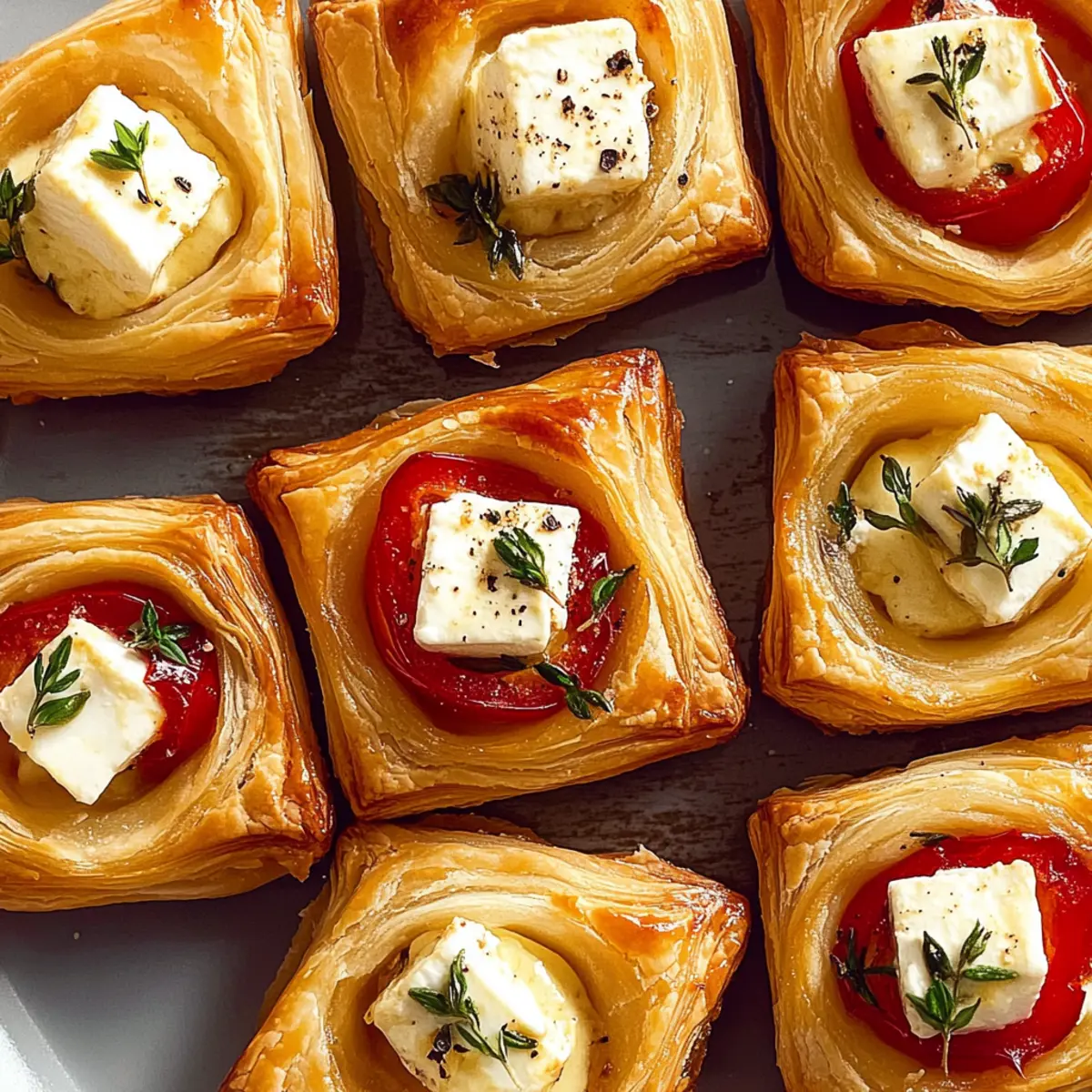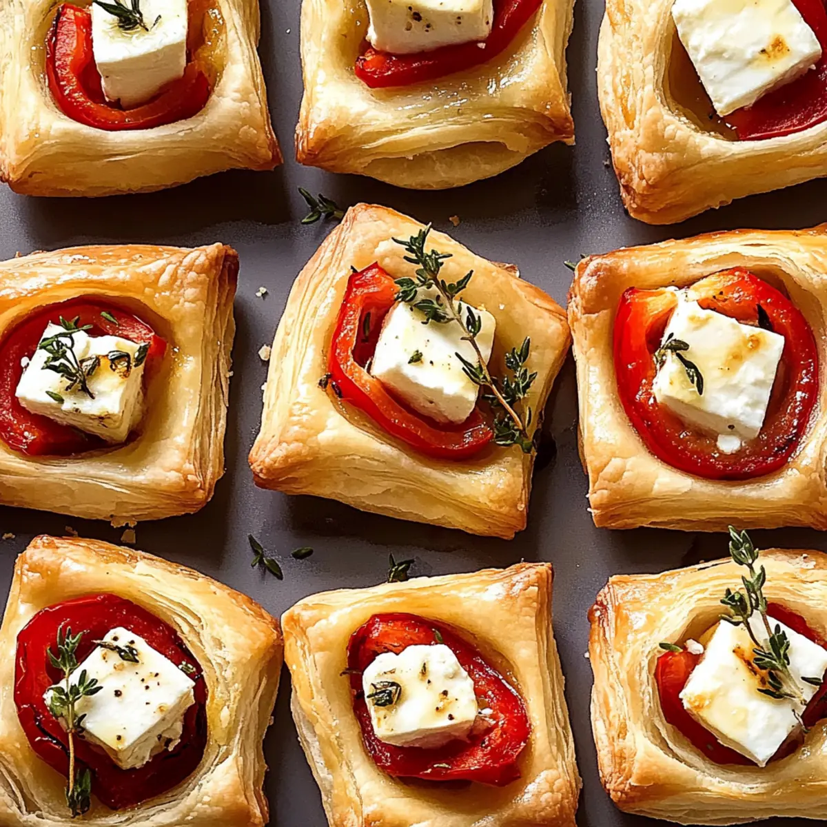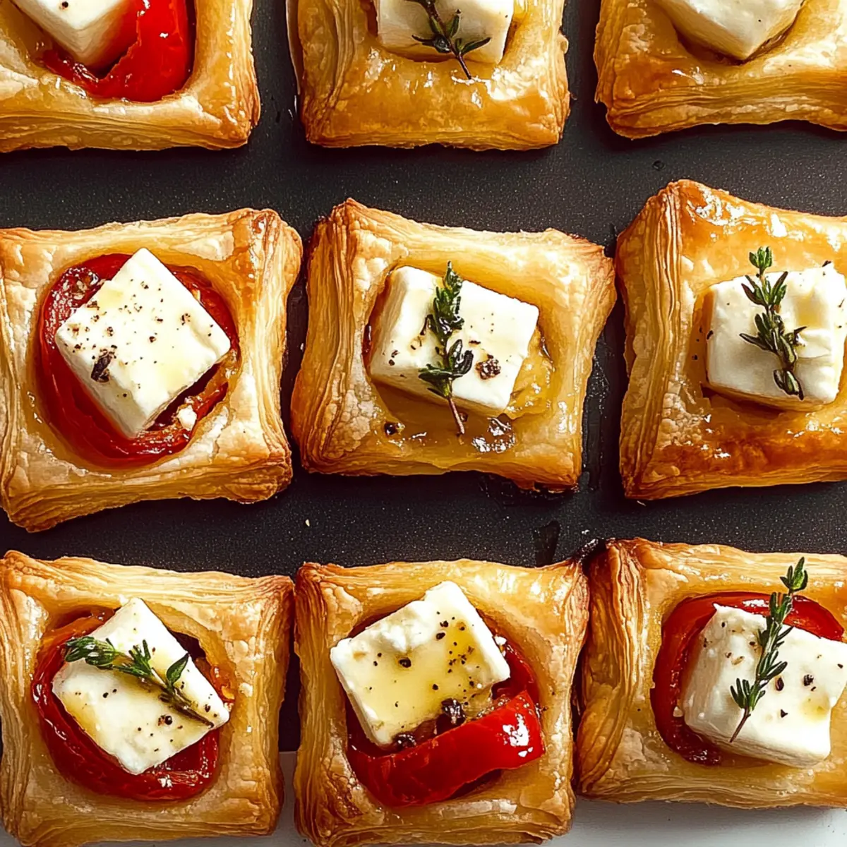 Jump to Recipe Print RecipeYou wouldn’t believe how quickly a simple combination of ingredients can elevate a gathering from mundane to memorable. When I first whipped up these Effortless Baked Feta Bites, I was amazed at how they turned an ordinary evening into a party-ready feast. These delightful bites encapsulate the perfect harmony of crispy, flaky puff pastry and a creamy, tangy feta filling, with hints of sweetness from jam and the subtle smokiness of roasted red peppers—the ultimate crowd-pleaser! Whether you’re serving them at a festive celebration or just enjoying a cozy night in, these easy appetizers come together in under an hour and can easily be customized to your liking. What kind of twist will you add to make them your own? Why Are Baked Feta Bites a Must-Make? Unbelievable Ease: With just a few simple steps, you can whip up these impressive bites in under an hour. Versatile Twist: Swap out feta for goat cheese or mix in your favorite jams to create a unique flavor profile. Perfect for Any Occasion: These bites shine at parties, potlucks, or even as a cozy movie night snack! Crowd-pleaser: Everyone loves the delightful combination of savory and sweet flavors. For more delicious party-ready options, check out my recipes for Baked Beef Chiles or Baked Tortellini Casserole. Gourmet Feel: The elegant presentation and rich taste make them feel like a special treat that’s still incredibly easy to make. Baked Feta Bites Ingredients • Get ready to impress! For the Pastry Base All-purpose flour – Prevents sticking during dough prep; do not substitute for optimal texture. Puff pastry – The key to a light, flaky texture; opt for high-quality brands for best results. Cooking spray – Ensures easy release from the muffin tin; any non-stick spray works well. For the Filling Fig/Apricot/Peach jam – Adds a sweet, fruity layer to balance the saltiness of the feta; feel free to experiment with other jams. Sliced shallots – Introduces mild onion flavor; green onions can be a great alternative. Roasted red peppers – Contributes delightful smokiness and vibrant color; fresh peppers can be roasted as a substitute. Feta cheese – The star ingredient for a creamy, tangy filling; crumbled feta mixes easily. Fresh thyme leaves – Offers aromatic flavor enhancements; other fresh herbs like oregano or basil could be used as well. For Seasoning Kosher salt – Elevates the overall flavor; adjust to your taste, especially if using brined feta. Freshly ground black pepper – Adds a hint of spice; use white pepper if you prefer a milder flavor. Zest of 1 lemon – Brightens the dish with citrus notes; lime zest makes a good substitute. Chili oil – Adds a touch of heat; omit for a milder version or replace with a different oil. Create your own stunning Baked Feta Bites and watch your gatherings transform into unforgettable experiences! Step‑by‑Step Instructions for Baked Feta Bites Step 1: Preheat the Oven Begin by preheating your oven to 400°F (200°C) to ensure a perfectly baked exterior for your Baked Feta Bites. This temperature will give the puff pastry that delightful golden-brown finish. While the oven warms, gather your other ingredients to streamline your preparation process. Step 2: Prepare the Puff Pastry On a lightly floured surface, roll out your puff pastry until it’s about 1/8-inch thick, creating a luscious base for your bites. Use a sharp knife or a pastry cutter to cut the dough into uniform squares—each about 3 inches in size. This uniformity is key for even baking, ensuring every bite is just right. Step 3: Grease the Muffin Tin Next, spray a mini muffin tin with cooking spray to prevent the pastry from sticking. Gently press each pastry square into the muffin cups, forming little shells that will cradle the delicious filling. The edges should rise slightly above the rim of each cup, ready to hold all the tasty fillings you’ll add. Step 4: Fill the Pastry Shells Now, start filling each pastry shell with your chosen jam, placing a dollop at the bottom for a touch of sweetness. Layer in sliced shallots and roasted red peppers for added flavor and texture. Finally, place a cube of feta cheese in each shell, and scatter fresh thyme leaves atop for an aromatic finish. Step 5: Season the Filling Sprinkle each filled shell with a pinch of kosher salt and freshly ground black pepper to enhance the flavors. Zest a lemon over the top for a bright pop of citrus that perfectly complements the savory and sweet elements. If you enjoy a little heat, drizzle a tiny bit of chili oil over each one before baking. Step 6: Bake to Perfection Carefully transfer the muffin tin to your preheated oven and bake for about 18-20 minutes. Check for doneness when the pastry is golden brown, puffed, and smelling irresistible. The filling should be warm and slightly bubbling, signaling that your Baked Feta Bites are ready to shine. Step 7: Cool and Serve Once baked, allow the Baked Feta Bites to cool in the tin for about 5 minutes. This helps them hold their shape when you remove them. Gently pop each bite out and onto a serving platter, ready to impress your guests with their irresistible aroma and elegant appearance. What to Serve with Effortless Baked Feta Bites? These delightful pastries deserve a full meal that balances flavors and textures, making every bite an experience. Fresh Arugula Salad: This peppery salad adds a crisp contrast, refreshing your palate between bites of creamy goodness. Mediterranean Quinoa Bowl: With its nutty flavor and colorful veggies, this bowl enhances the Mediterranean vibe while keeping it light and satisfying. Garlic Roasted Potatoes: Their crispy, buttery exterior pairs beautifully with the creamy feta, offering a heartier touch to your feast. A sprinkle of fresh herbs can elevate the flavor! Zesty Tzatziki Sauce: Serve this cooling yogurt sauce on the side for dipping; it complements the savory notes of the feta bites perfectly. Sparkling Ro