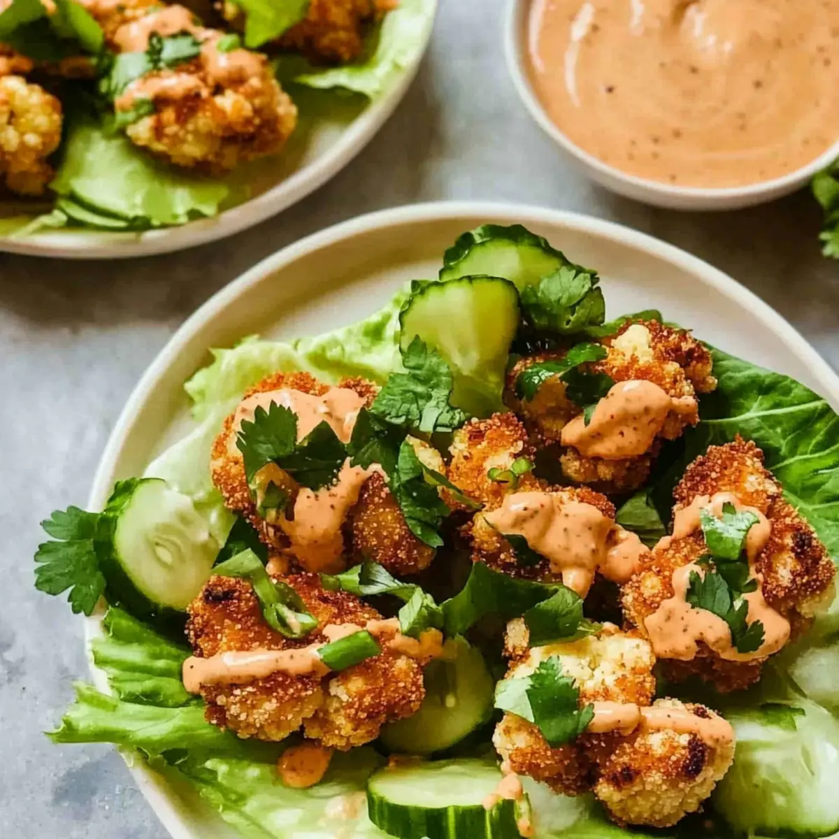 Jump to Recipe Print RecipeThe first bite of these crispy Bang Bang Cauliflower bites is like a delightful surprise at your favorite restaurant, only this time, it’s homemade! Channeling the essence of the popular shrimp dish, this vegetarian twist will impress even the most devoted meat lovers. What makes this recipe truly special is not only the quick prep—it comes together in just 45 minutes—but also the crunchy exterior that gives way to tender, flavorful cauliflower, perfectly complemented by a creamy sweet and spicy sauce. Whether you’re looking for an easy appetizer to share or a healthy dinner alternative that packs a punch, this Bang Bang Cauliflower will have everyone asking for seconds. Ready to give your taste buds a treat? Why is Bang Bang Cauliflower a Favorite? Irresistible Crunch: The crispy coating combined with tender cauliflower offers a delightful texture that’s simply addictive! Healthier Twist: Enjoy all the excitement of your favorite shrimp dish, but with a vegetarian and gluten-free option that keeps it light. Quick and Easy: Ready in just 45 minutes, this recipe is perfect for busy weeknights or last-minute gatherings. Flavor-Packed Sauce: The creamy sweet and spicy bang bang sauce amplifies the taste, making every bite a flavor explosion that will wow your guests. Crowd Pleaser: Whether you’re entertaining or simply enjoying a night in, these bites are sure to be a hit at any table. Serve alongside a fresh salad or even as delightful lettuce wraps for extra fun! Try pairing them with some crispy Bang Bang Salmon for a complete meal experience. Bang Bang Cauliflower Ingredients For the Cauliflower Bites Cauliflower – The star ingredient, providing a hearty texture; try substituting with broccoli florets for a different twist. All-Purpose Flour – Forms a light coating to help the batter stick; gluten-free flour is a great alternative for a gluten-free option. Cornstarch – Essential for that crispy coating; arrowroot starch can be used if you’re out of cornstarch. Eggs – Binds the coating ingredients together beautifully; replace with vegan buttermilk or aquafaba for a vegan take. Panko Breadcrumbs – Adds a satisfying crunch; whole-wheat or gluten-free Panko are excellent substitutes. Olive Oil – Boosts crispiness while baking; feel free to swap it out with vegetable oil if that’s what you have on hand. For the Bang Bang Sauce Mayonnaise – Acts as a creamy base for the sauce; use vegan mayo for a plant-based alternative. Sweet Chili Sauce – Delivers a sweet heat that makes this sauce stand out; substitute with sriracha or your favorite hot sauce for an extra kick. Sriracha – Enhances spiciness in the sauce; adjust the amount based on your heat preference. Rice Vinegar – Provides a tangy balance to the sauce; you can use apple cider vinegar in a pinch. Honey – Sweetens the sauce beautifully; for a vegan option, use maple syrup or agave syrup instead. This Bang Bang Cauliflower will not only satisfy your cravings but also impress everyone with its irresistible taste! Step‑by‑Step Instructions for Bang Bang Cauliflower Step 1: Preheat the Oven Begin by preheating your oven to 450°F (232°C) to ensure it’s ready for baking. While it’s heating up, line two baking sheets with parchment paper to prevent sticking and make cleanup a breeze. This will prepare the perfect stage for your crispy Bang Bang Cauliflower bites. Step 2: Coat the Cauliflower In a large bowl, whisk together all-purpose flour and cornstarch until well combined. Add the cauliflower florets to this mixture, tossing gently to ensure each piece is evenly coated. The light flour coating will help achieve that signature crunch once baked, so take care to coat all sides. Step 3: Shake Off Excess Flour Carefully transfer the coated cauliflower into a strainer or a colander. Shake gently to remove any excess flour that may clump around the florets. This step is crucial for ensuring your Bang Bang Cauliflower turns out crispy and not too heavy after baking. Step 4: Prepare the Egg Mixture In a clean bowl, crack and beat the eggs until they are well mixed. Next, add the flour-dusted cauliflower pieces to the egg mixture, ensuring that each piece is fully coated. This binding layer will help the Panko breadcrumbs adhere better, leading to a satisfying crunch. Step 5: Mix the Panko Coating In a separate bowl, combine Panko breadcrumbs with olive oil, garlic powder, salt, and pepper. Mix well until the breadcrumbs are evenly coated. Dredge the egg-covered cauliflower pieces in this mixture, making sure they are fully covered for that perfect added crunch that complements the tender cauliflower. Step 6: Bake the Cauliflower Arrange the Panko-coated cauliflower in a single layer on your prepared baking sheets. Make sure not to overcrowd them for uniform cooking. Place the baking sheets in the oven and let the cauliflower bake for 22-25 minutes, flipping halfway through, until they are golden brown and crispy. Step 7: Prepare the Bang Bang Sauce While the cauliflower is baking, whisk together mayonnaise, sweet chili sauce, Sriracha, rice vinegar, and honey in a bowl until the sauce is smooth and well-blended. Taste and adjust the heat level with extra Sriracha if you prefer more spice in your Bang Bang Cauliflower sauce. Step 8: Serve and Enjoy Once your Bang Bang Cauliflower is beautifully golden and crispy, remove it from the oven. Serve the delicious baked cauliflower hot, either drizzled with the creamy Bang Bang sauce or with the sauce on the side for dipping. Enjoy this tasty, vegetarian twist on a beloved classic! Storage Tips for Bang Bang Cauliflower Room Temperature: Bang Bang Cauliflower is best enjoyed fresh; however, if left out, it should not exceed 2 hours for food safety. Fridge: Store leftover Bang Bang Cauliflower in an airtight container for up to 3 days. Prevent sogginess by placing a paper towel inside to absorb excess moisture. Freezer: For longer st