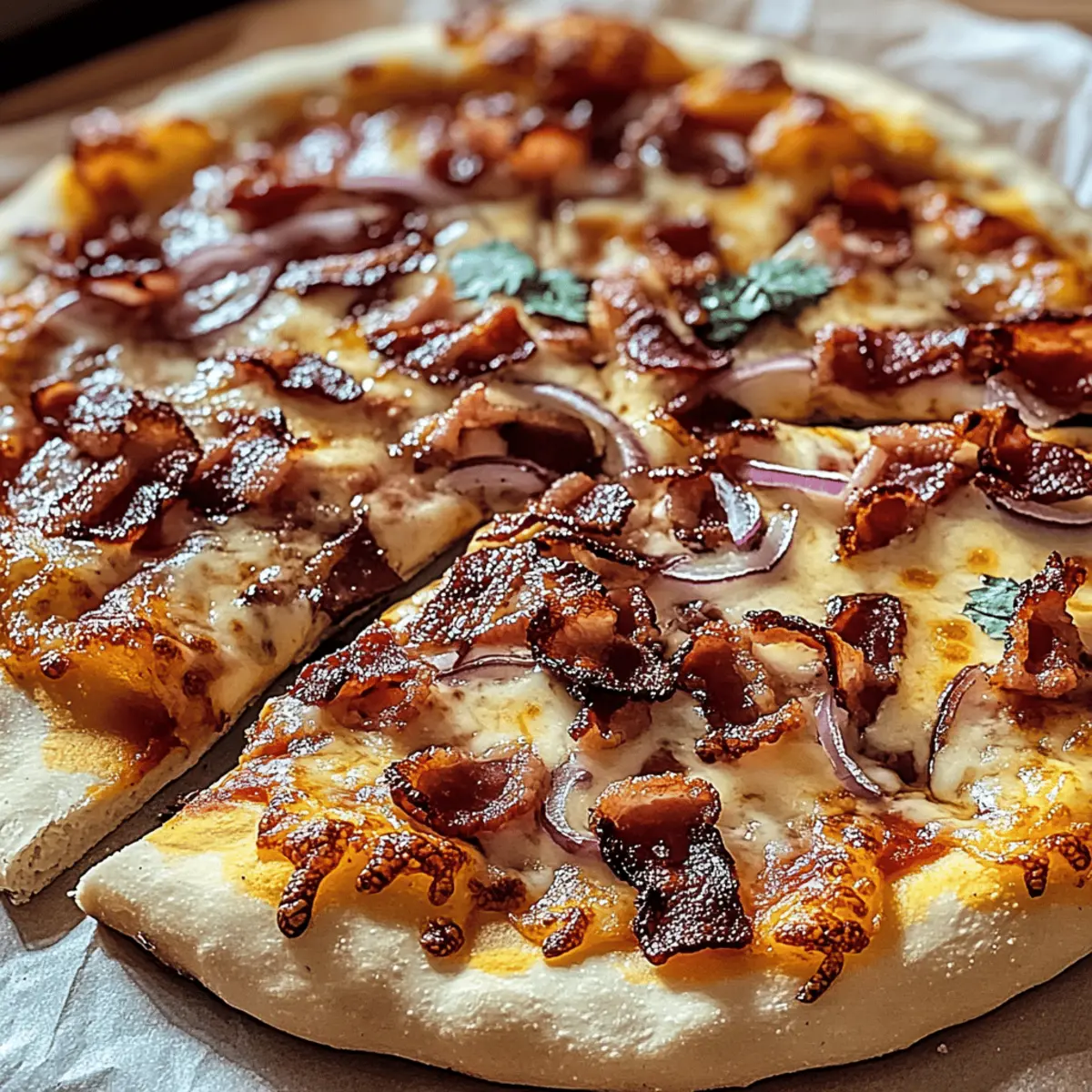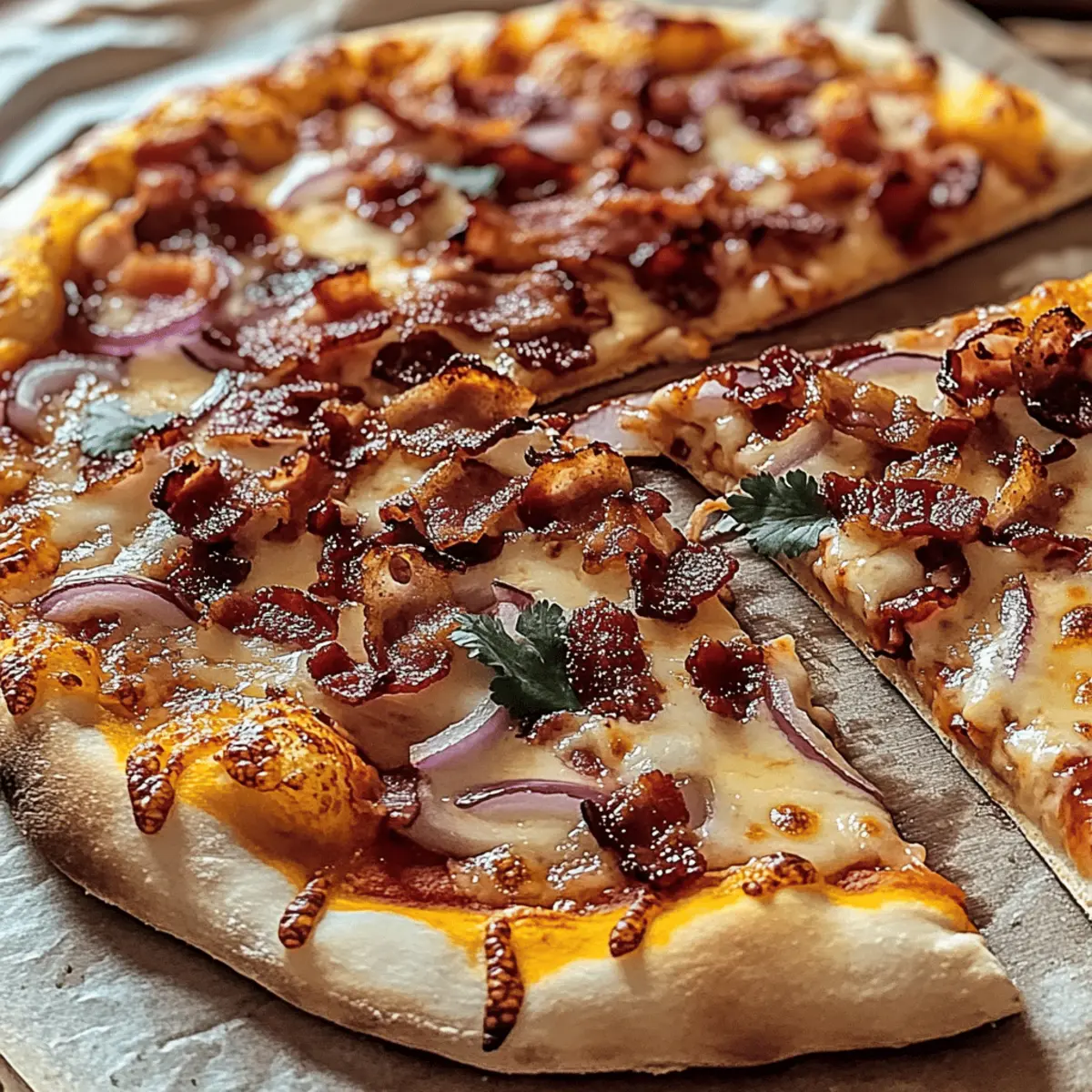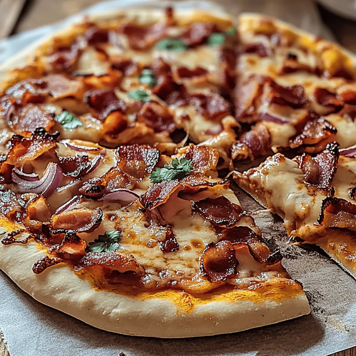 Jump to Recipe Print RecipeOne breezy summer evening, the sizzle of bacon over an open flame filled the air, mingling perfectly with a tangy hint of barbecue sauce. This inspired my quest to create the ultimate Barbecue Bacon Pizza, a dish that captures the smoky essence of grilling right in your kitchen. Not only is this pizza a wonderful crowd-pleaser, but it also combines delicious simplicity with a sprinkle of creativity, allowing you to swap out bacon for chicken or a medley of veggies if you prefer. With its golden crust, gooey cheese, and flavorful toppings, this pizza is perfect for game nights or casual get-togethers. So, are you ready to dive into a fun culinary adventure that brings the joy of barbecue into your home? Let’s get cooking! Why is Barbecue Bacon Pizza a must-try? Irresistible flavor: The smoky barbecue sauce paired with crispy bacon ensures every bite is packed with savory goodness. Customizable options: Easily swap in grilled chicken or your favorite veggies for a personal touch that caters to any palate. Quick and easy: In under 30 minutes, you can whip up this delicious pizza, making it perfect for any weeknight meal. Crowd-pleaser: Ideal for parties or game nights, this pizza will satisfy both kids and adults, leaving everyone asking for more! Plus, you can explore similar delicious ideas like Bacon Wrapped Dates or Maple Glazed Bacon Chicken Bites for your next gathering. Barbecue Bacon Pizza Ingredients For the Dough • Pizza Dough – Use either store-bought or homemade dough for a perfect base. For the Sauce • Barbecue Sauce – Adds a smoky layer of flavor; choose your favorite for a personal twist. For the Toppings • Shredded Mozzarella Cheese – Melts beautifully to create that gooey texture; feel free to try gouda or cheddar for variation. • Crispy Bacon – Provides that desired crunch and savory taste; substitute with grilled chicken or veggies for a different take. • Red Onion – Offers sweetness and adds texture; bell peppers can be a tasty alternative or skip it entirely if desired. • Fresh Cilantro – Garnishes the pizza with a burst of freshness; consider using green onions or parsley as an alternative. Embrace the joy of making this Barbecue Bacon Pizza in your kitchen and customize it according to what you love! Step‑by‑Step Instructions for Barbecue Bacon Pizza Step 1: Prepare Your Oven Begin by preheating your oven to 475°F (245°C). If you’re using a pizza stone, place it in the oven now to heat for about 30 minutes. This ensures that your crust will turn out perfectly crisp and golden. While it heats, you can get your ingredients ready for assembling the delicious Barbecue Bacon Pizza. Step 2: Roll Out the Dough On a lightly floured surface, roll out your pizza dough with a rolling pin until it reaches about a quarter-inch in thickness. Aim for a circular shape that fits your baking sheet or pizza stone. As you stretch the dough, be sure to avoid any thin spots for even baking and support all those tasty toppings to come. Step 3: Add Barbecue Sauce Spread a generous layer of barbecue sauce evenly across the rolled-out pizza dough, leaving a small border around the edges. Use the back of a spoon or a spatula to create a smooth, even coat. The rich sauce will be the base for all the incredible flavors that this Barbecue Bacon Pizza has to offer. Step 4: Layer Cheese and Toppings Sprinkle a layer of shredded mozzarella cheese over your barbecue sauce, making sure to cover it well for that melty goodness. Next, distribute the crispy bacon pieces and thin slices of red onion evenly on top. This combination brings together the savory flavors and sweetness that will delight your taste buds. Step 5: Bake Carefully transfer your assembled pizza onto a baking sheet or the preheated pizza stone. Bake in the oven for 12-15 minutes, keeping an eye on it as the cheese melts and bubbles, turning golden brown. The aroma wafting from your oven will surely whet your appetite for the Barbecue Bacon Pizza that’s nearly ready. Step 6: Garnish and Serve Once the pizza is baked to perfection, remove it from the oven and let it cool for a minute. Finish with a sprinkle of fresh cilantro for a burst of color and flavor. Slice your Barbecue Bacon Pizza into wedges and serve it hot, alongside extra barbecue sauce for dipping, if desired. Enjoy this crowd-pleasing dish with friends and family! Barbecue Bacon Pizza Variations & Substitutions Feel free to let your creativity shine as you customize your Barbecue Bacon Pizza to suit your taste buds! Chicken Delight: Swap bacon for grilled chicken for a lighter but equally flavorful alternative. The smokiness of the barbecue sauce pairs perfectly with juicy chicken. Veggie Twist: Replace bacon with a mix of roasted bell peppers, zucchini, and mushrooms. This veggie option packs lots of colors and flavors, making it a delightful choice for plant lovers. Spicy Kick: Add jalapeños or crushed red pepper flakes for an extra burst of heat. This twist gives your pizza an exciting zing that spice lovers will adore! Cheese Lovers: Mix up the cheese profile by adding goat cheese or feta for a tangy touch alongside the mozzarella. Different textures and flavors elevate the whole experience. Sweet & Savory: Drizzle honey or balsamic glaze over the hot pizza before serving. The sweetness beautifully complements the savory elements, creating an irresistible contrast. BBQ Sauce Options: Experiment with different barbecue sauces, like honey mustard or chipotle barbecue, to change the flavor base of your pizza. Each sauce can transform your pizza into a new experience. Crust Variety: Try a cauliflower crust or whole-wheat dough for a healthier alternative. It’s a fun way to enjoy your favorite pizza without guilt! And while you’re at it, why not check out other scrumptious options such as Crustless Pizza Bowl for a delightful twist on classic flavors? The possibilities are endless in the world of homemade piz