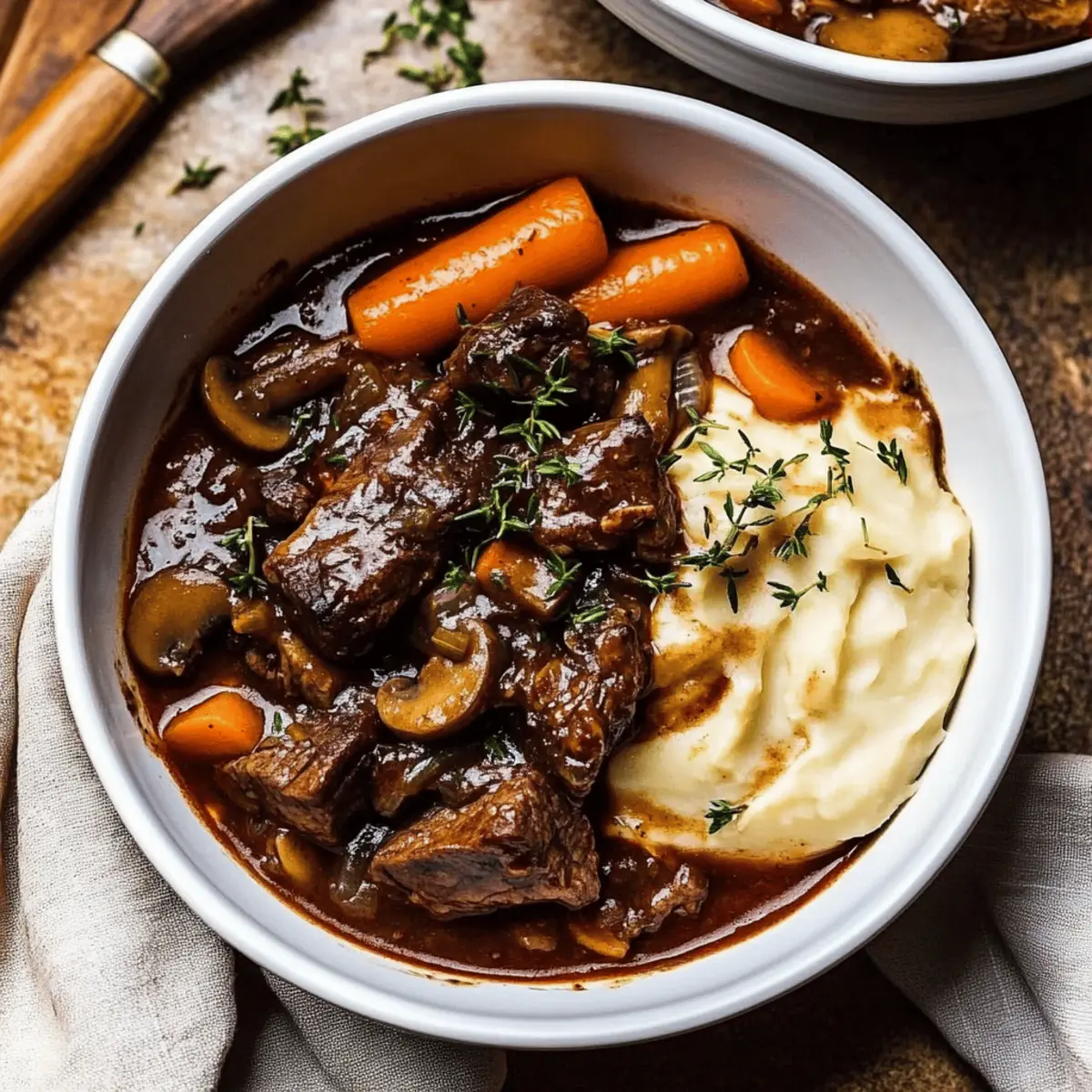 Cozy Comfort: This Classic Beef Bourguignon wraps you in warmth, perfect for chilly nights or intimate gatherings.