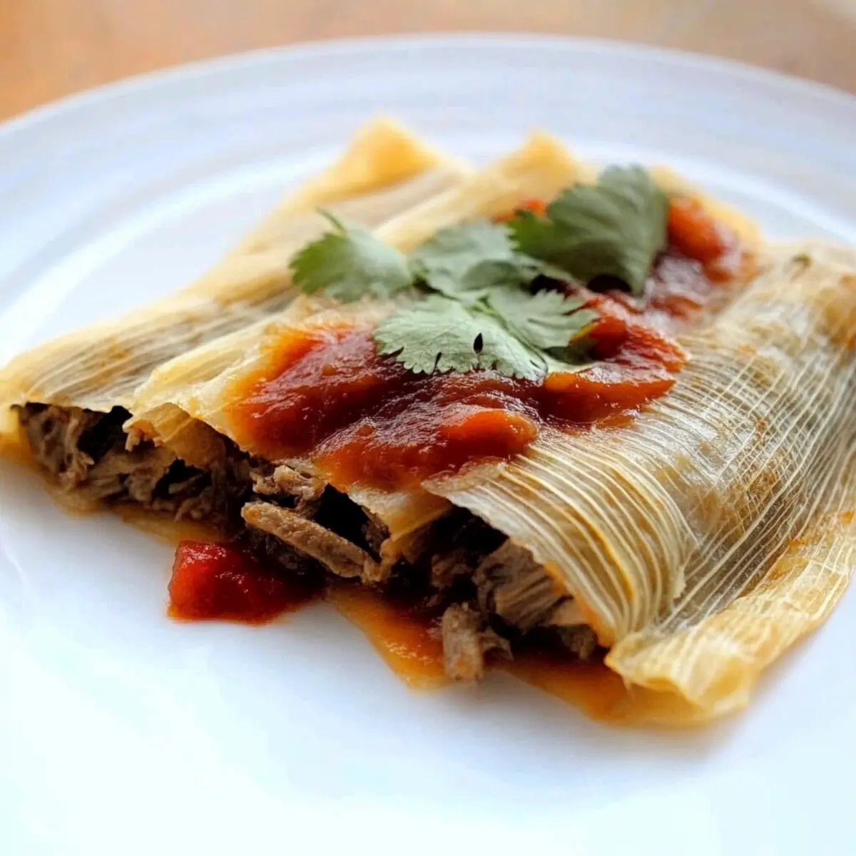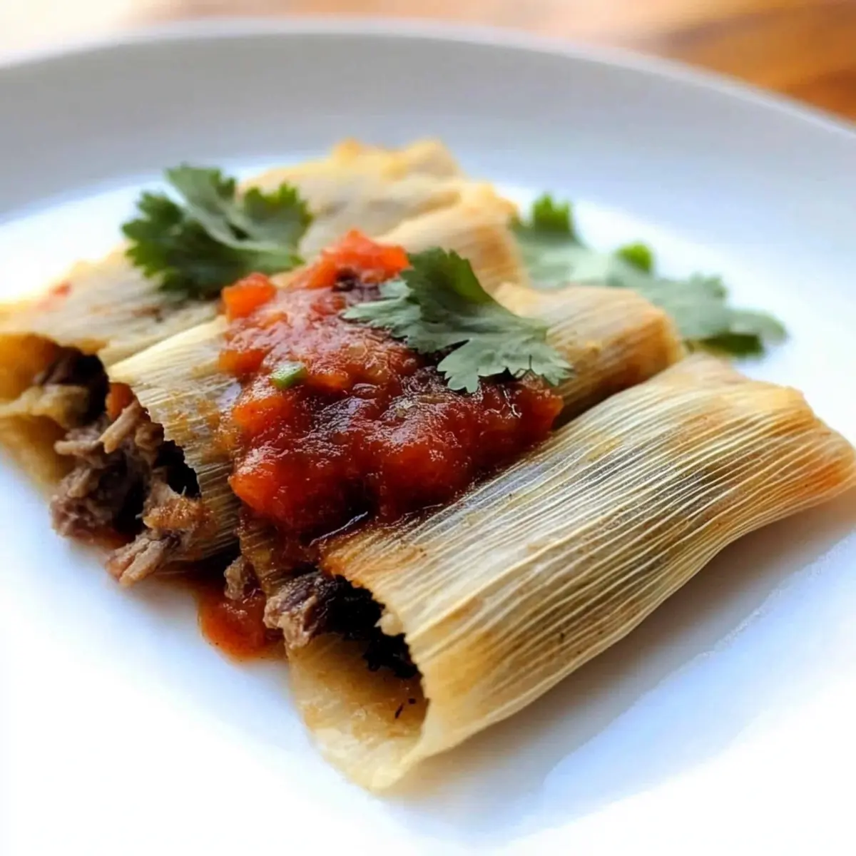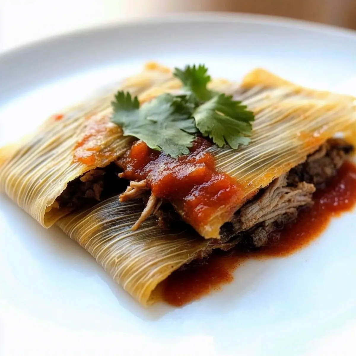 Jump to Recipe Print RecipeThe aroma of simmering beef and spices wafting through the kitchen can transport me straight to familial gatherings filled with laughter and shared stories. That’s why I’m thrilled to share my take on Authentic Beef Tamales with Red Chile Sauce, a cherished recipe that brings comfort and celebration into our homes. These tamales not only serve as a delicious centerpiece for your next holiday feast but can also be made in large batches, making them perfect for sharing. Plus, the savory filling and soft masa will create a delightful experience for your taste buds, leaving you longing for more. Ready to wrap yourself in an unforgettable culinary adventure? Let’s dive into making these homemade delights! Why Choose Beef Tamales? Unforgettable Flavor: Each bite of these beef tamales brings together savory spices and tender beef, evoking memories of family gatherings. Perfect for Sharing: Whether it’s a cozy night in or a festive celebration, these tamales are meant to be shared, making them ideal for any occasion. Versatile Twists: Swap in different meats or even create a vegetarian version with mushrooms for a delightful spin. Comfort Food Elevated: Enjoy a meal that not only feeds the belly but also nurtures the soul, reminiscent of warm hugs from loved ones. Make-Ahead Wonder: These tamales freeze beautifully, so you can have a homemade feast ready at a moment’s notice, adding convenience to their deliciousness. Crowd-Pleasing Appeal: They’re bound to impress anyone at the table, proving that homemade meals can outshine takeout any day. Beef Tamales Ingredients • Gather your favorites for a comforting meal. For the Tamales Corn Husks – Essential for wrapping tamales and imparting a slight corn flavor during steaming; soak them in hot water to soften. Prepared Masa – Provides the foundational texture and structure for the tamales; consider using masa mixed with olive oil for a healthier alternative. For the Filling Beef Shoulder Roast – The star of your beef tamales, providing a rich and flavorful filling; you can substitute with top sirloin or bottom round if desired. Guajillo Chiles – Key for the red chile sauce, imparting a deep, smoky taste; a 7-ounce package is perfect for this recipe. Beef Broth – Adds moisture and enhances the flavor of the filling; homemade broth is recommended for an even richer taste. Garlic – Delivers aromatic depth to the filling; using whole cloves during simmering infuses the broth nicely. Cumin – Provides warmth and an earthy flavor to the red chile sauce. Onion – Chopped finely for an extra layer of flavor in the filling. Salt & Pepper – Crucial for seasoning both the filling and masa; adjust to your taste preference. Cooking Oil – Used for browning the beef and cooking the chile sauce, ensuring depth and richness in flavor. For Serving (Optional) Salsa, Guacamole, or Rice – Perfect accompaniments to elevate your beef tamales experience. Embrace the savory goodness of these beef tamales, bring friends and family together, and create lasting memories around the dinner table! Step‑by‑Step Instructions for Authentic Beef Tamales with Red Chile Sauce Step 1: Prepare the Filling Heat a large skillet over medium-high heat and add a drizzle of cooking oil. Season the beef shoulder roast with salt and pepper, then brown it on all sides for about 5–7 minutes. Once browned, add enough beef broth to cover the meat, along with whole garlic cloves, chopped onion, and a bay leaf. Bring to a simmer, reduce heat to low, and cover for 2 hours, allowing the flavors to meld. Step 2: Make the Red Chile Sauce While the beef simmers, prepare the red chile sauce. Soak the guajillo chiles in hot water for 15 minutes until softened. Drain and place the chiles in a blender, blending with reserved beef broth until smooth. Heat a tablespoon of oil in a separate pan and cook the blended chile mixture for about 5 minutes, stirring constantly until it thickens and the flavors deepen. Step 3: Shred the Beef Once the beef is tender and the aromas fill your kitchen, remove it from the pot and let it cool slightly. Using two forks, shred the beef into bite-sized pieces and mix it with the prepared red chile sauce until well-coated. Keep the beef mixture warm on low heat for the next step, ensuring it’s ready to fill the tamales when the masa is prepared. Step 4: Prepare the Masa and Corn Husks Soak the corn husks in hot water for 30 minutes, ensuring they get pliable. After soaking, drain the husks and set aside. In a large mixing bowl, combine the prepared masa with salt and enough water or broth to achieve a spreadable consistency. This will be the base for wrapping your flavorful filling. Step 5: Assemble the Tamales Take a soaked corn husk and spread about 2 tablespoons of masa evenly across the bottom half, leaving space at the edges. Place 1–2 tablespoons of the beef filling on top of the masa, then fold the sides of the corn husk in toward the center and roll it up tightly from the bottom. Repeat this process until all masa and filling are used. Step 6: Steam the Tamales Prepare your steamer by adding water to the bottom and bringing it to a boil. Arrange the tamales upright in the steamer basket, ensuring they’re not packed too tightly for proper cooking. Cover with a damp cloth and steam for 1.5 hours. Check occasionally to ensure there’s enough water in the pot, adding more if needed, until the masa pulls away cleanly from the husks. What to Serve with Authentic Beef Tamales? The experience of savoring beef tamales becomes even more delightful with the perfect accompaniments that enhance their rich flavors. Salsa Fresca: A fresh tomato salsa adds a burst of vibrant flavor and acidity that complements the savory tamales wonderfully. Guacamole: Creamy and rich, guacamole provides a cooling balance to the spicy beef, making each bite a harmonious delight. Spanish Rice: Fluffy rice seasoned with spices offers a