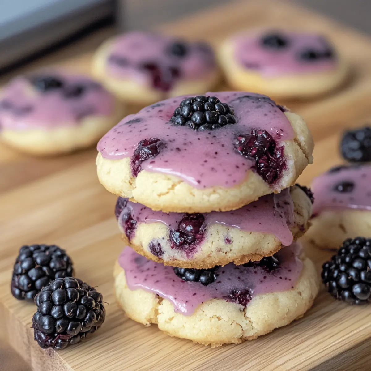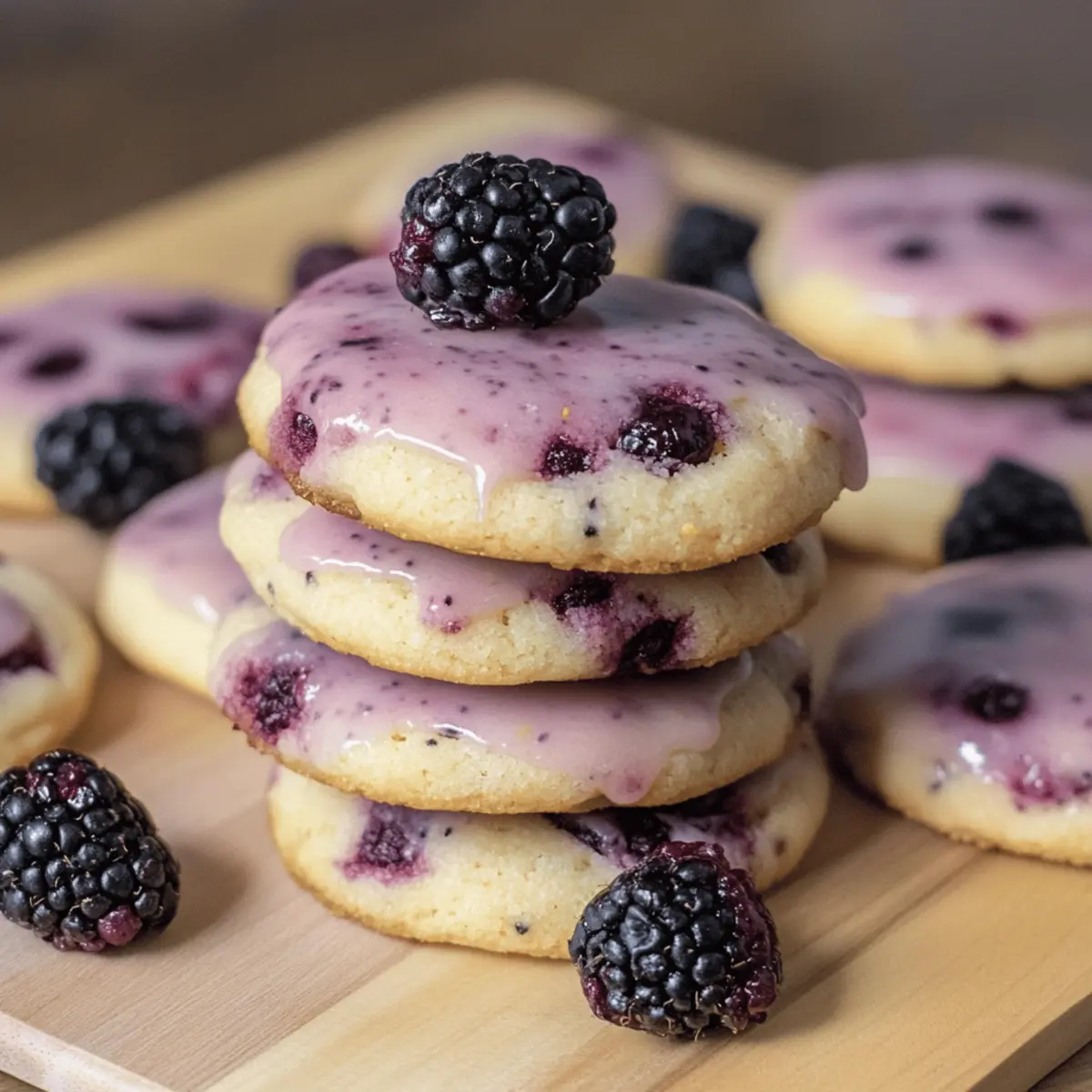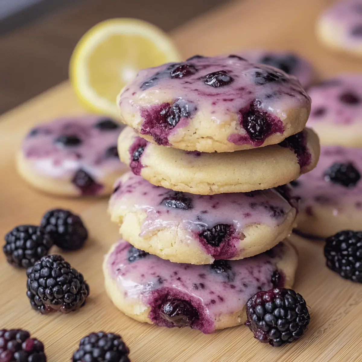 Jump to Recipe Print RecipeThe warmth of summer is captured beautifully in every delicious bite of these Black Raspberry and Lemon Shortbread Cookies. As I pulled the golden-brown cookies from the oven, the intoxicating aroma wafted through my kitchen, instantly uplifting my spirits. Combining the sweet-tart essence of black raspberries with the zesty brightness of lemon, this recipe is a standout among summer treats. It’s super simple to whip up, making it perfect for gatherings or just a cozy afternoon with tea. Plus, these cookies are wonderfully buttery, offering a melt-in-your-mouth experience that’s hard to resist. Want to discover an easy and delightful way to celebrate the flavors of summer? Let’s dive into this delightful recipe together! Why You Need These Cookies Now? Deliciously Unique: The pairing of black raspberries and lemon creates an unforgettable flavor burst that sets these cookies apart from ordinary vanilla options. Perfectly Bright: Infused with zesty lemon zest and juice, these cookies bring a refreshing twist, making them ideal for summer gatherings or afternoon tea. Easy and Quick: This straightforward recipe requires minimal ingredients and time, perfect for anyone looking to impress without stress. Melt-in-Your-Mouth Texture: Each bite melts in your mouth, combining a buttery shortbread base with sweet-tart raspberry goodness—absolutely heavenly! Versatile Delight: Feel free to experiment with other berries or citrus fruits, like lime in a Mango Cookies Delightful twist. Crowd-Pleasing Treat: Serve these at your next barbecue or picnic, and watch them disappear faster than you can say “summer!” They are sure to delight both kids and adults alike. Black Raspberry and Lemon Shortbread Cookies Ingredients For the Dough • Unsalted Butter – This is the key to achieving that rich and tender texture; remember to use softened butter for easier mixing. • Powdered Sugar – Adds sweetness and creates a light, melt-in-your-mouth cookie that complements the tartness of the black raspberries. • All-Purpose Flour – Provides the structure to these cookies; you can substitute a gluten-free blend if needed, but the flavor may vary. • Salt – Enhances the overall flavor, balancing the sweetness; opt for kosher salt for a nice crunch. For the Flavor • Lemon Zest – Infuses the cookies with vibrant brightness; use a microplane for the best result in zesting. • Lemon Juice – Adds freshness and a zesty kick; always choose fresh lemon juice for maximum flavor. • Black Raspberries – The star of the show! They provide a sweet-tart explosion; handle them delicately to avoid mashing. For the Glaze • Powdered Sugar – This is essential for a sweet glaze that complements the cookies perfectly. • Lemon Juice – Used in the glaze; it helps to achieve a smooth consistency and adds an extra citrus punch to the cookies. • Milk (optional) – Adjusts the glaze consistency to your liking; feel free to add a splash for a creamier texture. With these ingredients, you are all set to whip up a batch of delightful Black Raspberry and Lemon Shortbread Cookies that will transport you to a sunny summer day! Step‑by‑Step Instructions for Black Raspberry and Lemon Shortbread Cookies Step 1: Prepare Dough Start by creaming 1 cup of softened unsalted butter with 1 cup of powdered sugar in a large mixing bowl. Use a hand mixer or stand mixer on medium speed until the mixture is light and fluffy, about 3-4 minutes. Gradually add 2 cups of all-purpose flour and 1/4 teaspoon of salt, mixing until just combined, ensuring not to overwork the dough. Step 2: Incorporate Flavors Gently fold in the zest of 1 lemon and the juice of half a lemon, mixing until evenly distributed throughout the dough. Carefully add 1 cup of fresh black raspberries, taking care not to mash them. The dough will become fragrant and colorful, showcasing the vibrant interplay of black raspberry and lemon for your Black Raspberry and Lemon Shortbread Cookies. Step 3: Chill Dough Once the flavors are fully incorporated, wrap the dough in plastic wrap and chill in the refrigerator for at least 1 hour. This step is essential for helping the cookies maintain their shape while baking. You’ll know it’s ready when the dough is firm to the touch and slightly cool, making it easier to handle. Step 4: Shape Cookies After chilling, preheat your oven to 350°F (175°C) and line two baking sheets with parchment paper. Roll the chilled dough into 1-inch balls and place them on the prepared sheets, spacing them about 2 inches apart. Gently flatten each ball with your hand or the bottom of a glass, creating a thick disc shape for your Black Raspberry and Lemon Shortbread Cookies. Step 5: Bake Bake the cookies in the preheated oven for 12-15 minutes, or until the edges begin to turn golden brown. Keep a close eye after the 12-minute mark to prevent overbaking. Once done, remove the baking sheets from the oven and let the cookies cool on the sheets for about 5 minutes before transferring them to a wire rack to cool completely. Step 6: Make Glaze While the cookies cool, prepare the lemon glaze by combining 1 cup of powdered sugar with the juice of half a lemon in a small bowl. Whisk until smooth and creamy. If the glaze is too thick, add a splash of milk to reach your desired consistency, ensuring a lovely drizzle over your finished cookies. Step 7: Finish Cookies Once the cookies are completely cool, drizzle the lemon glaze over each one using a spoon or a piping bag for a professional touch. For an extra zesty kick, sprinkle additional lemon zest on top of the glaze. Your delightful Black Raspberry and Lemon Shortbread Cookies are now ready to impress family and friends! Storage Tips for Black Raspberry and Lemon Shortbread Cookies Room Temperature: Store the cookies in an airtight container at room temperature for up to 1 week, allowing them to maintain their delicious buttery texture. Fridge: If you prefer 