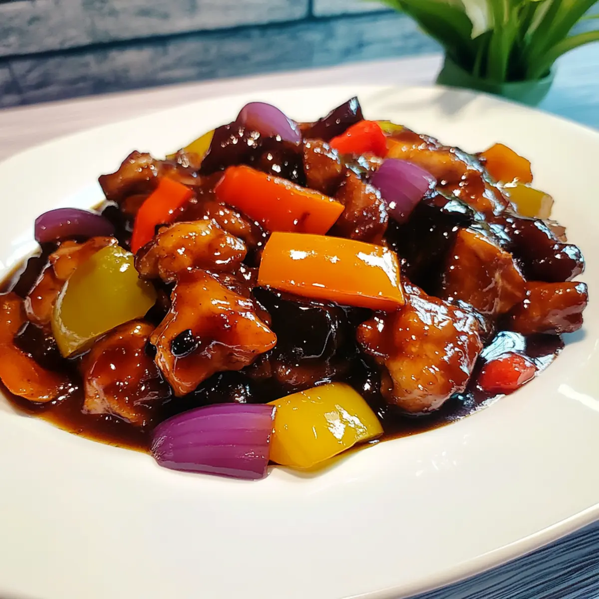 Jump to Recipe Print RecipeIn the bustling heart of my kitchen, a marinated chicken is waiting, soaking in the tangy essence of black vinegar. The aroma already tantalizes my senses, hinting at the delectable dish to come—Sweet and Sour Chicken with Bell Peppers and Eggplant. This vibrant creation marries juicy chicken with a luscious sauce, delivering an exquisite blend of flavors that can outshine any takeout. Plus, it promises a quick prep time, making it ideal for busy evenings, while also incorporating fresh vegetables that add crunch and color. As the sizzling sound fills the air, I can’t help but ask—who wouldn’t want to dive into a bowl of this comforting classic with a homemade twist? Why choose Black Vinegar Chicken? Irresistible Flavors: The unique tang of black vinegar combined with sweet and savory notes elevates this chicken dish to a new level. Quick Preparation: Ready in about 30 minutes, making it perfect for busy weeknights when you crave a homemade meal without the fuss. Fresh Ingredients: Featuring vibrant bell peppers and eggplant, this dish packs a colorful punch and essential nutrients. Takeout Alternative: Say goodbye to bland takeout; this homemade masterpiece captures the essence of your favorite restaurant dish with a personal touch. Versatile Enjoyment: Perfect over rice or even noodles; it adapts to your cravings while still delivering that classic taste. Give it a try next time you’re tempted by takeout, or consider whipping up my delicious Garlic Chicken Thighs for another delightful dinner option! Black Vinegar Chicken Ingredients For the Chicken Boneless Chicken Thighs – Ideal for juicy bites, but you can swap for chicken breasts for a leaner option. Black Vinegar – This adds depth and tang; if unavailable, rice vinegar works in a pinch although the taste will vary slightly. For the Sauce Sugar – Balances the sourness of the black vinegar beautifully; brown sugar can enhance the flavor profile. Soy Sauce – Provides umami; make sure to use low-sodium if you’re looking to cut back on salt. For the Vegetables Bell Peppers – Use a mix of colors for visual appeal and a sweet crunch. Eggplant – Adds heartiness; make sure to slice it thinly for even cooking. Don’t forget, there’s nothing quite like a steaming bowl of Black Vinegar Chicken with Bell Peppers and Eggplant at the dinner table to bring everyone together! Step‑by‑Step Instructions for Black Vinegar Chicken with Bell Peppers and Eggplant Step 1: Marinate the Chicken In a mixing bowl, combine boneless chicken thighs with black vinegar, sugar, and light seasoning. Ensure the chicken is well-coated, then cover and let it marinate for at least 30 minutes in the refrigerator. This step infuses the chicken with that distinctive tangy flavor, enhancing its tenderness and taste. Step 2: Cook the Chicken Heat a large skillet or wok over medium-high heat and add a splash of oil. Once hot, add the marinated chicken in a single layer, cooking for about 5-7 minutes until it’s golden brown and fully cooked through. Stir occasionally to ensure even cooking and to achieve that perfect sear, which gives the chicken a delicious texture. Step 3: Add the Vegetables Once the chicken is cooked, toss in sliced bell peppers and thinly sliced eggplant into the skillet. Sauté everything for about 3-4 minutes, stirring frequently. You want the vegetables to become tender-crisp, maintaining their vibrant colors and crunch, which contrasts beautifully with the juicy chicken. Step 4: Create the Sauce In a separate bowl, mix together any remaining marinade with additional black vinegar and sugar for the sauce. Pour this mixture over the chicken and vegetables. Bring it to a simmer over medium heat, allowing the sauce to thicken slightly and coat everything deliciously, which should take about 2-3 minutes. Step 5: Stir and Serve Gently stir the chicken, bell peppers, and eggplant together, ensuring everything is well-coated in the luscious sauce. Cook for an additional minute to heat through, then remove from heat. This Black Vinegar Chicken with Bell Peppers and Eggplant is now ready to be served, ideally over a bed of hot, steamed rice to absorb all that flavor. Expert Tips for Black Vinegar Chicken Marination Matters: Allow the chicken to marinate for at least 30 minutes; this enhances flavor and tenderness, ensuring every bite is succulent. High Heat Cooking: Use medium-high heat for cooking; this helps to sear the chicken perfectly while keeping it juicy and prevents any sogginess. Vegetable Crunch: Avoid overcooking the bell peppers and eggplant. Aim for tender-crisp vegetables to maintain that delightful texture contrasting with the chicken. Taste Test the Sauce: Before serving, give the sauce a quick taste. Adjust sugar or vinegar as needed—you want the perfect balance in your Black Vinegar Chicken dish. Batch Cooking: Consider doubling the recipe for meal prep. Leftovers can be stored in the fridge and enjoyed throughout the week, making delicious lunches easier! What to Serve with Sweet and Sour Chicken? Pairing the perfect sides with this delightful dish will turn dinner into a feast full of vibrant flavors and textures. Steamed Jasmine Rice: The light, fragrant grains absorb the tangy sauce beautifully, creating a harmonious balance with the chicken. Crispy Egg Rolls: These savory bites add crunch to your meal and are perfect for dipping into a sweet and sour sauce. Stir-Fried Bok Choy: Quick-cooked for tenderness, this green vegetable introduces a fresh, crunchy contrast to the juicy chicken. Cold Sesame Noodles: Chilled noodles with a light sesame dressing offer a refreshing twist that complements the warm flavors from the chicken. Sweet and Sour Cabbage Slaw: The crunchy cabbage tossed in a tangy vinaigrette echoes the sweet and sour theme, enhancing the overall experience. Fruity Pineapple Upside-Down Cake: Light and moist, this dessert adds a sweet finish, balancing the savory wit