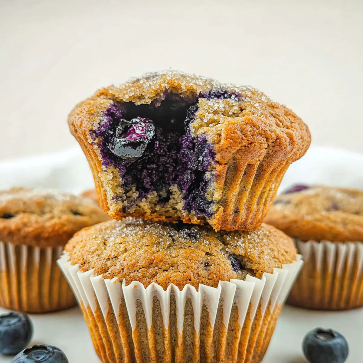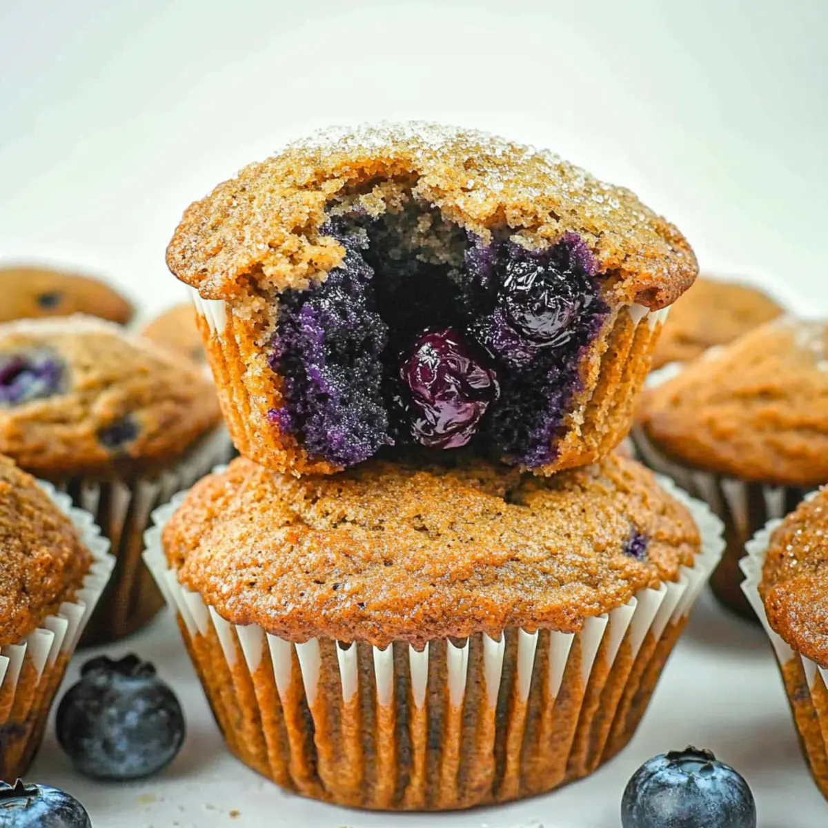 Jump to Recipe Print Recipe“Mmm, what’s that delicious smell wafting through the kitchen?” I can still picture my friend’s curiosity as I pulled a fresh batch of Blueberry Flax Muffins out of the oven. These fluffy gems are not just a treat for the senses; they promise a wholesome start to your day or a satisfying snack on the go. Packed with tart-sweet wild blueberries and enriched with ground flaxseed, they strike the perfect balance of nutrition and comfort. With a boost of fiber and a lower sugar content, these muffins stand out as a healthier alternative to traditional recipes. Plus, they’re quick to whip up, making them ideal for busy mornings or unexpected guests. Are you ready to dive into a deliciously healthy baking adventure? Let’s get mixing! Why are Blueberry Flax Muffins a must-try? Fluffiness at Its Peak: These muffins boast a light and airy texture that will have you reaching for seconds. Nutrient Powerhouse: Packed with fiber from whole wheat flour and flaxseed, they deliver a healthy punch! Quick & Easy: With simple ingredients and straightforward steps, you can have these delightful muffins ready in no time. Versatile Ingredients: Feel free to swap in different fruits or yogurts to tailor them to your taste—try adding raspberries or a dollop of plain Greek yogurt for extra creaminess! Crowd-Pleasing Flavor: The delightful balance of sweet blueberries and warming spices makes these muffins loved by all, whether served at brunch or as an afternoon snack. Get creative and check out our recipe for Yogurt Raspberry Muffins if you’re looking to mix things up or serve with a side of Banana Walnut Muffins for a flavor explosion! Blueberry Flax Muffin Ingredients These wholesome muffins come together with simple yet nutritious ingredients. For the Muffin Batter Whole Wheat Flour – Provides structure and fiber; substitute with all-purpose flour for lighter muffins. Ground Flaxseed – Adds healthy fats and nutrition; chia seeds can be used as an alternative. Baking Powder – A leavening agent; ensure it’s fresh for the best rise. Baking Soda – Works in conjunction with baking powder for a perfect lift. Ground Cinnamon – Brings warmth and spice; nutmeg can be a delightful swap. Ground Nutmeg – Enhances flavor; use sparingly or omit if desired. Salt – Amplifies the overall taste of the muffins. Eggs – Provide moisture and act as a binder; substitute with flax eggs for a vegan option. Maple Syrup – A natural sweetener; honey or agave syrup can be used as alternatives. Canola Oil – Adds moisture; melted coconut oil offers a different flavor option. Plain Greek Yogurt – Increases moisture and protein; other yogurts can be substituted. Unsweetened Oat Milk – Adds liquid; use any plant or dairy milk in its place. Vanilla Extract – Enhances the flavor profile; almond extract can provide a lovely twist. Wild Blueberries – The star ingredient for flavor and texture; fresh or frozen work perfectly. Lemon Zest and Juice (optional) – Brightens the muffin’s flavor; skip if your blueberries are already flavorful. Turbinado Sugar (optional) – Adds a crunchy topping; regular granulated sugar can be used instead. These Blueberry Flax Muffins not only offer delightful flavors but also present a nutritious start to your day or a delightful snack! Step‑by‑Step Instructions for Blueberry Flax Muffins Step 1: Preheat and Prepare Begin by preheating your oven to 425°F (220°C). While it’s heating, prepare your muffin tin with liners or spray it lightly with cooking oil to prevent sticking. The enticing aroma of the oven warming up sets the perfect stage for baking your delicious Blueberry Flax Muffins. Step 2: Mix Dry Ingredients In a medium bowl, whisk together the whole wheat flour, ground flaxseed, baking powder, baking soda, ground cinnamon, ground nutmeg, and salt. This step is crucial for distributing the leavening agents evenly. You’ll know you’re ready when the mixture is homogenous and free of lumps, creating a silky base for your muffins. Step 3: Combine Wet Ingredients In a large bowl, whisk the eggs and maple syrup until they’re well blended. Then, stir in the canola oil, plain Greek yogurt, unsweetened oat milk, and vanilla extract until smooth. This wet mixture creates a rich, moist foundation for your blueberry flax muffins, ensuring every bite is tender. Step 4: Gently Combine Mixtures Carefully fold the dry mixture into the wet mixture using a spatula. Do this gently until the ingredients are nearly combined—it’s okay if a few lumps remain as overmixing could lead to dense muffins. The batter should be thick and fragrant, showcasing the delicious flavor profile of your Blueberry Flax Muffins. Step 5: Prepare Blueberries If desired, toss the wild blueberries with lemon zest and juice in a small bowl to enhance their flavor. Gently fold this blueberry mixture into the batter, ensuring the berries are evenly distributed without breaking them. This adds juicy bursts of flavor to each muffin, making them even more delectable. Step 6: Fill Muffin Tins Spoon the muffin batter into each prepared muffin tin, filling them slightly over the top. This slight overfilling helps to create a lovely dome shape as the muffins rise. If you’re feeling adventurous, sprinkle a little turbinado sugar on top to add a crunchy and sweet finish to your Blueberry Flax Muffins. Step 7: Bake the Muffins Place the muffin tin in the preheated oven and bake at 425°F for 5 minutes. After that, reduce the temperature to 350°F (175°C) and continue baking for an additional 10-12 minutes. The muffins are done when they spring back to touch and are lightly golden on top, a beautiful sign of their fluffy texture. Step 8: Cool and Enjoy After removing the muffins from the oven, let them cool in the pan for about 5 minutes. This allows them to set properly. Then, transfer your Blueberry Flax Muffins to a wire rack to cool completely. As you await their deli
