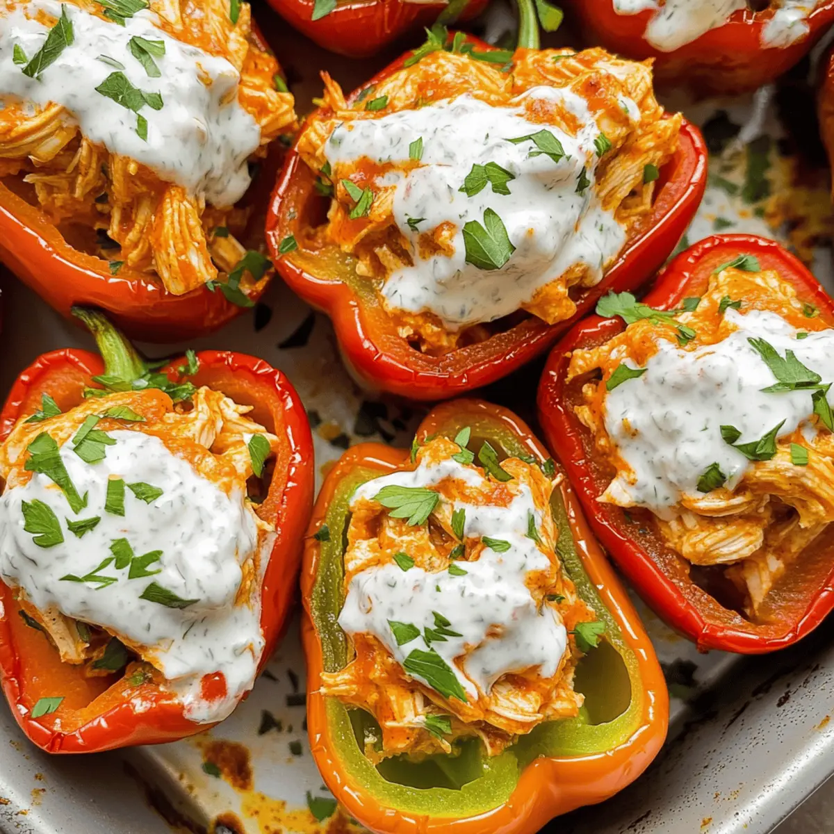 The aroma of roasted bell peppers wafts through my kitchen, conjuring warmth and comfort. As I prepare to whip up these Buffalo Chicken Stuffed Peppers, I can already picture the delight on my friends’ faces when they take that first bite. This recipe is not just a meal; it’s a savory adventure packed with tender shredded chicken, zesty buffalo sauce, and topped with creamy dairy-free ranch dressing. Not only is it a fantastic way to enjoy a low-carb, gluten-free dish, but it’s also quick to make, perfect for those busy weeknights. Whether you’re on a Whole30, paleo, or keto journey, these stuffed peppers will satisfy your cravings without sacrificing flavor. Are you ready to elevate your dinner game? Let’s dive into this delicious recipe together!