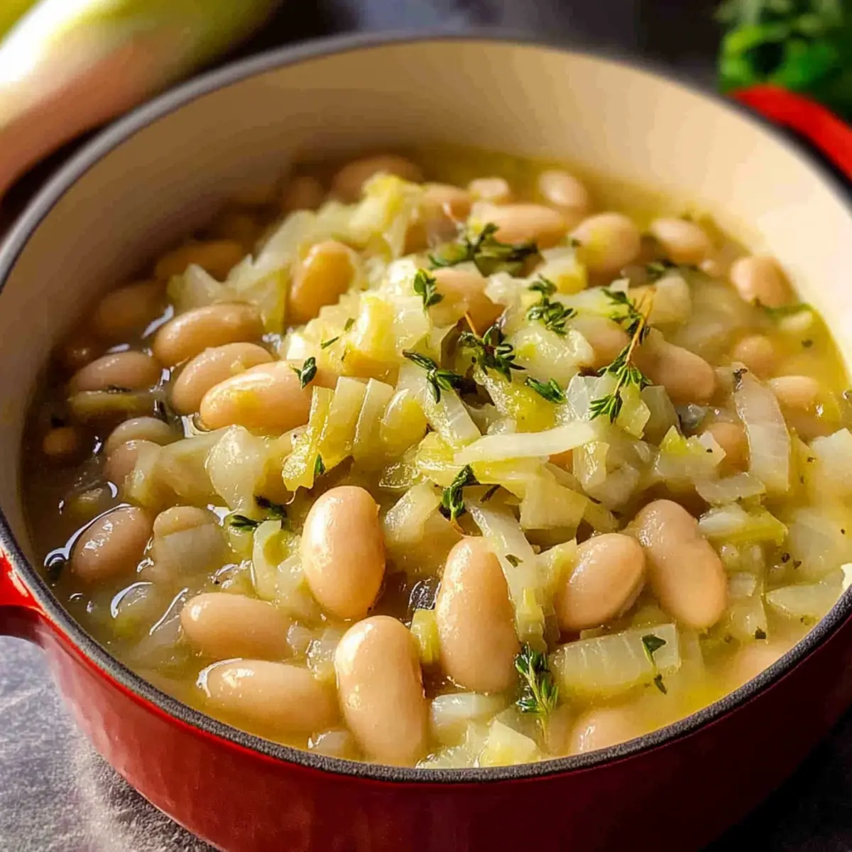 Jump to Recipe Print RecipeAs I stood in my kitchen, a fragrant melody filled the air, transporting me to a cozy bistro tucked away in the heart of France. This week, I’m excited to share my Butter Beans with Leeks recipe, a warm and inviting dish that transforms humble ingredients into a comforting masterpiece. With tender butter beans and aromatic leeks simmered together, it’s an adaptable recipe that easily caters to a vegetarian lifestyle or can be upgraded with your choice of protein. Not only is it a quick prep, perfect for busy weeknights, but it’s also a crowd-pleaser that’ll have your loved ones coming back for seconds. Why settle for fast food when you can create a nourishing, delicious meal at home? So, are you ready to elevate your dinner game with this cozy concoction? Let’s dive in! Why are Butter Beans with Leeks special? Comforting and Warm: This dish wraps you in a cozy embrace, perfect for chilly evenings. Versatile Delight: Easily adaptable to suit your taste—add proteins, or serve it with crusty bread. Quick to Prepare: Ready in around 30 minutes, it’s an ideal solution for busy weeknights. Nutrient-Rich: Packed with fiber and veggies, this meal nourishes both body and soul. Crowd-Pleaser: Loved by both vegetarians and meat-eaters alike; a guaranteed hit for everyone at the table! Pair it with Garlic Butter Chicken for a feast everyone will adore. Butter Beans with Leeks Ingredients For the Main Dish • Butter Beans – Main ingredient for creamy texture and flavor; use 1 can (15 oz) for convenience. • Leeks – Adds a mild onion flavor; choose firm, young leeks and clean thoroughly. • Garlic – Freshly minced is preferred for the best flavor; it enhances the dish’s aromatic depth. • Fresh Thyme – This aromatic herb enhances the flavor profile; substitute with dried if necessary. • Fresh Rosemary – A great complement to the dish; use sparingly if substituting with dried herbs. • White Wine – Adds acidity and richness; vegetable broth works well if avoiding alcohol. • Vegetable Stock – The base for the dish, enriching the butter beans; chicken stock is a good alternative for non-vegetarians. • Cheddar Cheese – For creaminess and rich flavor; feel free to substitute with your favorite melting cheese. • Pecorino Cheese – Optional, but recommended for a delicious salty finish. • Lemon Juice – Brightens the flavors; freshly squeezed juice gives the best taste. • Lemon Zest – Adds extra brightness; use fresh for a pop of flavor. • Fresh Parsley – Optional garnish that adds a refreshing touch. Serving Suggestions • Crusty Bread – Perfect for scooping up the creamy mixture; choose your favorite type! Step‑by‑Step Instructions for Butter Beans with Leeks Step 1: Melt the Butter In a medium saucepan, melt 2 tablespoons of butter over low heat, stirring occasionally to prevent it from burning. Allow it to become frothy and fragrant, which should take about 2 minutes. This base will create a rich and creamy foundation for your Butter Beans with Leeks. Step 2: Sauté the Aromatics Add 2 finely sliced leeks and 3 minced garlic cloves to the pan. Cook them on medium-low heat for 8-10 minutes, stirring frequently, until the leeks become soft and translucent. The sweet, aromatic scent of the leeks will fill the kitchen, signaling that it’s time for the next step. Step 3: Deglaze with Wine Pour in ½ cup of white wine, stirring well to combine, and increase the heat slightly. Let it simmer for about 2-3 minutes until the wine reduces and the alcohol evaporates, leaving behind a concentrated flavor that complements the buttery leeks. This will deepen the taste of your Butter Beans with Leeks dish. Step 4: Add the Butter Beans Incorporate 1 can (15 oz) of rinsed and drained butter beans and 1 cup of vegetable stock into the saucepan. Season generously with salt and pepper, then cook for an additional 8-10 minutes on medium heat, allowing the flavors to meld. The beans should be heated through and tender, adding creaminess to the mixture. Step 5: Stir in the Cheese Lower the heat and mix in 1 cup of shredded cheddar cheese until it melts into the buttery sauce, creating a luxurious texture. Follow this by sprinkling ¼ cup of grated pecorino cheese for an extra burst of flavor, along with 2 tablespoons of freshly squeezed lemon juice and zest. Stir well until everything is combined. Step 6: Serve and Garnish Spoon the creamy Butter Beans with Leeks into warm bowls, garnishing each portion with freshly chopped parsley for a pop of color. Serve immediately with slices of crusty bread on the side, perfect for scooping up every last bit of this delightful dish. Expert Tips for Butter Beans with Leeks Clean Leeks Thoroughly: Ensure you wash the leeks thoroughly to remove any hidden grit. This will prevent a sandy texture in your dish. Gentle Heating: Avoid overcooking the butter beans; heat them gently at the end to preserve their creamy texture. This keeps the dish delightful and comforting. Wine Reduction: Allow the white wine to reduce almost completely to concentrate the flavors without overpowering the dish. It enhances the overall taste profile of your Butter Beans with Leeks. Cheese Choices: For added creaminess, don’t skimp on the cheddar cheese. Feel free to substitute with your favorite melting cheese if desired. Garnish for Freshness: Always finish with freshly chopped parsley. It not only adds color but also brightens the flavors of the dish. How to Store and Freeze Butter Beans with Leeks Fridge: Store in an airtight container for up to 4 days. The flavors actually improve after a day, making leftovers even more delicious! Freezer: For long-term storage, freeze in a freezer-safe container for up to 3 months. Make sure to leave some space for expansion as the dish freezes. Reheating: Thaw overnight in the fridge before reheating. Warm on the stove over medium heat, adding a splash of vegetable stock to restore cr