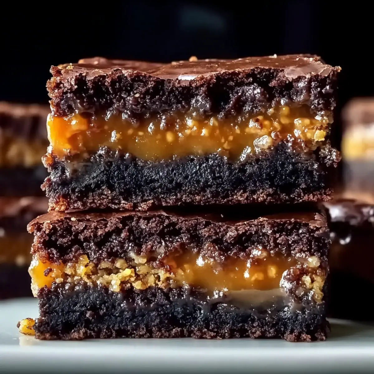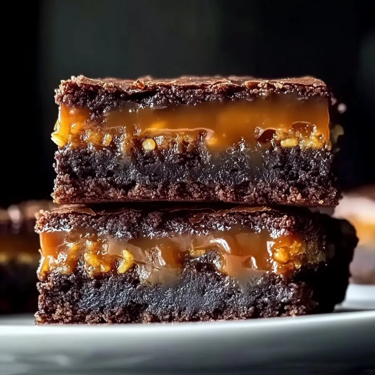 Jump to Recipe Print RecipeAs I rummaged through my pantry searching for a sweet remedy to a long day, I stumbled upon the perfect trio: dark chocolate, butter, and a sprinkle of puffed rice. This discovery led me to create the ultimate dessert—Caramel Crunch Brownies. These fudgy delights not only boast a deliciously chewy texture but are also topped with a luscious caramel and crunchy layer that effortlessly transforms any gathering into a special occasion. Quick to whip up and incredibly versatile, with options for gluten-free and vegan adaptations, these brownies are sure to win over your heart and your palate. Who wouldn’t crave a dessert that’s both easy and adaptable? Ready to bring joy to your kitchen? Let’s dive in! Why Choose Caramel Crunch Brownies? Decadent indulgence: Your taste buds will thank you for this rich, fudgy treat that’s simply irresistible. Quick and easy: With minimal preparation, these brownies come together in no time—perfect for spontaneous cravings! Diet-friendly options: Whether you’re vegan or gluten-free, adaptability is the name of the game here. Crowd-pleaser: Serve these at your next gathering, and watch them disappear faster than you can say “caramel”! Unique textures: The combination of smooth ganache and crunchy caramel creates a delightful contrast that elevates every bite. If you’re looking for another chocolate treat, don’t miss trying these Fudgy Chocolate Brownies for a classic dessert experience! Caramel Crunch Brownie Ingredients For the Brownie Base Dark Chocolate – 100 g, chopped; use high-quality chocolate for the richest flavor. Unsalted Butter – 125 g, chopped; opt for salted butter if you like a hint of extra flavor. Brown Sugar – 175 g; this adds sweetness that enhances the caramel notes. Eggs – 2 units; ensure they are at room temperature for better mixing. Plain Flour – 100 g, sifted; sifting improves the brownie’s texture. Cocoa Powder – 1 tablespoon; intensifies the chocolate flavor in the brownies. For the Caramel Crunch Topping Caster Sugar – 440 g; crucial for achieving a smooth caramel. Water – 125 ml; facilitates even sugar dissolution for the caramel. Single Cream – 125 ml; enriches the caramel crunch topping and ganache. Puffed Rice Cereal – 70 g; incorporates a delightful crunch into the topping. Each ingredient plays a vital role in crafting these Caramel Crunch Brownies that are not just delicious but also adaptable for various dietary needs. Now, let’s get baking! Step‑by‑Step Instructions for Caramel Crunch Brownies Step 1: Preheat the Oven Begin by preheating your oven to 180°C (350°F). This is crucial for ensuring that your Caramel Crunch Brownies bake evenly. While the oven heats up, gather all your ingredients and prepare a 20 cm-square cake tin by greasing it and lining it with parchment paper, which will make removing the brownies much easier once baked. Step 2: Melt Chocolate and Butter In a medium saucepan over low heat, combine 100 g of chopped dark chocolate and 125 g of chopped unsalted butter. Stir occasionally until the mixture is completely melted and smooth, taking about 5–7 minutes. Once melted, remove the saucepan from heat and set it aside to cool slightly while you prepare the other ingredients. Step 3: Mix the Brownie Batter In a large mixing bowl, whisk together 175 g of brown sugar, 2 eggs (at room temperature), 100 g of sifted plain flour, and 1 tablespoon of cocoa powder. Gradually incorporate the cooled chocolate-butter mixture into this bowl, mixing gently until everything is just combined. Avoid overmixing to keep your Caramel Crunch Brownies fudgy and tender. Step 4: Bake the Brownie Base Pour the brownie batter into the prepared cake tin, spreading it evenly. Place the tin in the preheated oven and bake for 30–35 minutes. To check for doneness, insert a toothpick in the center; it should come out with a few moist crumbs clinging to it. Once baked, remove from the oven and let it cool in the tin on a wire rack. Step 5: Prepare the Caramel Crunch In a clean saucepan, combine 440 g of caster sugar and 125 ml of water. Heat over medium flame, stirring until the sugar dissolves. Bring the mixture to a boil, then stop stirring and let it cook for 8–10 minutes until it reaches a golden color and a temperature of 160°C (320°F). Be attentive during this stage to prevent burning. Step 6: Add Cream and Puffed Rice Carefully remove the saucepan from heat and slowly stir in 125 ml of single cream and 125 g of chopped unsalted butter. Be cautious as the mixture will bubble vigorously. Once combined, fold in 70 g of puffed rice cereal, ensuring it’s well coated with the caramel. This will create the delightful crunch layer for your brownies. Step 7: Spread the Caramel Crunch After the brownie base has completely cooled, pour the caramel crunch mixture over it, spreading it evenly with a spatula. Allow the topping to set at room temperature for about 30 minutes. This step ensures that the caramel adheres well to the brownie base, creating a delicious contrast in textures for your Caramel Crunch Brownies. Step 8: Make the Ganache To create the luscious ganache, return to your saucepan and melt an additional 100 g of dark chocolate with 125 ml of single cream over low heat. Stir until smooth and glossy. Once your ganache is ready, pour it evenly over the cooled caramel crunch layer, spreading carefully to cover all corners. Step 9: Chill and Slice Allow the ganache to cool at room temperature, then transfer the entire dish to the refrigerator. Chill for at least 3 hours until the ganache has set firmly. Once set, use a sharp knife to slice the Caramel Crunch Brownies into squares, revealing their rich layers. Serve them as a decadent treat, perhaps with a scoop of vanilla ice cream. Storage Tips for Caramel Crunch Brownies Room Temperature: Store your brownies in an airtight container at room temperature for up to 3 days to keep them fresh and fudg