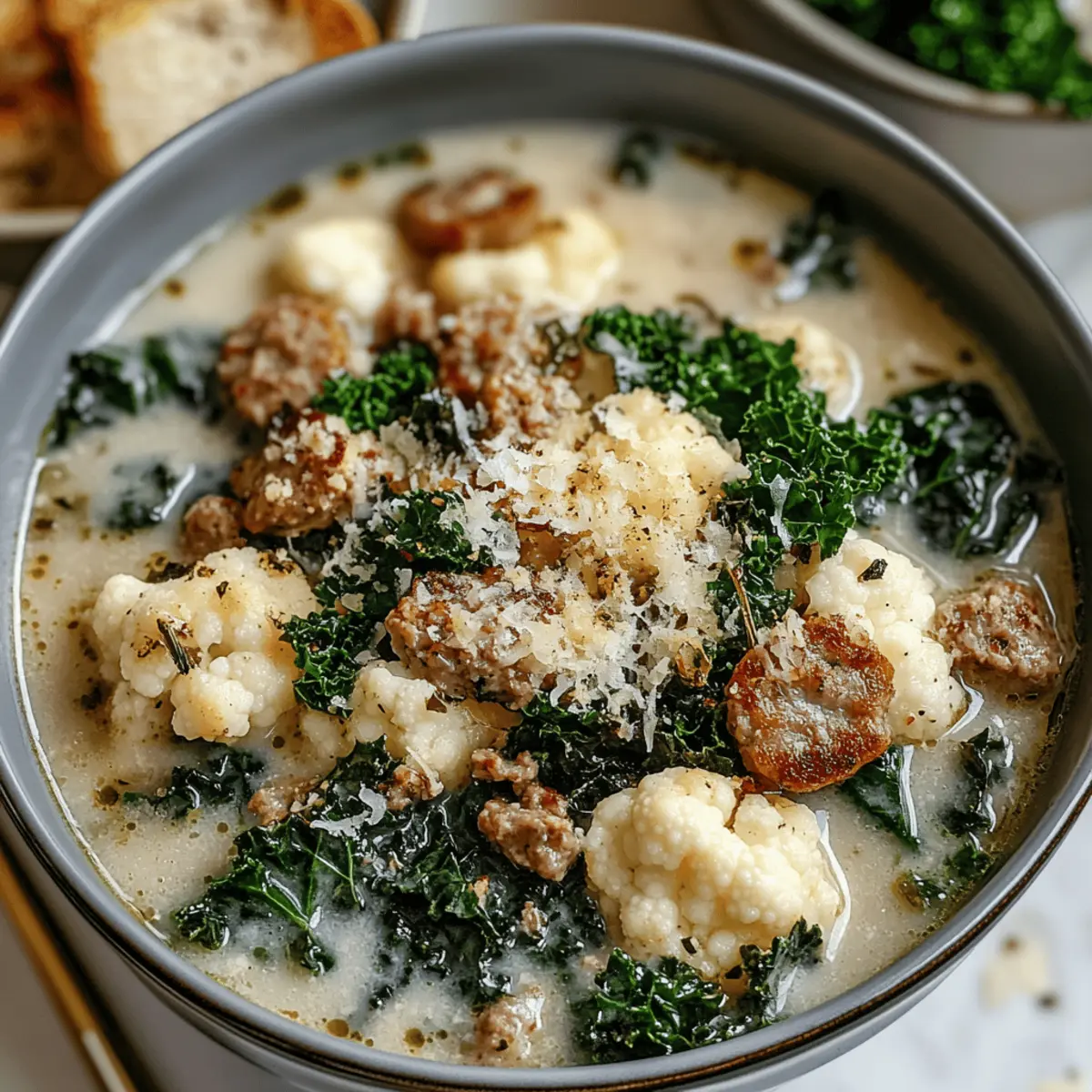 A heartwarming and nutritious Cauliflower Sausage Kale Soup that warms you up with creamy spoonfuls, perfect for chilly nights.
