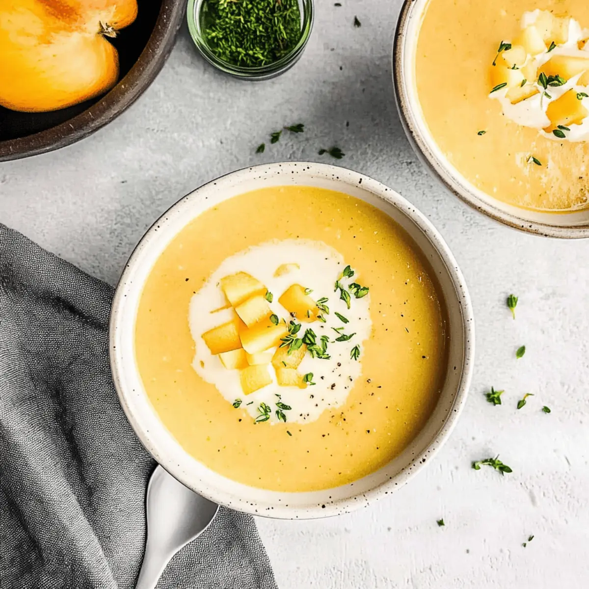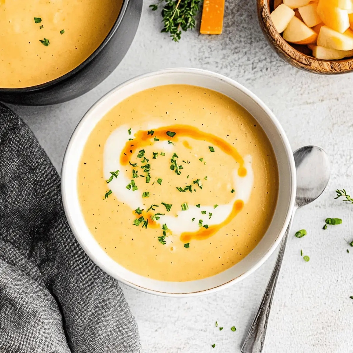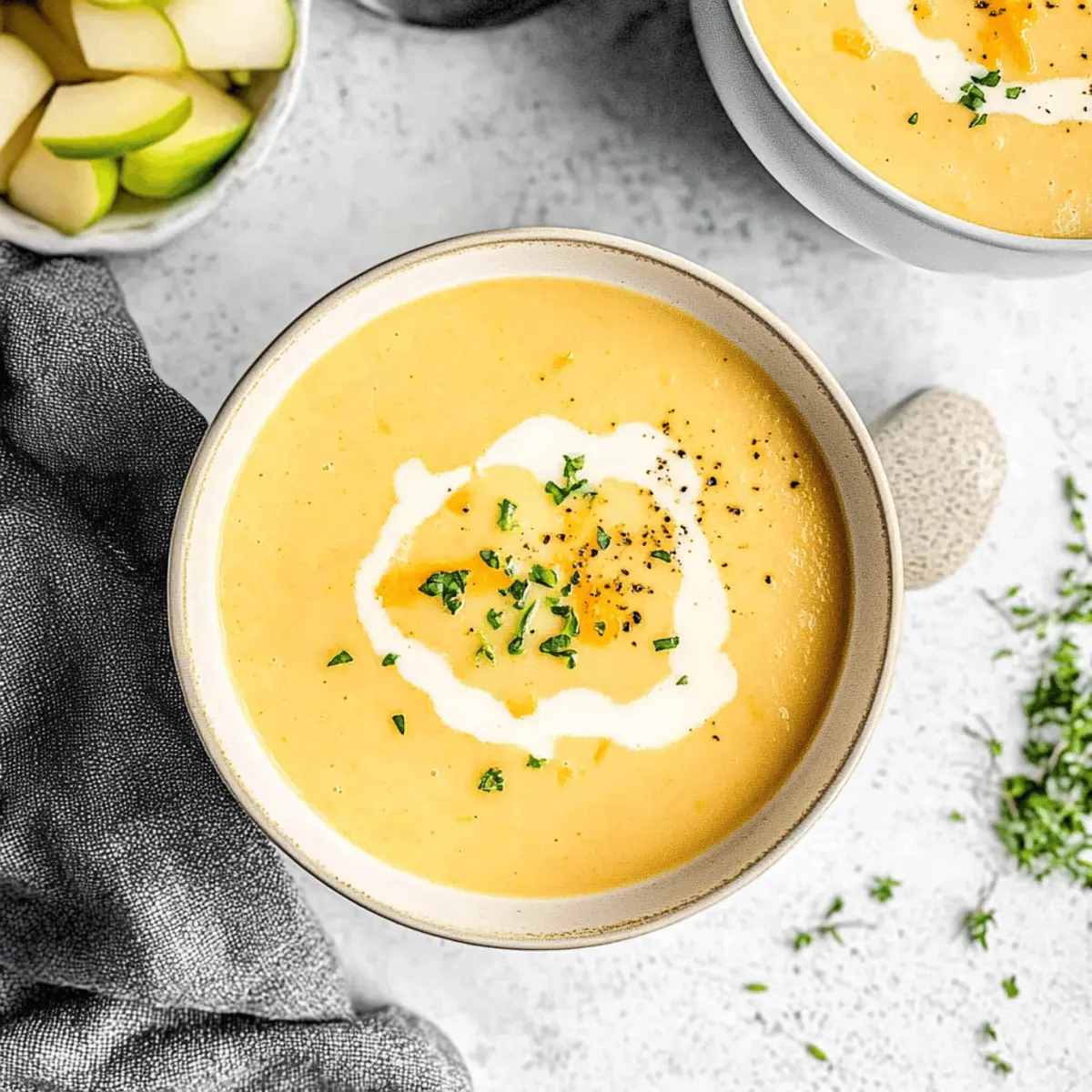 Jump to Recipe Print RecipeThere’s something magical about the first chill of autumn that invites cozy gatherings and delicious comfort food. Enter my Cheddar Apple Soup—a heartwarming blend that marries the tartness of Granny Smith apples with the savory richness of cheddar cheese. This delightful fall soup offers not only a creamy texture but also the promise of a satisfying meal that’s perfect for both a quick lunch and a leisurely dinner. Packed with fresh thyme and a hint of garlic, it’s a vegetarian-friendly recipe that showcases the season’s bounty. Plus, it’s incredibly easy to whip up, making it a fantastic choice for home chefs looking to trade out fast food for something warming and wholesome. Are you ready to dive into this unique blend of flavors and let your kitchen fill with the scent of autumn? Why is Cheddar Apple Soup a Must-Try? Comforting, creamy goodness: This soup embodies the warmth of fall with each spoonful, offering a delightful escape from everyday meals. Unique flavor profile: The tartness of Granny Smith apples beautifully complements the savory cheddar, creating a perfect harmony that’s both sweet and savory. Simple preparation: With just a few ingredients and easy steps, you’ll have a homemade dish ready in no time, steering you away from fast food! Versatile pairing: Enjoy it alongside a fresh side salad or crusty bread for a meal that’s complete and satisfying. Crowd-pleaser: It’s a dish that invites everyone to the table, making it perfect for gatherings or cozy family dinners. Dive into this Cheddar Apple Soup and savor the essence of fall in every bite! Cheddar Apple Soup Ingredients • Discover what makes this comforting dish shine! For the Soup Base Olive Oil – Ideal for sautéing aromatic vegetables; substitute with butter for added richness. Diced Onion – Provides the savory foundation; use yellow or white onions for the best flavor. Minced Garlic – Enhances the soup’s aroma; fresh garlic is recommended for maximum flavor. Fresh Minced Thyme – Infuses the soup with herbal notes; dried thyme can be used in a pinch (1/3 of the amount). For the Soup Granny Smith Apples – The star ingredient adding sweetness and tang; avoid mealy apples like McIntosh for texture. Yukon Gold Potato – Contributes creaminess and body to the soup; feel free to substitute with Russet potatoes for a different texture. Chicken Stock – Creates depth of flavor; opt for vegetable stock to keep it vegetarian-friendly. Heavy Cream – Provides a luxurious, velvety finish; substitute with coconut milk for a dairy-free option. Shredded Cheddar Cheese – Adds savory richness; aged cheddar gives a more robust flavor, and avoid pre-shredded cheese for better melting. Unleash the comforting goodness of this Cheddar Apple Soup and enjoy the perfect fall dish that everyone will love! Step‑by‑Step Instructions for Cheddar Apple Soup Step 1: Sauté the Aromatics In a large Dutch oven, drizzle in 2 tablespoons of olive oil and heat over medium heat. Add the diced onion and sauté for 5-7 minutes until it turns translucent and fragrant, stirring occasionally to prevent browning. This savory base will set the stage for your Cheddar Apple Soup. Step 2: Add Garlic and Thyme Once the onions are soft, stir in 2 minced garlic cloves and 1 tablespoon of fresh minced thyme. Cook for an additional minute, allowing the garlic to become aromatic without burning. This will create a flavorful foundation for the soup, bringing out the warm essence of fall. Step 3: Incorporate Fruits and Veggies Next, add in 2 diced Granny Smith apples and 1 diced Yukon Gold potato to the pot. Then pour in 4 cups of chicken stock, seasoning with salt and pepper to taste. Mix well, ensuring the apples and potatoes are evenly coated. This step brings together the sweetness of apples and the hearty texture of potatoes. Step 4: Simmer for Tenderness Raise the heat to bring the mixture to a boil, then reduce it to a gentle simmer. Let it cook uncovered for about 15 minutes, or until the potatoes are fork-tender. You’ll recognize it’s ready when the apples have softened, filling your kitchen with delightful autumn aromas. Step 5: Blend to Creaminess Remove the pot from heat and stir in 1 cup of heavy cream for that velvety finish. Using an immersion blender, carefully puree the soup until it’s smooth and creamy. If using a regular blender, allow the soup to cool slightly before blending to prevent splattering. This blending step is key for achieving the luxurious texture of your Cheddar Apple Soup. Step 6: Final Touch with Cheese Return the pureed soup to medium heat and gradually stir in 2 cups of shredded cheddar cheese. Keep stirring until the cheese melts completely and is well incorporated. Adjust seasoning as needed to balance the flavors. This final step infuses the soup with that signature savory richness everyone loves. Step 7: Serve and Savor Ladle the warm Cheddar Apple Soup into bowls and serve with a sprinkle of fresh thyme or crispy bacon on top for a delightful garnish. Pair it with crusty bread or a light side salad to complete your cozy meal, inviting everyone to savor the comforting flavors of fall. Expert Tips for Cheddar Apple Soup • Fresh Ingredients Matter: Use fresh Granny Smith apples and herbs to enhance flavor; avoid mealy apples which can ruin the texture of your Cheddar Apple Soup. • Sauté Mindfully: Don’t rush the sautéing of onions and garlic; this step builds the soup’s aromatic base and improves overall flavor. • Blending Safety: Stick with an immersion blender for safety when pureeing hot soup. If using a regular blender, cool slightly before blending to prevent splatter. • Cheese Quality Counts: Opt for block cheddar and shred it yourself for better melting results in your soup. Pre-shredded cheese often contains additives that affect texture. • Adjust to Taste: Always taste and adjust salt and pepper before serving; small tweaks can
