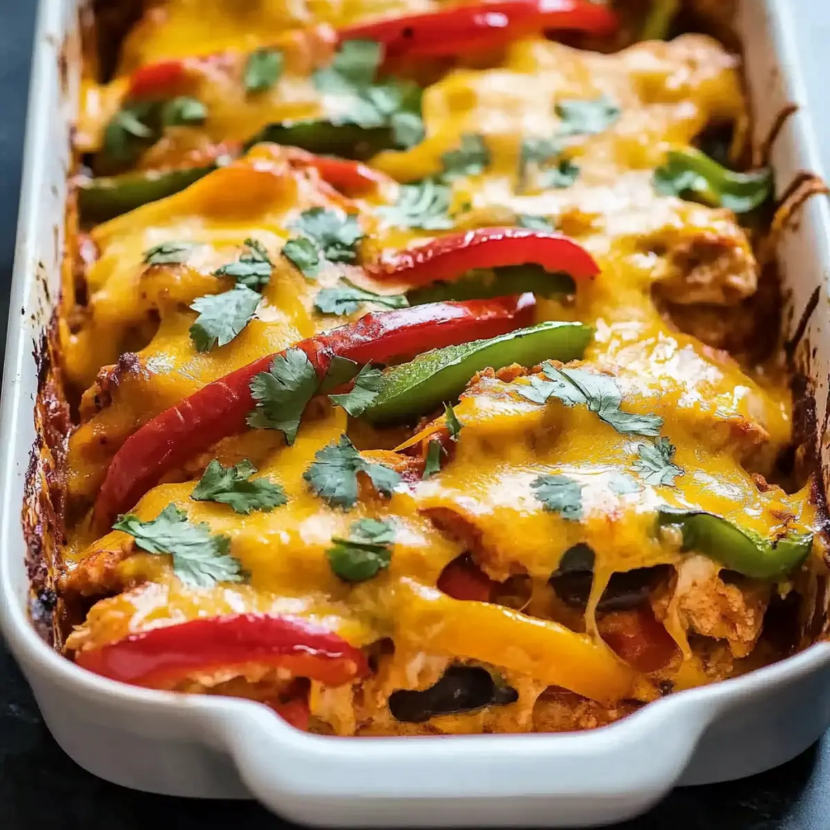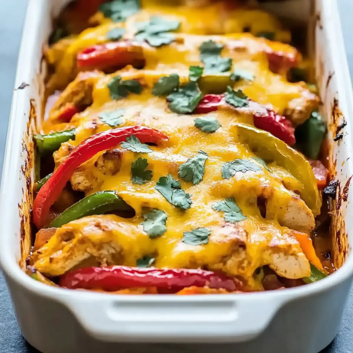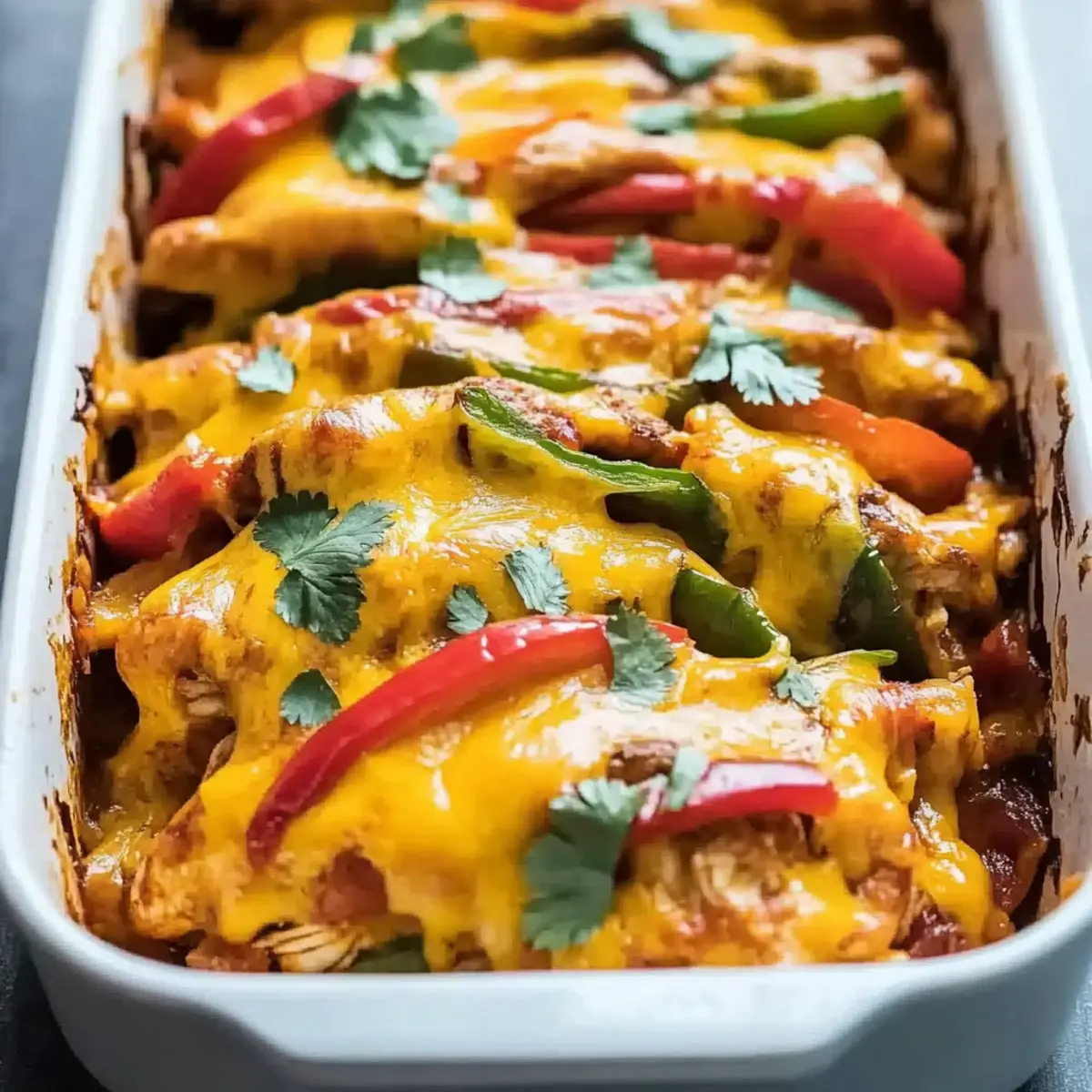 Jump to Recipe Print RecipeSliding a spoon through a bubbling casserole is one of life’s simple joys, especially when it brings the irresistible flavors of a favorite Mexican feast right to your dinner table. This Cheesy Chicken Fajita Casserole is my go-to for those busy evenings when savory comfort is non-negotiable. Packed with lean chicken, vibrant bell peppers, and layers of luscious cheese, it brings together all the warm, familiar tastes of traditional fajitas in a cozy, hearty format. Not only is it quick to prepare, but it also offers adaptability for various dietary needs—gluten-free options included! I’m excited to share this delightful dish with you, as it stands ready to impress family and friends alike. Curious to see how it all comes together? Let’s dive in! Why is this casserole a must-try? Comforting, cheesy goodness: The Cheesy Chicken Fajita Casserole envelops tender chicken and colorful peppers in wonderfully rich cheese, making each bite unforgettable. Time-saving option: This hearty dish comes together quickly, making it perfect for busy weeknights. Versatile & adaptable: Feel free to swap chicken for turkey or tofu and adjust veggies based on what you have on hand! Crowd-pleaser: Bring it to potlucks or family gatherings, and watch it disappear—everyone loves a comforting casserole! Health-conscious choices: With options for gluten-free and lighter ingredients, it caters to various dietary needs without sacrificing flavor. Pair it with a side of Vegetable Casserole Cozy for a delightful meal! Cheesy Chicken Fajita Casserole Ingredients For the Casserole • Chicken Breast – Main protein source providing lean protein for muscle growth. Substitution: Can use turkey or tofu for a lighter option. • Olive Oil – For cooking the chicken and sautéing vegetables; adds healthy fats. Substitution: Can use avocado oil or melted butter. • Red Bell Pepper – Adds sweetness and crunch; packed with vitamins. Substitution: Any color bell pepper can be used for visual appeal. • Green Bell Pepper – Contributes color and mild flavor. Notes: Mixing various bell pepper colors enhances nutrient diversity. • Yellow Onion – Provides aroma and sweetness when sautéed; rich in antioxidants. Substitution: Shallots or leeks can be used instead. • Garlic – Enhances flavor profile. Prep note: Fresh minced garlic is ideal for best flavor, can substitute with garlic powder in a pinch. • Diced Tomatoes with Green Chilies – Adds moisture and a spicy kick. Note: Consider using fire-roasted tomatoes for an added depth of flavor. • Fajita Seasoning – A spice mix that brings traditional fajita flavor. Note: Homemade seasoning can be made using cumin, paprika, and chili powder. • Cooked Rice – Provides carbohydrates for energy. Note: Use brown rice or quinoa for added fiber and nutrients. • Sour Cream – Adds creaminess and tang. Substitution: Greek yogurt can be used for a healthier alternative. For the Cheese Layers • Shredded Cheddar Cheese – Adds creaminess and flavor; high in calcium. Substitution: Use reduced-fat cheese for a healthier option or mix different cheese varieties for a unique taste. • Shredded Mozzarella Cheese – Melts beautifully, providing a gooey texture. Note: Consider using low-moisture mozzarella for better melting. To Finish • Salt and Pepper – Essential for seasoning to enhance flavors. Adjust according to taste preferences. • Fresh Cilantro (optional) – For garnish, adds freshness and color. Note: Can be omitted for those with allergies or preferences against cilantro. Step‑by‑Step Instructions for Cheesy Chicken Fajita Casserole Step 1: Preheat Your Oven Begin by preheating your oven to 375°F (190°C). This temperature ensures that your Cheesy Chicken Fajita Casserole will bake evenly, allowing the cheese to melt and the flavors to meld perfectly. While the oven warms up, gather your ingredients and you’ll be ready for the next steps. Step 2: Cook the Chicken In a large skillet, heat a drizzle of olive oil over medium-high heat. Add chicken breast strips and cook them for about 5-7 minutes, stirring occasionally, until they are browned and no longer pink in the center. This step is crucial for adding a juicy and flavorful base to your casserole, so keep an eye on the chicken. Step 3: Sauté the Vegetables Remove the cooked chicken from the skillet and set it aside. In the same skillet, add a splash more olive oil if needed, then sauté the diced red and green bell peppers along with the chopped onion for about 4-5 minutes, until they are tender and bright in color. The sautéing process enhances their flavors, making the casserole vibrant and delicious. Step 4: Add Garlic and Seasoning Stir in the minced garlic and cook for about 1 minute, just until fragrant. This quick step brings a delectable aroma to your kitchen! Now, return the browned chicken to the skillet, adding the diced tomatoes with green chilies and fajita seasoning. Mix well until everything is fully combined and heated through. Step 5: Combine with Rice Remove the skillet from the heat and gently stir in the cooked rice until it evenly coats the chicken and vegetable mixture. This will provide a hearty base for your casserole and help absorb all those amazing flavors. Make sure the rice is heated well so your Cheesy Chicken Fajita Casserole has a warm filling. Step 6: Assemble the Casserole Transfer the chicken and vegetable mixture into a greased 9×13 inch baking dish. Spread a layer of sour cream evenly over the top, then sprinkle shredded cheddar and mozzarella cheese generously on top. This cheesy layer will bubble beautifully as it bakes and create that sought-after gooey texture. Step 7: Bake to Perfection Place the dish in the preheated oven and bake for 20-25 minutes, or until the cheese is melted, bubbly, and slightly golden. Keep an eye on it toward the end to avoid over-browning. The delightful aroma that fills your kitchen will 