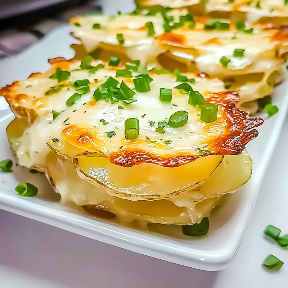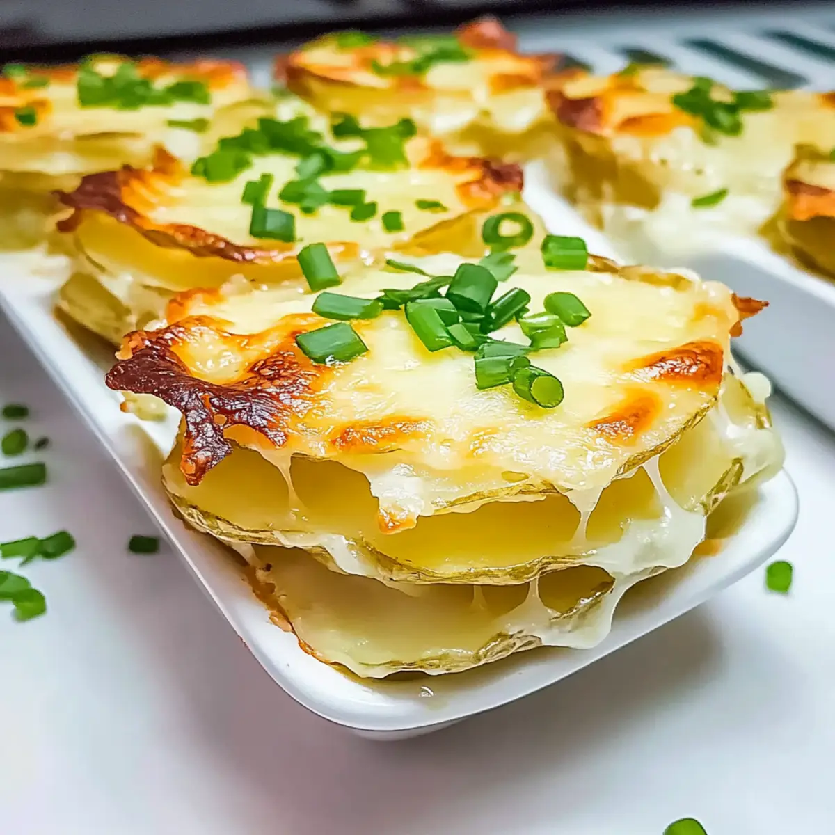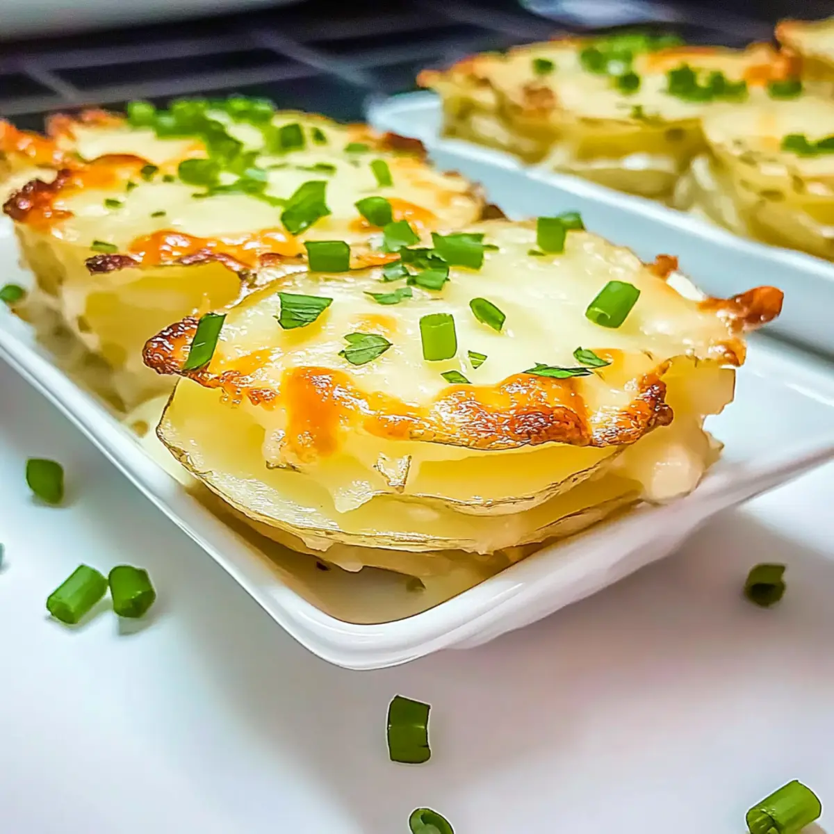 Jump to Recipe Print RecipeAs I pulled the golden, bubbly Individual Potatoes Au Gratin Gruyere from the oven, the rich aroma filled my kitchen, instantly transporting me to a cozy French bistro. This gluten-free dish is a game-changer, showcasing perfectly crispy edges that hug a creamy, cheesy center. Perfect for gatherings or just a comforting meal at home, these delightful little gratins are not only easy to prepare but also look stunning on the dinner table. With just a few simple ingredients, you’ll have a dish that feels indulgent yet is surprisingly accessible. Are you ready to impress your loved ones with this charming twist on a classic? Let’s dive into the recipe! Why You’ll Love Cheesy Potatoes Au Gratin? Comforting Warmth: The warm, gooey Gruyere cheese brings an air of indulgence, turning any meal into a celebration. Simple Preparation: With just a few easy steps, you can create individual servings that look like they came straight from a fancy restaurant. Versatile Pairing: This dish complements everything from grilled chicken to a fresh green salad, making it the perfect side for any occasion. Make-Ahead Friendly: Prepare the layers in advance and simply bake when you’re ready — perfect for busy weeknights or festive gatherings. Gluten-Free Goodness: Enjoy the rich taste of a classic comfort dish without worrying about gluten. These Potatoes Au Gratin are a treat everyone can enjoy! Cheesy Potatoes Au Gratin Gruyere Ingredients For the Potatoes • Russet Potatoes – The star of the dish, offering a creamy texture when baked; choose firm potatoes for best results. • Butter – Essential for flavor and crispiness; consider margarine for a dairy-free version. • Green Onion – Adds a fresh touch and pop of color; sprinkle over the layers for added flair. For the Cream Mixture • Half and Half Cream – This provides the luxurious creaminess that defines cheesy potatoes au gratin; whole milk will work in a pinch. • Salt – Enhances the dish’s flavor; adjust to your preference for a perfect taste. • Pepper – Adds depth and warmth; freshly cracked is ideal for the best flavor. For the Topping • Gruyere Cheese – This nutty cheese melts beautifully, creating a deliciously gooey topping; substitute with a Swiss and cheddar blend if necessary. Step‑by‑Step Instructions for Cheesy Potatoes Au Gratin Gruyere Step 1: Preheat the Oven Start by preheating your oven to 400°F (200°C). While it heats, gather a jumbo muffin pan that will let you create individual servings of your Cheesy Potatoes Au Gratin Gruyere. The muffin pan is essential to shape each delicious gratin into a perfect, comforting portion, ready for baking. Step 2: Prepare the Potatoes Peel and slice the russet potatoes into uniform 1/8-inch thick pieces. A sharp knife or mandoline works best for evenly thick slices, ensuring consistent cooking during baking. Visualize each slice as a perfect layer awaiting the creamy goodness that will follow, enhancing that delectable, comforting texture. Step 3: Butter the Muffin Pan Melt a generous amount of butter and use it to brush the cups of the muffin pan thoroughly. This step is crucial for achieving that lovely, crispy exterior on your Cheesy Potatoes Au Gratin Gruyere. The butter not only adds rich flavor but also ensures the potatoes won’t stick as they bake. Step 4: Layer the Potatoes Begin layering the potato slices in the muffin cups, slightly overlapping each piece to create a spiral pattern. The overlapping will add visual appeal and help the cheesy flavor meld into every layer. Ensure each cup is filled tightly, as this will help them hold together when baked. Step 5: Add Flavor Sprinkle chopped green onion over the first layer of potatoes to add freshness and color. Then, pour in a bit of half-and-half cream, followed by a sprinkle of salt and freshly cracked pepper. This creamy layer will bring richness to your Cheesy Potatoes Au Gratin Gruyere while enhancing the flavors of the potatoes. Step 6: Repeat the Layers Continue repeating the layering process with additional potato slices, cream, salt, and pepper until the muffin cups are nearly full. Keep a close eye on the layering for an even distribution of flavors. Each cup should be packed with the promise of gooey, cheesy bliss once baked. Step 7: Top with Cheese Pour any remaining cream over the top layer of potatoes and generously sprinkle Gruyere cheese for that truly indulgent finish. The cheese will melt beautifully, creating a rich, bubbly crust. Visualize the magic happening as it bakes, transforming into a golden crown of cheesy goodness. Step 8: Bake to Perfection Place the muffin pan in the preheated oven and bake for 35-40 minutes. Keep an eye on them as they bake; you’re looking for a golden brown top and bubbling edges. The delightful aroma of the Cheesy Potatoes Au Gratin Gruyere will fill your home, making it hard to wait! Step 9: Cool and Serve Once the potatoes are golden brown and bubbling, allow them to cool slightly before serving. Use a small spatula to gently pop the gratins out of the muffin cups. These individual servings are perfect for impressing guests and enjoying warm as you bring the comfort of home to your dining table. Make Ahead Options These Cheesy Potatoes Au Gratin Gruyere are perfect for meal prep, helping you save time on busy weeknights! You can prepare the potato layers and cream mixture up to 24 hours in advance; just cover them tightly to prevent browning. If you’re looking for a longer option, you can freeze the assembled gratins for up to 2 months. When you’re ready to enjoy, simply thaw in the refrigerator overnight, then bake directly from the fridge, adding about 10-15 minutes to the cooking time to ensure they heat through. This way, you’ll have the same delicious, comforting taste without the fuss of last-minute preparation! Expert Tips for Cheesy Potatoes Au Gratin Gruyere Uniform Slices: Always slice your russet potatoes 