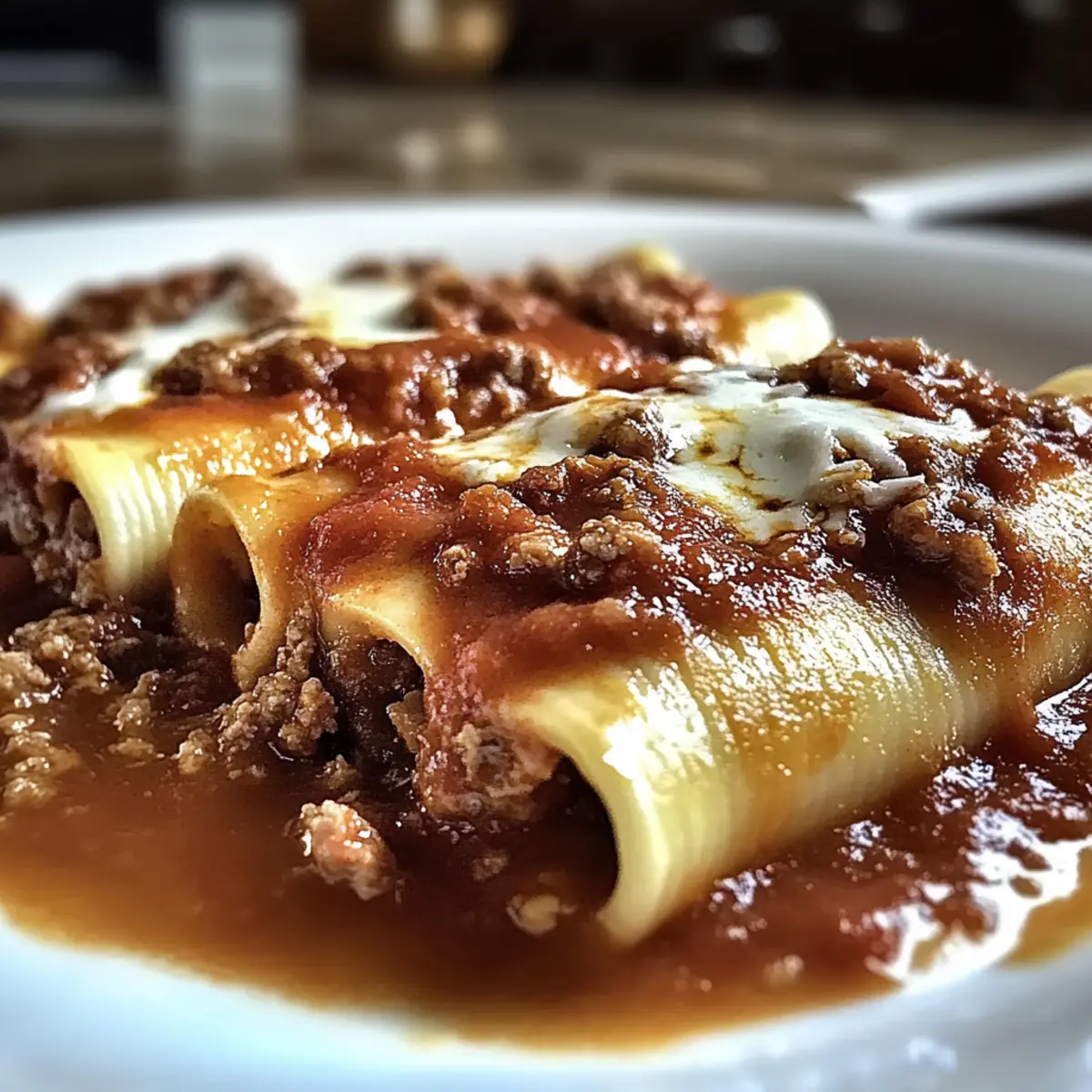 Jump to Recipe Print RecipeAs I flipped through my recipe book, my eyes landed on an intriguing dish that promised to bring the warmth of Italy right into my kitchen: Cheesy Stuffed Manicotti with Flavorful Meat Sauce. This delightful meal not only satisfies the craving for comfort food, but it’s also remarkably quick to whip together—perfect for those busy weeknights when time is tight but flavor is essential. What I love most about this recipe is its incredible versatility; whether you’re looking to explore vegetarian options, swap proteins, or even experiment with different sauces, the possibilities are endless. Just think of the joy you’ll experience as you serve this delicious mannicotti to your family and friends—who could resist that creamy filling and rich, savory meat sauce? So, are you ready to roll up your sleeves and dive into this Italian classic together? Why is this manicotti a must-try? Versatile Options: This Cheesy Stuffed Manicotti is a canvas waiting for your personal touch! Whether you prefer vegetarian delights like sautéed spinach or mushrooms, or lean proteins such as ground turkey, the possibilities are endless. Quick Preparation: With a prep time that fits seamlessly into your fast-paced evenings, you can have this dish on your table in no time—ideal for busy families! Rich Flavor: The hearty meat sauce complements the creamy ricotta filling beautifully, ensuring every bite is packed with flavor and comfort. Crowd-Pleasing Comfort: Perfect for family gatherings or cozy dinners with friends, this dish guarantees satisfied smiles and second helpings. Make-Ahead Convenience: Mix and match your ingredients today and assemble later for those nights when time is scarce. You can also store leftovers or even freeze unbaked manicotti for a future indulgent meal! Cheesy Stuffed Manicotti Ingredients • Discover the essential components for crafting Cheesy Stuffed Manicotti with Flavorful Meat Sauce. For the Pasta Manicotti Shells – Prepackaged shells save time and ensure even cooking. For the Meat Sauce Ground Beef – Provides a hearty protein base; can swap for lean turkey for a lighter option. Italian Sausage – Enhances flavor depth; ground turkey sausage can be used for a leaner version. Onion – Adds sweetness and aroma; use shallots for a milder flavor. Garlic – Fresh garlic offers maximum flavor; should be minced for the best taste. Marinara Sauce – Base for the meat sauce; jarred or homemade varieties work well. For the Filling Ricotta Cheese – Creates a creamy filling; cottage cheese can be a substitute. Mozzarella Cheese – Adds melty goodness; essential for that cheesy texture. Parmesan Cheese – Offers salty, nutty flavor; can use Pecorino Romano for tanginess. Egg – Binds filling together; aquafaba can replace it for vegan options. Basil & Oregano – Fresh herbs elevate overall flavor; adjust quantities to taste. Salt & Pepper – Essential for seasoning; always adjust to personal preference. Step‑by‑Step Instructions for Cheesy Stuffed Manicotti with Flavorful Meat Sauce Step 1: Preheat the Oven Begin by preheating your oven to 375°F (190°C). This will ensure that the Cheesy Stuffed Manicotti bakes evenly and reaches that golden, bubbling perfection when it’s done. Prepare a baking dish by lightly greasing it to prevent sticking and make serving easier later. Step 2: Cook the Manicotti Shells In a large pot, bring salted water to a boil over high heat. Carefully add the manicotti shells and cook them for 6-7 minutes until they are al dente. Drain the shells and rinse them under cold water to stop the cooking process, then set them aside to cool while you prepare the filling and sauce. Step 3: Prepare the Meat Sauce In a large skillet, heat over medium heat, adding the ground beef and Italian sausage. Cook for about 8 minutes, breaking up the meat as it browns, until evenly cooked. Stir in finely chopped onions and garlic, cooking for another minute until aromatic. Pour in marinara sauce and let everything simmer for about 10 minutes to marry those flavors perfectly. Step 4: Make the Filling In a mixing bowl, combine ricotta cheese, 1 cup of shredded mozzarella, grated Parmesan, the egg, and a handful of fresh basil and oregano. Season this mixture with salt and pepper, stirring until the filling is smooth and cohesive. This creamy mixture will be the heart of your Cheesy Stuffed Manicotti, adding richness to each bite. Step 5: Assemble the Manicotti Spread a thin layer of the meat sauce along the bottom of the greased baking dish. Using a spoon, fill each manicotti shell with the ricotta mixture, taking care not to overstuff. Arrange the filled shells seam-side down in the baking dish, ensuring they are nestled closely together for optimal baking. Step 6: Top and Cover Once all the manicotti shells are in the dish, generously pour the remaining meat sauce over them, ensuring everyone is well covered. Sprinkle the remaining mozzarella cheese on top for that melty texture. To keep the moisture in while baking, cover the dish with aluminum foil. Step 7: Bake the Manicotti Transfer the baking dish into the preheated oven and bake for 30 minutes. This will allow the flavors to meld beautifully, and the pasta to absorb the sauce. The aroma wafting through your kitchen should be absolutely delightful! Step 8: Finish Baking Uncovered After 30 minutes, carefully remove the foil and return the dish to the oven to bake for an additional 10 minutes. Look for a bubbling, golden top with melted cheese. This final step creates that coveted crispy layer that balances the creamy filling inside. Step 9: Let it Rest Once baked to perfection, remove the Cheesy Stuffed Manicotti from the oven and let it rest for about 5 minutes before serving. This resting period helps to set the filling and make serving easier, allowing those rich flavors to settle even more. What to Serve with Cheesy Stuffed Manicotti with Flavorful Meat Sauce Imagine the 