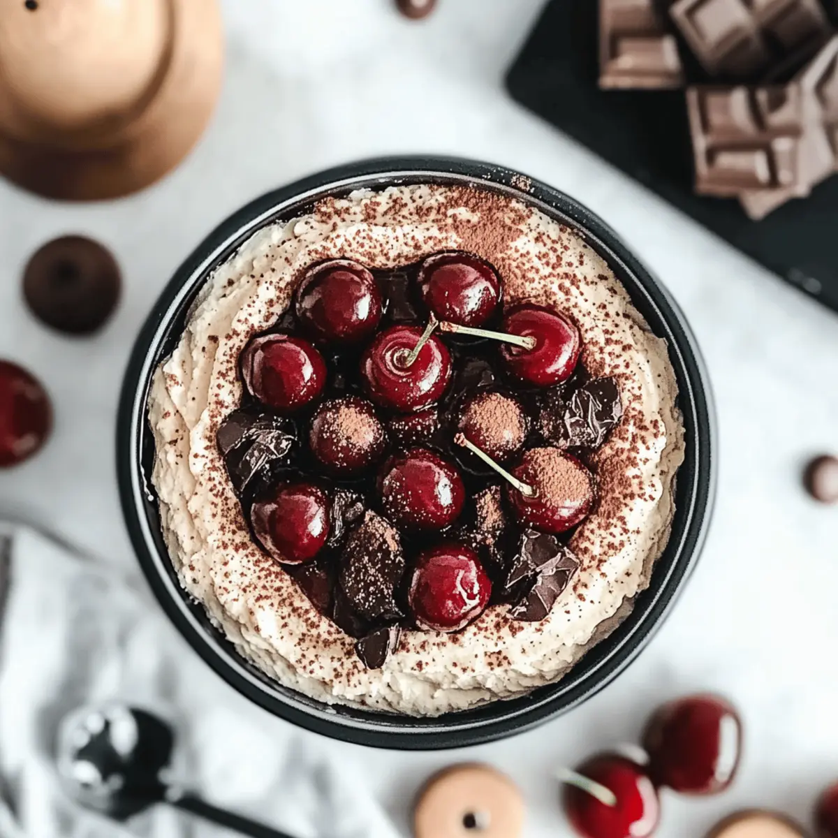 Jump to Recipe Print RecipeI’ll never forget the first time I took a bite of tiramisu rich with flavor and warmth; it was love at first taste. But when I discovered the Cherry Amaretto Tiramisu, it transformed my expectations of this classic dessert into something extraordinary. This delightful twist layers creamy mascarpone with luscious cherries infused with amaretto, making it an unforgettable treat perfect for any occasion. Not only is it an impressive centerpiece for gatherings, but it’s also a quick recipe that combines ease with elegance. As each spoonful captures the essence of sweet cherries and a hint of almond, it becomes a dessert that invites everyone to linger just a little longer at the table. So, how do we create this gorgeous masterpiece? Let’s dive in! Why is Cherry Amaretto Tiramisu a Must-Try? Elegant Simplicity: This recipe effortlessly combines rich layers of mascarpone and cherries with minimal fuss, ideal for busy home cooks. Decadent Flavor: The infusion of amaretto creates a sublime balance of sweetness and nuttiness, elevating this dessert beyond the ordinary. Versatile Choice: Feel free to experiment with various fruits or even make a non-alcoholic version easily! Impressive Presentation: With its stunning layers and dusting of cocoa, your Cherry Amaretto Tiramisu is sure to wow guests at any gathering. Quick to Prepare: Despite its elegant look and flavor, this dessert comes together quickly, letting you enjoy your time with loved ones. For more delightful dessert inspiration, check out our Baked Tiramisu Cheesecake for a twist on another classic! Cherry Amaretto Tiramisu Ingredients • Here’s what you’ll need for your Cherry Amaretto Tiramisu! For the Cream Mixture Mascarpone Cheese – Provides a rich, creamy texture. Substitution: Cream cheese can be used but alters flavor slightly. Heavy Cream – Adds lightness and enhances creaminess. Amaretto Liqueur – Infuses a boozy sweetness unique to this tiramisu. Substitution: Non-alcoholic version can use almond extract mixed with water or cherry juice. Cherry Juice – Adds tartness and moisture. Granulated Sugar – Sweetens the mascarpone mixture. Cherry Preserves – Enhances cherry flavor. Vanilla Extract – Adds depth of flavor. Fresh Cherries (pitted and chopped) – Offers bursts of sweetness and texture. Note: Frozen cherries can also be used; thaw and drain them well beforehand. For the Ladyfinger Layer Ladyfingers – Serve as the base of the tiramisu, absorbing flavors without becoming soggy. Quick dips are crucial. For the Finish Cocoa Powder – Dust the top for a classic finish. Dark Chocolate (shaved or grated) – Adds extra richness and visual appeal. Now that you have all the essential ingredients, you’re ready to create your stunning Cherry Amaretto Tiramisu! Step‑by‑Step Instructions for Cherry Amaretto Tiramisu Step 1: Prepare the Cream Mixture In a large mixing bowl, combine 1 cup of mascarpone cheese and 1 cup of heavy cream. Using a hand mixer, beat on medium speed for about 2-3 minutes until the mixture is smooth and fluffy, resembling soft peaks. Make sure there are no lumps, as this ensures a creamy Cherry Amaretto Tiramisu. Set aside while you prepare the next steps. Step 2: Incorporate Flavors Add 1/4 cup of amaretto liqueur, 1/4 cup of cherry juice, and 1 teaspoon of vanilla extract to the whipped cream mixture. Continue mixing on low speed for 1-2 minutes until fully incorporated. The cream will start to take on a delightful aroma from the almond and cherry; this will be the flavor foundation for your Cherry Amaretto Tiramisu. Step 3: Blend in Sweetness In a separate small bowl, blend together 1/3 cup of granulated sugar and 1/4 cup of cherry preserves until smooth. Gently fold this sweet mixture into the mascarpone cream using a spatula. Ensure the sugar is dissolved, which will contribute to the overall sweetness of your Cherry Amaretto Tiramisu. Be careful not to overmix, keeping the mixture light and airy. Step 4: Add Fresh Cherries Delicately fold in 1 cup of chopped fresh cherries (pitted) into the mascarpone mixture, ensuring even distribution throughout. This step adds beautiful fruity flavor to your Cherry Amaretto Tiramisu, giving the dessert texture and bursts of sweetness. Be cautious not to crush the cherries, as you want to retain their shape. Step 5: Prepare Ladyfingers In a shallow dish, combine 1/2 cup of amaretto liqueur and 1/2 cup of cherry juice. Quickly dip each ladyfinger into the mixture, turning them just until moist but not soggy—about 1-2 seconds on each side. Layering the ladyfingers correctly will help create the ideal base for your Cherry Amaretto Tiramisu. Step 6: First Layer of Ladyfingers Arrange a single layer of dipped ladyfingers at the bottom of a 9×9-inch baking dish. Ensure they cover the entire base without gaps; this will act as the foundation for your dessert. The ladyfingers will absorb the flavors of the cherry juice and amaretto, enhancing the overall taste of the Cherry Amaretto Tiramisu. Step 7: Spread Mascarpone Mixture Spread half of the mascarpone mixture over the layer of ladyfingers, using a spatula to ensure an even layer. Smooth it out until it has the same thickness across the dish. The creamy layer should beautifully contrast the cookies beneath, setting the stage for the next layer of your Cherry Amaretto Tiramisu. Step 8: Repeat with Ladyfingers Add another layer of dipped ladyfingers on top of the mascarpone mixture, just like the first layer. Again, ensure that each ladyfinger is evenly dampened but not overly soaked. This will create a perfectly balanced texture and flavor in your Cherry Amaretto Tiramisu, as each bite will be deliciously harmonious. Step 9: Final Mascarpone Layer Pour the remaining mascarpone mixture over the second layer of ladyfingers and spread it evenly, making sure to cover the ladyfingers completely. This top layer of your Cherry Amaretto Tiramisu is crucial for a smooth and