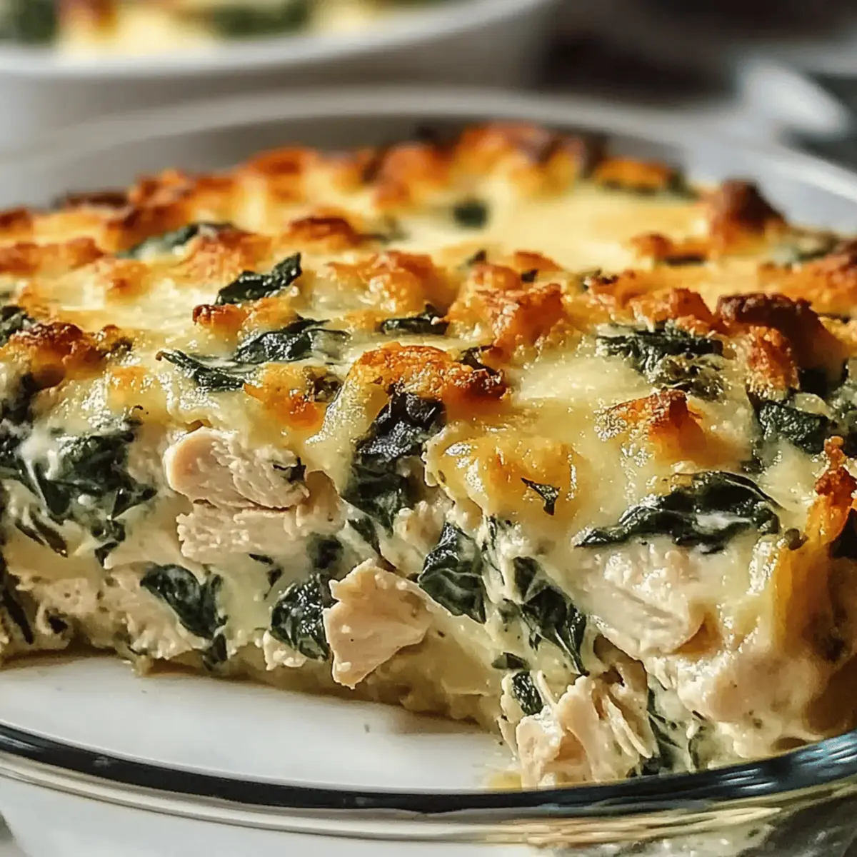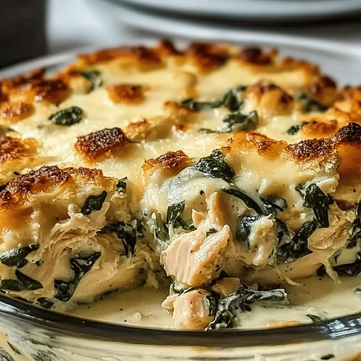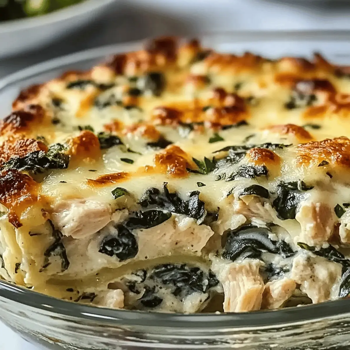 Jump to Recipe Print RecipeAs the aroma of dinner fills the air, I often find myself dreaming up quick yet satisfying meals that satisfy cravings and nourish bodies. Enter my Chicken and Spinach Casserole with Cream Cheese—a dish that feels like a warm embrace on a cool evening. This comforting casserole is not only family-friendly but also incredibly versatile, allowing you to switch things up with rotisserie chicken or any vegetables you have on hand. In under an hour, you’ll serve up a creamy, cheesy delight that’s perfect for busy weeknights. So, are you ready to dive into a delicious homemade experience that will leave everyone asking for seconds? Why is this casserole a must-try? Comforting, Creamy Delight: The Chicken and Spinach Casserole brings together tender chicken and velvety cream cheese for a dish that wraps you in warmth. Quick to Prepare: It’s ideal for busy nights; this recipe can go from oven to table in under an hour! Versatile Ingredients: Whether you’re using rotisserie chicken or mixing in seasonal veggies, you can customize it to suit your pantry. Crowd-Pleaser: Family and friends alike will rave about the gooey mozzarella and crunchy topping, making it perfect for gatherings! Don’t forget to try pairing it with a fresh salad for a balanced meal, or explore other favorites like Chicken Green Bean or Vegetable Casserole Cozy for more comforting options. Chicken and Spinach Casserole Ingredients Dive into the comforting world of this Chicken and Spinach Casserole! For the Casserole Cooked Chicken – Use shredded rotisserie chicken for convenience or any leftover cooked chicken you have on hand. Spinach – Fresh spinach gives the best flavor, but feel free to substitute with kale or frozen spinach if that’s what you have. Cream Cheese – This adds a rich creaminess; light cream cheese is a great substitute for a healthier option. Mozzarella Cheese – The gooey cheese that binds everything together; consider adding a touch of Parmesan for extra flavor! Garlic Powder – Enhances the overall taste of the casserole; fresh garlic can be substituted for an aromatic kick. Onion Powder – A little adds depth; feel free to use fresh onions—just sauté them first for a sweeter flavor. Salt and Pepper – Essential seasonings to taste; adjust according to your preference for a personalized touch. For the Topping Breadcrumbs – Adds a crunchy layer; substitute with crushed crackers or omit for a gluten-free version. Olive Oil or Butter – Drizzle over the breadcrumbs to help them crisp up beautifully during baking. This Chicken and Spinach Casserole is simple, yet it promises to deliver on flavor and satisfaction, making it a favorite for cozy nights! Step‑by‑Step Instructions for Chicken and Spinach Casserole Step 1: Preheat the Oven Start by preheating your oven to 350°F (175°C). This ensures your Chicken and Spinach Casserole will bake perfectly, achieving a lovely golden top. Preheating is crucial, so take this time to gather your other ingredients while the oven warms up. Step 2: Mix Ingredients In a large mixing bowl, combine the shredded cooked chicken, soft cream cheese, and fresh spinach. Add half of the mozzarella cheese and season with garlic powder, onion powder, salt, and pepper to taste. Stir well until all ingredients are fully incorporated, creating a creamy filling that’s both comforting and delectable. Step 3: Transfer to Baking Dish Grease a 9×13-inch casserole dish with a bit of oil or butter to prevent sticking. Pour the delicious chicken and spinach mixture into the dish, spreading it evenly with a spatula. This step ensures every bite of your Chicken and Spinach Casserole is packed with flavor while keeping the filling moist during baking. Step 4: Top with Cheese and Breadcrumbs Sprinkle the remaining mozzarella cheese evenly over the top of the casserole. Then, add a generous layer of breadcrumbs for that crispy texture we all love. Drizzle olive oil or melted butter over the breadcrumbs to promote browning, giving your casserole that appealing golden finish. Step 5: Bake Place your casserole in the preheated oven and bake for 25-30 minutes. You’ll know it’s ready when the top is golden brown and the cheese is bubbling. This step infuses the flavors beautifully while creating a delightful texture contrast between the creamy filling and crunchy topping. Step 6: Cool and Serve Once baked, remove the casserole from the oven and let it cool for about 5 minutes before serving. This cooling period helps the casserole set up a bit, making it easier to cut into portions. Serve your Chicken and Spinach Casserole over fluffy rice or pasta for a heartwarming meal that’s sure to please everyone at the table. Make Ahead Options These Chicken and Spinach Casserole delights are perfect for meal prep, allowing you to save time during busy weeknights! You can assemble the casserole up to 24 hours in advance and simply refrigerate it. Just remember to cover it tightly to maintain freshness and prevent any browning of the spinach. When you’re ready to serve, preheat your oven and bake it straight from the fridge; just add an extra 5-10 minutes to the cooking time. This way, you’ll still enjoy that comforting, creamy goodness that makes this Chicken and Spinach Casserole a family favorite, with minimal effort on your part! How to Store and Freeze Chicken and Spinach Casserole Fridge: Store leftovers in an airtight container for up to 3 days. Reheat in the oven at 325°F for about 15-20 minutes or until hot throughout. Freezer: For longer storage, freeze the unbaked Chicken and Spinach Casserole for up to 1 month. Thaw overnight in the fridge before baking to ensure even cooking. Reheating: If reheating from frozen, allow the casserole to thaw first, then bake at 350°F for 30-40 minutes, until bubbly and golden. Covering: Always cover the casserole with foil while baking to prevent excess browning; uncover for the last 10 minutes fo