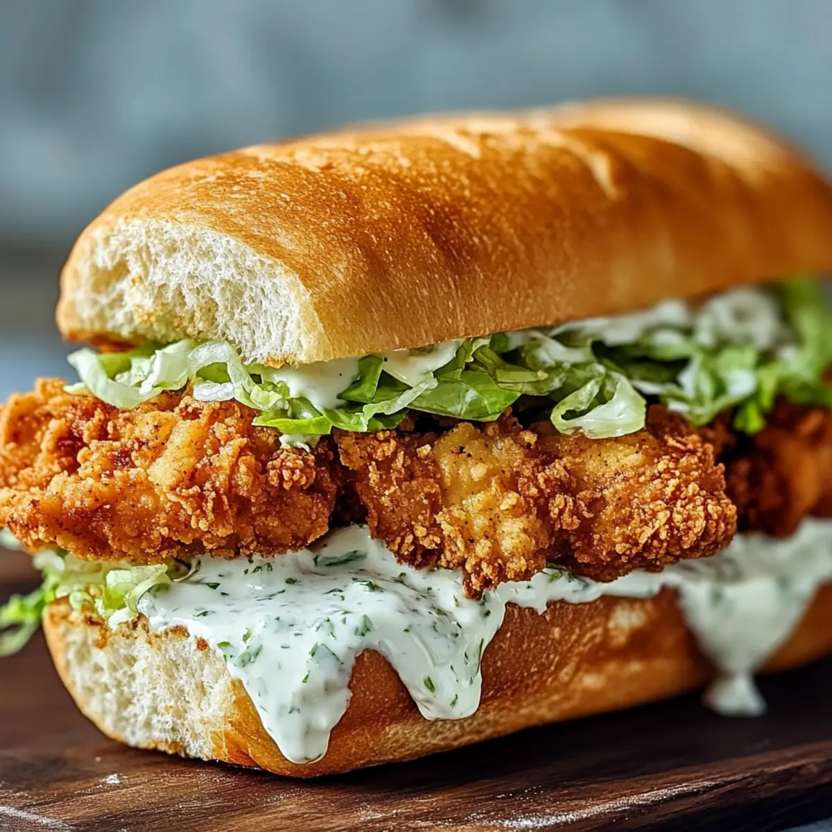 Jump to Recipe Print RecipeAs I stood in the kitchen, the aroma of sizzling chicken filled the air, instantly transforming the space into a culinary haven. What better way to indulge than with a Crispy Chicken Caesar Sandwich? This delightfully crunchy masterpiece captures the hearts of comfort food lovers everywhere, marrying juicy, marinated chicken with creamy Caesar dressing and fresh romaine. Perfect for those bustling weekday lunches or relaxing weekend dinners, it boasts a crispy texture that’s sure to impress even the pickiest eaters. Plus, it’s a breeze to whip up, saving you from yet another fast food run. So, are you ready to elevate your sandwich game and delight your taste buds with this irresistible creation? Let’s dive in! Why is this sandwich a must-try? Crispy, irresistible texture: The combination of panko breadcrumbs and all-purpose flour creates an addictively crunchy outer layer while keeping the chicken juicy inside. Flavorful marinade: Buttermilk and spices infuse the chicken with a delightful flavor that elevates your meal. Versatile base: Whether you serve it with BBQ Chicken Mac or a light salad, this sandwich shines in any setting. Quick and easy: Perfect for busy nights, with a prep time of just an hour—most of which is hands-off! Comfort food vibe: This dish satisfies cravings like few others, making it a hit for family dinners or casual get-togethers. By the way, if you’re looking to mix things up, try swapping the chicken for a crispy breaded tofu in this dish! Chicken Caesar Sandwich Ingredients Get ready to create a crispy delight! For the Chicken and Coating Buttermilk – Tenderizes chicken and enhances flavor; substitute with milk plus a splash of lemon juice if unavailable. Garlic Powder – Adds a robust flavor to the chicken; adjust to taste. Onion Powder – Enhances seasoning profile; feel free to modify quantities as desired. Paprika – Provides a subtle smokiness; perfect for adding depth of flavor. Salt – Essential for seasoning; sea salt is recommended for best results. Black Pepper – Freshly cracked boosts the overall taste; use generously but to taste. Chicken Breasts – The star ingredient; chicken thighs can add extra flavor and moisture. All-Purpose Flour – Creates a crunchy outer layer; crucial for texture. Panko Breadcrumbs – Delivers that extra crunch you crave; regular breadcrumbs will work but provide a different texture. Grated Parmesan Cheese – Enhances the crust’s savory essence; consider a vegan alternative for dairy-free needs. For the Caesar Sauce Mayonnaise – The base for your creamy sauce; Greek yogurt makes for a lighter option. Lemon Juice – Brightens the flavors; fresh juice is always preferable. Worcestershire Sauce – Adds depth to your sauce; soy sauce is a good alternative for a similar umami profile. For Assembling Fresh Romaine Lettuce – Adds crispness and a fresh bite; any leafy green like spinach will also work. Rolls (e.g., Ciabatta, Brioche) – These hold all the delicious components together; choose your favorite based on texture preferences. This Chicken Caesar Sandwich is poised to become a family favorite, bringing comfort to your dinner table! Step‑by‑Step Instructions for Crispy Chicken Caesar Sandwich Step 1: Marinate Chicken In a large bowl, combine buttermilk with garlic powder, onion powder, paprika, salt, and black pepper. Add the chicken breasts to the mixture, ensuring they are fully submerged. Cover the bowl and refrigerate for at least 1 hour, preferably overnight. This step will tenderize the chicken and infuse it with flavor, setting the stage for your delicious Chicken Caesar Sandwich. Step 2: Prepare Coating While the chicken marinates, preheat your oven to 400°F (200°C) to ensure it’s ready for baking. In a shallow dish, mix together all-purpose flour, panko breadcrumbs, and grated Parmesan cheese. This crispy coating will create a wonderful crunch on your sandwich. Set aside the mixture for the next step while you prepare your baking sheet. Step 3: Dredge Chicken After marinating, remove the chicken breasts from the buttermilk, allowing any excess marinade to drip off. Dredge each piece in the breadcrumb mixture, pressing lightly to ensure the coating adheres well. The texture should be even and flaky, perfect for delivering that satisfying crunch in your Chicken Caesar Sandwich. Step 4: Bake Chicken Place the breaded chicken breasts on a parchment-lined baking sheet, making sure they are spaced apart for even cooking. Bake in the preheated oven for 20–25 minutes until golden brown and cooked through, reaching an internal temperature of 165°F (74°C). Keep an eye on them; they should be crispy and inviting! Step 5: Make Caesar Sauce While the chicken is baking, prepare the creamy Caesar sauce. In a small bowl, whisk together mayonnaise, fresh lemon juice, and Worcestershire sauce until smooth and well blended. This luscious sauce is crucial for your Chicken Caesar Sandwich, adding flavor that ties all the components together beautifully. Step 6: Assemble Sandwich Once the chicken is out of the oven and allowed to cool slightly, it’s time to assemble your sandwich. If desired, lightly toast your rolls for added texture. Spread the Caesar sauce on both sides of the rolls, layer fresh romaine lettuce, then place the crispy chicken breasts on top. For an extra burst of flavor, drizzle more Caesar dressing and sprinkle with additional Parmesan before closing the sandwich. Step 7: Finish and Serve To complete your Chicken Caesar Sandwich, serve with a lemon wedge on the side for a refreshing squeeze. Best paired with crunchy kettle chips, sweet potato fries, or a light tomato salad to complete your meal. Enjoy the comforting taste of this flavorful creation that’s perfect for any occasion! What to Serve with Crispy Chicken Caesar Sandwich Imagine the perfect meal unfolding, where each bite of your sandwich is complemented by delightful side options tha