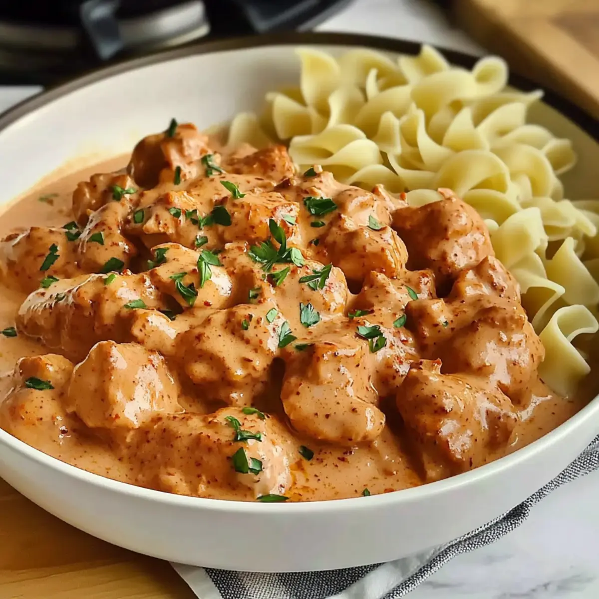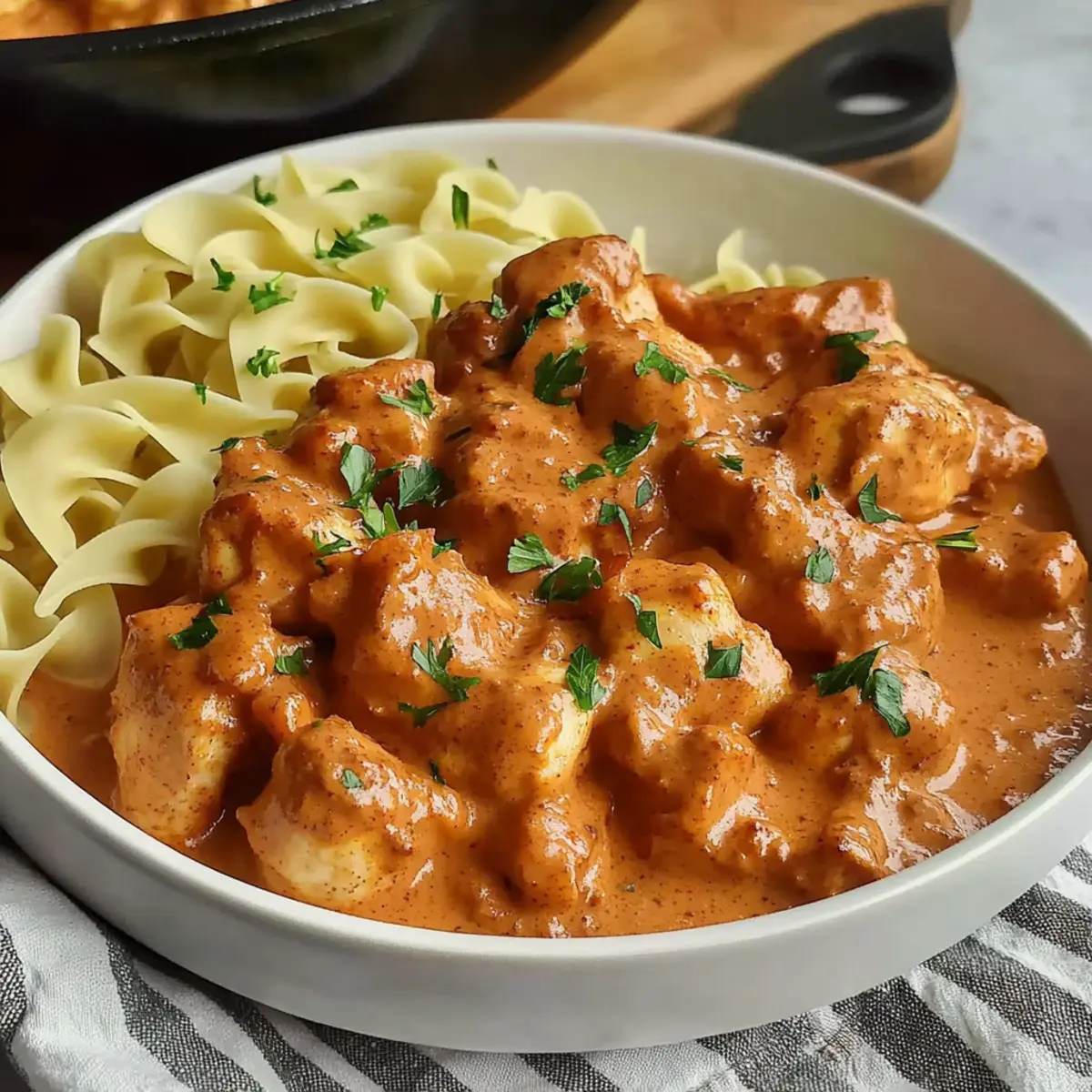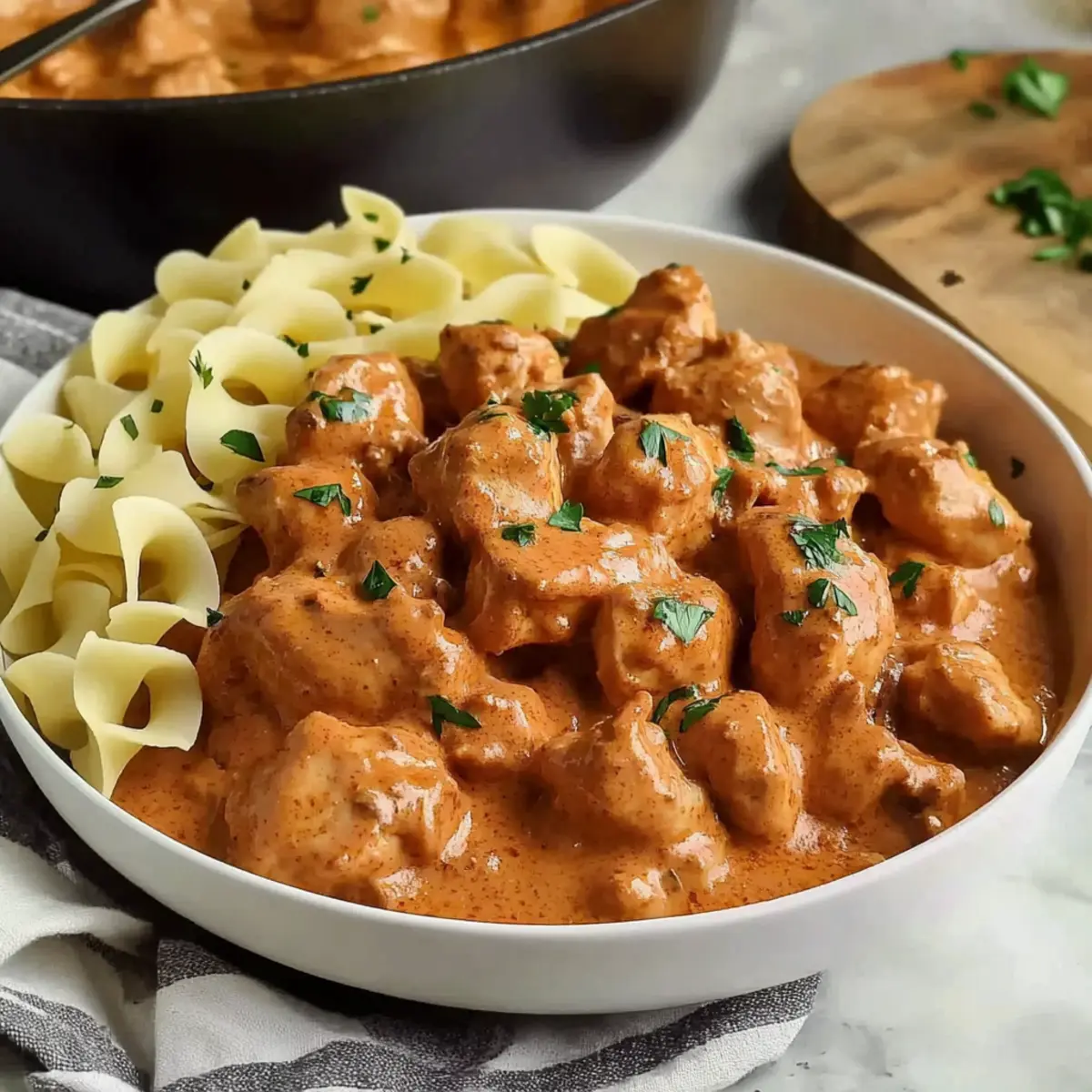 Jump to Recipe Print RecipeAs the aroma of sizzling butter fills the kitchen, it sparks a memory of my grandmother’s joyful laughter—her signature Chicken Paprikash simmering away on the stove. This dish, with its roots in Hungarian tradition, promises to transport you straight to the heart of comfort food heaven. My Easy One-Pot Chicken Paprikash features boneless, skinless chicken cooked to tender perfection in a creamy, paprika-infused sauce that’s incredibly satisfying yet simple to whip up on a busy weeknight. Not only is this dish a crowd-pleaser that will have everyone coming back for more, but it also pairs beautifully with egg noodles, dumplings, or even cozy mashed potatoes. So, are you ready to bring a taste of family warmth and comfort to your table? Let’s dive into this delightful recipe! Why is Chicken Paprikash a Must-Try? Comforting Flavor: This Chicken Paprikash brings the warmth of home cooking right to your plate, with its rich, creamy, and paprika-infused sauce that wraps around tender chicken pieces. Quick & Easy: Perfect for busy weeknights, this one-pot recipe allows you to get a delicious meal on the table without the hassle of extensive clean-up. Versatile Pairing: Serve it over egg noodles, dumplings, or mashed potatoes; this dish is adaptable, ensuring everyone finds their favorite way to enjoy it. Crowd-Pleasing Appeal: Be prepared for compliments when you share this meal with family and friends—it’s a guaranteed hit! Flavorful Tradition: Embrace Hungarian heritage in your kitchen with this dish that not only comforts but offers rich culinary history, making every bite meaningful. Chicken Paprikash Ingredients For the Chicken • Boneless, skinless chicken – This is the primary protein source that keeps the dish lean yet satisfying. For the Sauce • All-purpose flour – Used for dusting the chicken and thickening the creamy sauce. • Sweet paprika – Preferably Hungarian; it provides the authentic flavor that defines Chicken Paprikash. • Butter – Salted or unsalted; it enriches the sauce with a smooth, buttery taste. • Onion – Sweet yellow onion, finely chopped; it adds a sweet depth to the overall flavor. • Garlic – Fresh garlic, minced; it enhances the aromatic flavor blockbuster for comfort food nights. For Cooking • Chicken broth – Opt for low sodium; this creates a flavorful base for your sauce. • Kosher salt – Essential for seasoning; it enhances all the flavors going into the dish. • Black pepper – Fresh ground; it adds a mild heat to balance the richness of the sauce. For Creaminess • Sour cream – Full-fat is preferred for that creamy, tangy finish that makes this dish irresistible. For Garnish • Fresh parsley – Chopped, for a burst of color and freshness that brightens the dish as you serve! Step‑by‑Step Instructions for Easy One-Pot Chicken Paprikash Step 1: Prepare the Chicken In a mixing bowl, toss the boneless, skinless chicken pieces with 1.5 tablespoons of all-purpose flour and 1 tablespoon of sweet paprika. Ensure the chicken is evenly coated to enhance flavor and create a nice crust during cooking. This preparation sets the stage for a flavor-packed Chicken Paprikash. Step 2: Sauté the Chicken Melt 2 tablespoons of butter in a skillet over medium heat. Once the butter is bubbling, add the coated chicken pieces in a single layer. Sear them for about 6-7 minutes, turning halfway through until they turn golden brown. Remove the chicken from the skillet and set it aside, keeping the flavorful drippings for the sauce. Step 3: Sauté the Onions Using the same skillet, add the chopped sweet onion and sauté over medium heat for about 5 minutes, stirring frequently, until they become soft and translucent. This step builds an aromatic foundation for your Chicken Paprikash, filling your kitchen with a delightful fragrance. Step 4: Add Garlic Reduce the heat slightly and stir in the minced garlic, cooking for an additional 1 minute. Watch closely as you want the garlic to become fragrant and slightly golden, ensuring it doesn’t burn. This will add an extra layer of flavor to your comforting dish. Step 5: Create the Base Sprinkle the remaining flour (1 tablespoon) and 1 tablespoon of paprika into the skillet. Cook this mixture for about 2 minutes, stirring constantly to combine. This step helps to thicken the sauce and enhances the deep paprika flavors, which are essential in a traditional Chicken Paprikash. Step 6: Whisk in the Broth Gradually whisk in 2 cups of low-sodium chicken broth until well combined. Increase the heat slightly and bring the mixture to a gentle simmer, allowing it to thicken for about 5 minutes. You’ll know it’s ready when the sauce has a smooth consistency, perfect for enveloping the chicken. Step 7: Add the Cream Stir in the full-fat sour cream until fully incorporated, creating a rich and creamy texture. Carefully reintroduce the browned chicken along with any accumulated juices back to the skillet. Heat gently for about 3-4 minutes, ensuring the chicken is heated through without boiling, preserving the creaminess of your Chicken Paprikash. Step 8: Garnish and Serve Finish your Chicken Paprikash by garnishing with freshly chopped parsley. Serve hot over a bed of egg noodles, dumplings, or cozy mashed potatoes for a satisfying meal. The vibrant colors and delightful aroma make this dish a comforting centerpiece for any gathering or family dinner. Storage Tips for Chicken Paprikash Refrigerator: Store leftover Chicken Paprikash in an airtight container in the fridge for up to 3 days. This helps keep the flavors vibrant while maintaining texture. Reheating: When reheating, do so gently on the stove over low heat, stirring occasionally to ensure the creamy sauce doesn’t separate. Add a splash of chicken broth if needed. Freezer: Freezing is not recommended for Chicken Paprikash due to the dairy in the sour cream, which may separate and alter the texture upon thawing. Ser