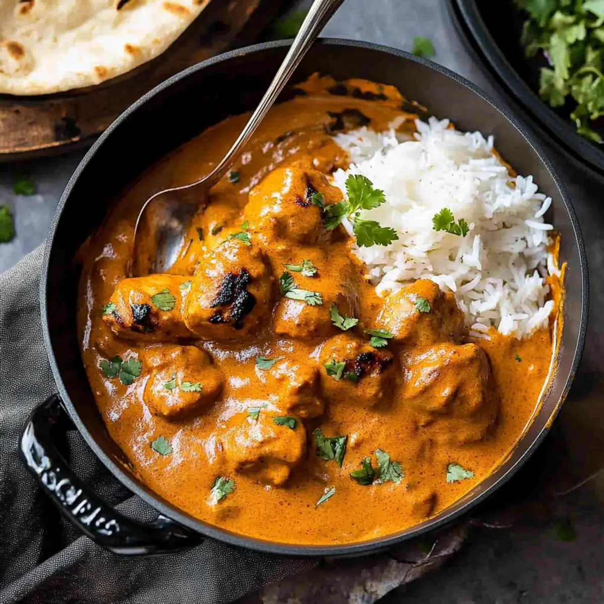 • Warm Naan Bread: Soft and slightly chewy, naan is perfect for scooping up the sauce, adding texture and a comforting element to your meal.
