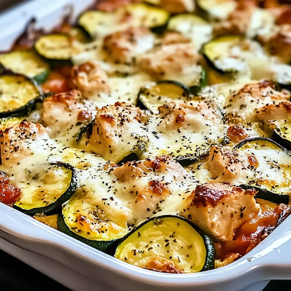 Jump to Recipe Print RecipeThere’s something so satisfying about the aroma of a meal bubbling away in the oven. My Chicken Zucchini Bake is one of those dishes that never fails to remind me of cozy nights spent with family, gathered around a hearty dinner. With tender chicken and garden-fresh zucchini cloaked in melted cheese, this recipe is a true comfort food that can save busy weeknights. What I love most about this Chicken Zucchini Bake is how incredibly easy it is to prepare, making it a fantastic option for meal prepping while also being a delicious centerpiece for any family gathering. Plus, it’s easily customizable—you can tweak the ingredients based on what you have on hand or add your favorite spices! So, are you ready to bring some warmth into your kitchen? Let’s dive into this irresistible dish! Why Will You Love This Bake? Comforting flavors are wrapped in every bite, making this Chicken Zucchini Bake the ultimate cozy dinner. Customizable to fit your tastes, simply swap in your favorite vegetables or cheese. Time-saving preparation means you can set it and forget it while it bakes to perfection. Perfectly balanced with protein and veggies, this dish is both nutritious and satisfying—ideal for meal prep or a family feast. If you love dishes like my Cheesy Garlic Chicken or want something lighter like Oven Baked Chicken, you’ll be delighted by this comforting meal! Chicken Zucchini Bake Ingredients Gather these simple yet flavorful components to create a delightful Chicken Zucchini Bake that your family will adore. For the Chicken • Boneless Skinless Chicken Breasts – the main protein source; tender and juicy when baked. • Olive Oil – ensures moisture and helps in cooking; can be replaced with melted butter if preferred. For the Zucchini • Zucchini – adds bulk and freshness to the dish; feel free to substitute with bell peppers or spinach for a twist. For Flavoring • Garlic Powder – delivers a depth of flavor; fresh minced garlic can be swapped for a more intense taste. • Italian Seasoning – enhances the dish’s flavor profile; customize with your favorite herbs if desired. For the Cheesy Topping • Shredded Cheese (e.g., mozzarella) – adds creaminess and richness; consider using a blend of cheeses for more diverse flavors. This Chicken Zucchini Bake combines delightful ingredients that work harmoniously together, creating a dish that’s comforting and satisfying. Step‑by‑Step Instructions for Chicken Zucchini Bake Step 1: Preheat the Oven Begin by preheating your oven to 400°F (200°C). While the oven heats up, grab a 9×13 inch baking dish and spray it lightly with nonstick cooking spray to ensure easy clean-up after baking. Step 2: Season the Chicken Take your boneless skinless chicken breasts and season them generously with salt, pepper, and half of the Italian seasoning. Ensure the spices coat the chicken evenly for a flavorful Chicken Zucchini Bake. This will help the chicken remain juicy and savory during the baking process. Step 3: Slice the Zucchini Next, wash and slice the zucchini into half-inch thick rounds. This thickness is key for even cooking. Set them aside, and enjoy the vibrant green color they add to your dish, as they’ll provide a lovely contrast to the chicken. Step 4: Assemble the Ingredients Now, lay the seasoned chicken breasts in the bottom of the prepared baking dish. Surround the chicken with the zucchini rounds, arranging them creatively for even coverage. Drizzle olive oil over everything, ensuring a touch of moisture that will help the vegetables cook beautifully. Step 5: Add the Seasonings Sprinkle the garlic powder and the remaining Italian seasoning over the chicken and zucchini. This step will infuse the dish with aromatic flavors, making each bite of the Chicken Zucchini Bake a comforting treat. Make sure to distribute the seasonings evenly for the best results. Step 6: Top with Cheese Finally, generously sprinkle the shredded cheese over the top of the chicken and zucchini mixture. As this bakes, the cheese will melt and create a beautiful golden crust. This gooey topping is what makes the Chicken Zucchini Bake so comforting and delicious. Step 7: Bake to Perfection Place your assembled dish in the preheated oven. Bake for 30 to 35 minutes, or until the chicken reaches an internal temperature of 165°F (75°C) and the top is bubbly and golden brown. You’ll know it’s done when the cheese is beautifully melted and the zucchini is tender. Step 8: Let it Rest Once out of the oven, allow the Chicken Zucchini Bake to rest for about 5 minutes before slicing into it. This brief resting period helps the juices redistribute in the chicken, keeping it moist and flavorful. Your comforting meal is now ready to be enjoyed! What to Serve with Chicken Zucchini Bake Savoring a plate of Chicken Zucchini Bake is wonderful alone, but why not elevate your meal with delightful sides that enhance your culinary experience? Garlic Bread: A crispy, buttery accompaniment that soaks up the delicious juices, enhancing the wholesome flavors of the bake. Fresh Green Salad: A vibrant mix of greens with a light dressing adds a refreshing crunch that nicely balances the baked dish. Steamed Rice: Fluffy rice serves as a neutral base that absorbs any extra sauce, making each bite comforting and satisfying. Roasted Vegetables: Seasonal veggies like carrots and bell peppers can add a lovely smokiness that complements the zucchini perfectly. Creamy Mashed Potatoes: These soft spuds provide a rich, creamy texture that pairs beautifully with the Chicken Zucchini Bake’s savory notes. Herbed Quinoa: Nutty quinoa provides a protein-packed side with a hint of freshness from herbs, making it an excellent nutritious addition. Coleslaw: A tangy slaw introduces a crisp and zesty element, creating a delightful contrast to the tender chicken and cheese. Chilled White Wine: A glass of chilled Sauvignon Blanc or Chardonnay can enhance the mea