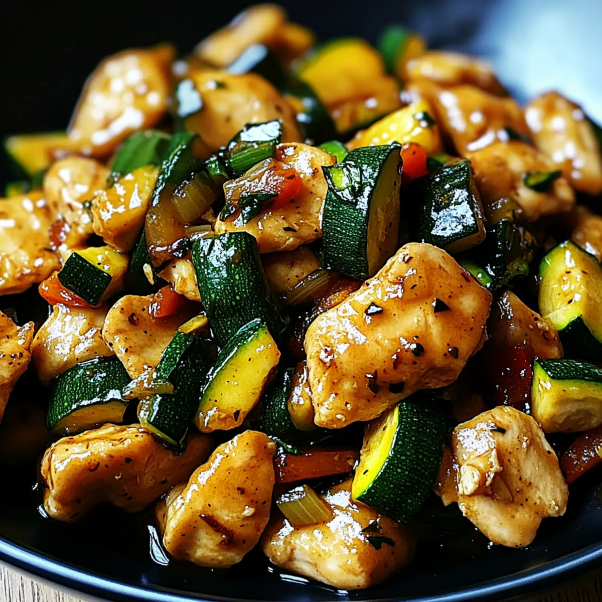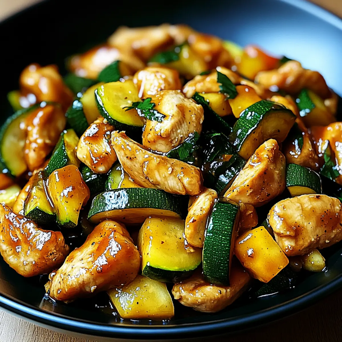 Jump to Recipe Print RecipeThe sizzling sound of chicken hitting a hot pan transports me right back to my cozy kitchen, where quick and healthy meals reign supreme. One of my go-to recipes is this Chicken Zucchini Stir Fry, packed with vibrant colors and satisfying textures. In just 30 minutes, you can whip up this delightful dish that’s not only low in carbs but also gluten-free, making it perfect for those of us with dietary preferences. This recipe is wonderfully adaptable, so whether you’re in the mood for chicken, shrimp, beef, or tofu, it allows for culinary creativity without compromising on taste. Plus, the fresh zucchini offers a lightness that complements the savory garlic-soy sauce beautifully. Are you ready to get cooking and impress your taste buds? Why is This Stir Fry a Must-Try? Quick and Easy: In just 30 minutes, you can have this delicious meal on the table, making it ideal for busy weeknights. Customizable Options: Choose your protein—chicken, shrimp, beef, or tofu—to suit your cravings, and swap in other veggies to keep things fresh. Healthy and Guilt-Free: With its low-carb and gluten-free profile, this stir fry is a nutritious choice that doesn’t skimp on flavor, unlike fast food. Flavor Explosion: The savory garlic-soy sauce mingles beautifully with tender chicken and crisp zucchini, ensuring every bite is a taste sensation. Crowd-Pleaser: This dish is perfect for family dinners or impressing friends; everyone will love its enticing aroma and bright colors! For more quick and tasty options, check out my Cheesy Garlic Chicken or Garlic Chicken Thighs. Chicken Zucchini Stir Fry Ingredients • Get ready to create a quick, healthy meal! For the Stir Fry Boneless, Skinless Chicken Breast (or Thighs) – Essential for a protein-packed dish; you can substitute with shrimp, beef, or tofu for different flavors. Zucchini – Adds moisture and a mild flavor; be sure to slice into half-moons for even cooking. Red Bell Pepper (optional) – Introduces sweetness and vibrant color; feel free to add other veggies like carrots or snap peas for variety. Garlic – Enhances depth of flavor; mince it to maximize its aromatic qualities. For the Sauces Soy Sauce (or Tamari) – Delivers umami and saltiness; swap with tamari for a gluten-free version. Oyster Sauce (optional) – Provides richness; if you don’t have it, increase soy sauce or use hoisin instead. Honey (or Brown Sugar) – Balances flavors with sweetness; substitute maple syrup for a vegan option. Sesame Oil – Adds authentic flavor and aroma; use sparingly, as it can be overwhelming. Vegetable Oil – Great for stir-frying due to its high smoke point; sesame oil can also be used for extra flavor. For Seasoning and Garnish Salt and Pepper – Key for enhancing overall taste. Sesame Seeds and Green Onions – These make for the perfect garnish, adding an appealing crunch and fresh touch. Now you’re all set with these vibrant ingredients to whip up a delicious Chicken Zucchini Stir Fry that’s both quick and fulfilling! Step‑by‑Step Instructions for Chicken Zucchini Stir Fry Step 1: Prep Ingredients Begin by slicing the boneless, skinless chicken breast into thin strips and your zucchini into half-moons for even cooking. Mince the garlic finely to release its full flavor. In a small bowl, whisk together soy sauce, oyster sauce, honey, and sesame oil, creating a harmonious sauce that will elevate your Chicken Zucchini Stir Fry. Step 2: Cook Chicken Heat 1 tablespoon of vegetable oil in a large skillet or wok over medium-high heat until shimmering. Add the sliced chicken to the pan, ensuring not to overcrowd for the best sear. Season with a pinch of salt and pepper, cooking for about 5–6 minutes, or until the chicken is golden brown and fully cooked through. Remove from the skillet and set aside. Step 3: Cook Vegetables In the same skillet, add another tablespoon of oil and increase the heat if necessary. Add the zucchini and optional red bell pepper, sautéing for 3–4 minutes until they are just tender but still crisp. Then, toss in the minced garlic, cooking for an additional 30 seconds until fragrant, as this step builds the flavor profile of your Chicken Zucchini Stir Fry. Step 4: Combine and Sauce Return the cooked chicken to the skillet with the sautéed vegetables. Pour in the sauce mixture you’ve prepared earlier, tossing everything together to coat evenly. Cook for 1–2 minutes, allowing the mixture to heat through and the sauce to thicken slightly, ensuring that every bite of your Chicken Zucchini Stir Fry is bursting with flavor. Step 5: Serve Remove from heat and garnish your Chicken Zucchini Stir Fry with a sprinkle of sesame seeds and chopped green onions for an extra crunch and freshness. Serve it hot over jasmine rice, brown rice, or enjoy it on its own for a delightful low-carb meal. Storage Tips for Chicken Zucchini Stir Fry Fridge: Store leftovers in an airtight container for up to 4 days. This ensures your Chicken Zucchini Stir Fry remains fresh and delicious, ready for easy reheating. Freezer: For longer storage, freeze portions without zucchini for up to 2 months to maintain quality. Just remember to place them in freezer-safe containers or bags. Reheating: When ready to enjoy, reheat in a skillet over medium heat or in the microwave until heated through. If frozen, thaw in the fridge overnight before reheating. Airtight Containers: Always use airtight containers to prevent moisture and maintain the flavors of your Chicken Zucchini Stir Fry. What to Serve with Chicken Zucchini Stir Fry Elevate your dining experience by pairing this delicious stir fry with complementary sides that enhance its vibrant flavors and textures. Jasmine Rice: The fluffy grains soak up the savory sauce beautifully, creating a comforting base for your dish. Cauliflower Rice: A low-carb alternative that adds a light, fresh element to the dish while keeping it health-conscious and gluten-free. Steamed Brocc