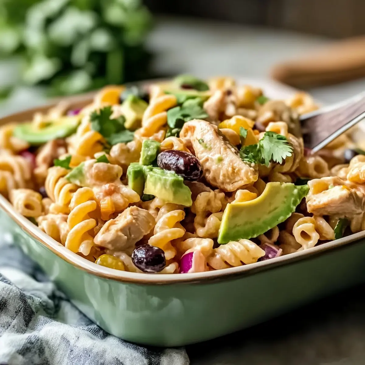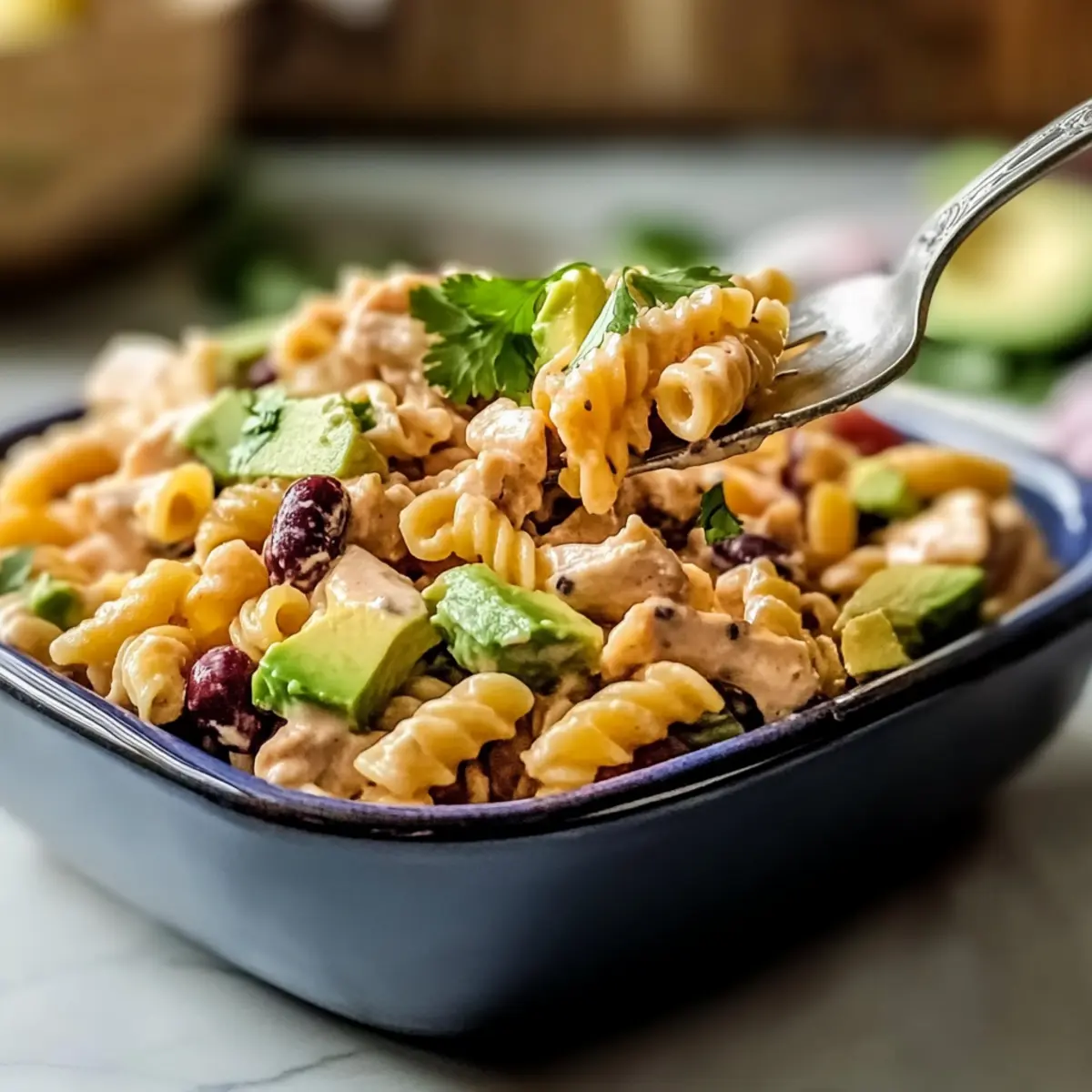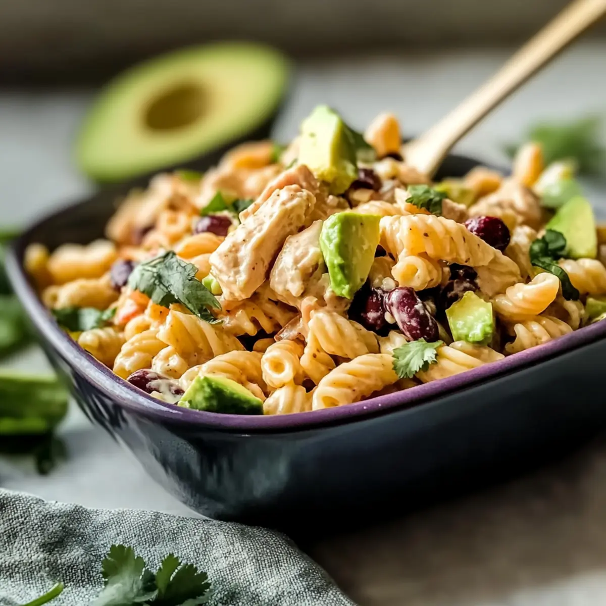 Avocado Tip: To prevent browning, consider leaving the avocado out until just before serving; add it fresh to maintain its creamy goodness in your Chipotle Chicken Pasta Salad.