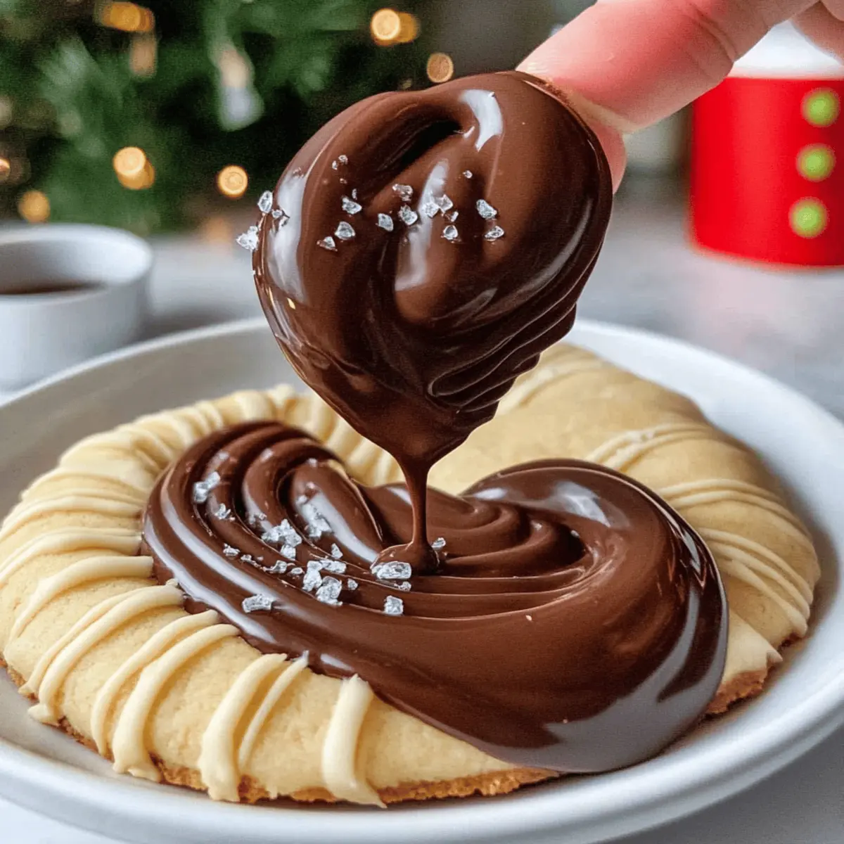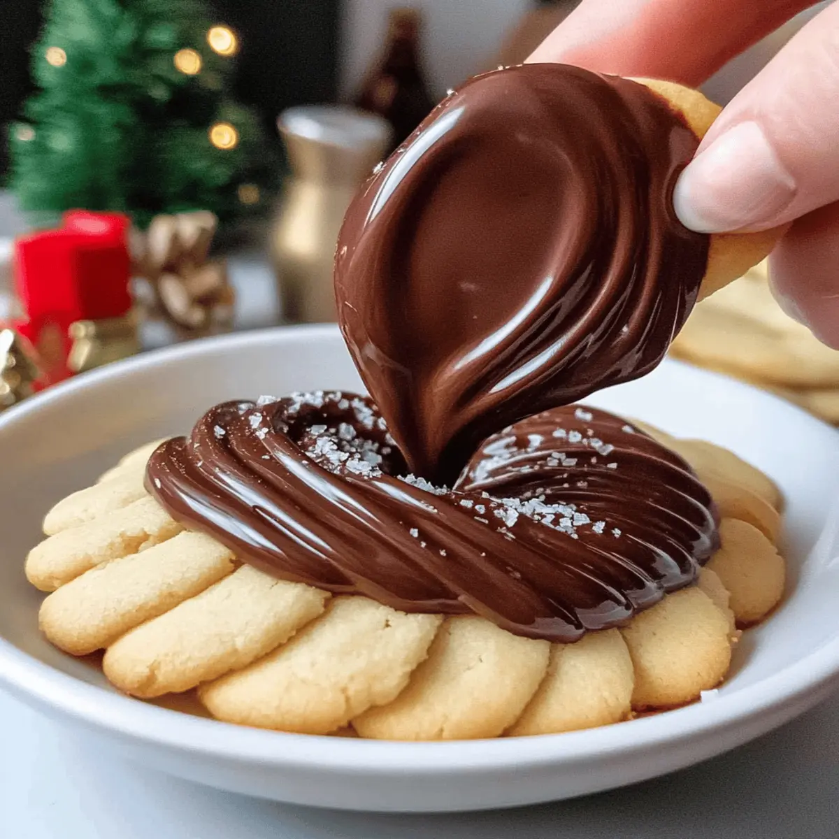 Jump to Recipe Print RecipeAs I stood in my kitchen, the delightful aroma of melted chocolate and buttery goodness filled the air, instantly transporting me to a cozy holiday gathering. That’s the magic of these festive Chocolate Dipped Butter Cookies. Tender and melt-in-your-mouth delicious, they’re infused with a hint of almond to keep things interesting. Not only are these cookies a crowd-pleaser, but the fun of piping the dough means you can unleash your inner artist while baking. Imagine the joy of presenting these homemade treats at your next gathering—perfect alongside a warm cup of coffee or tea. Ready to create some delightful memories in the kitchen? Let’s dive into the recipe! Why Are These Cookies Irresistible? Tender and Buttery: Each bite of these Chocolate Dipped Butter Cookies is pure bliss, combining a melt-in-your-mouth texture with rich, buttery flavor. Interactive Baking Fun: The process of piping the dough adds a creative twist, making this a delightful baking experience for both beginners and seasoned chefs alike. Crowd-Pleasing Treat: Perfect for holiday gatherings or casual get-togethers, these cookies will undoubtedly impress family and friends. Pair them with your favorite hot beverage for an extra touch! Versatile Variations: Add your own flair by experimenting with different extracts or chocolate types. Were you thinking of something unique like a hazelnut twist? It’s all possible! Quick and Easy: This simple recipe allows you to whip up a batch in no time—ideal for those busy days when you crave something homemade but don’t want to spend hours in the kitchen. Pair these delicious cookies with Garlic Butter Shrimp or end your meal with a slice of Dark Chocolate Raspberry for a truly heavenly experience! Chocolate Dipped Butter Cookies Ingredients For the Cookie Dough • Unsalted Butter – Adds richness; ensure it’s at room temperature for easy blending. • Granulated Sugar – Sweetens the dough and helps create a tender texture. • Vanilla Extract or Vanilla Bean Paste – Boosts the flavor; feel free to use premium extracts for best results. • Almond Extract – Introduces a delightful hint of nuttiness; substitute with extra vanilla if desired. • Large Egg – Binds the ingredients; it also helps with leavening for a light cookie. • All-Purpose Flour – Provides structure; make sure to fluff and measure correctly to avoid density. • Fine Salt – Balances sweetness and enhances the cookie flavor. For the Chocolate Coating • Chocolate Chips (milk, semi-sweet, or dark) – Dipping chocolate that gives a rich, sweet finish; use your favorite type! • Vegetable or Canola Oil – Mixed with melted chocolate for smoother consistency when dipping. For the Garnish • Flaky Sea Salt – A sprinkle adds flavor contrast and gourmet appeal. • Nonpareil Sprinkles – Optional for a festive touch; brightens up the cookies visually. These ingredients come together beautifully to create delightful Chocolate Dipped Butter Cookies that will make your kitchen smell heavenly! Step‑by‑Step Instructions for Chocolate Dipped Butter Cookies Step 1: Prepare Your Workspace Clear out enough space in your refrigerator or freezer to store your baking sheets later. Preheat your oven to 350°F (175°C) so it’s ready for baking. Gather all your equipment, including mixing bowls, a piping bag fitted with a closed star tip, and parchment paper or silicone mats for lining your baking sheets. Step 2: Line the Baking Sheets Take your parchment paper or silicone mats and line your baking sheets, ensuring they cover the entire surface. This will prevent the cookies from sticking and make for an easier cleanup. Set these lined sheets aside for now as you move on to mixing the cookie dough for your delightful Chocolate Dipped Butter Cookies. Step 3: Cream the Butter and Sugar In a mixing bowl, combine room temperature unsalted butter and granulated sugar. Using an electric mixer, beat on medium speed until the mixture is light and fluffy, about 3-4 minutes. Look for a pale yellow color and a creamy texture; this step is crucial for ensuring tender cookies that melt in your mouth. Step 4: Add Flavoring Ingredients Once your butter and sugar are well creamed, add in the large egg, vanilla extract, and almond extract. Continue mixing until all the ingredients are fully combined, which should take about another minute. This will create the base flavor that enhances your Chocolate Dipped Butter Cookies, making them irresistible. Step 5: Incorporate the Dry Ingredients Gradually add in the all-purpose flour and fine salt to your wet mixture. Start mixing on low speed to avoid a flour cloud, then increase to medium speed until the dough is fully combined and smooth, which will take about 1-2 minutes. Make sure the dough is slightly thick but still pipeable for the next steps. Step 6: Adjust Dough Consistency To check the consistency of your dough, pipe a small swirl on a plate. If it holds its shape and isn’t too thick, you’re good to go! If it appears crumbly, mix in a teaspoon of milk or water until it reaches the ideal texture. This adjustment ensures your cookie dough is perfect for piping. Step 7: Pipe the Cookies Fill your piping bag with the cookie dough, then pipe swirls onto the lined baking sheets, spaced about 2 inches apart. Aim for uniform sizes to ensure even baking. Once piped, place the sheets in the fridge for 30 minutes or in the freezer for 15 minutes. This chilling step helps the cookies retain their shape while baking. Step 8: Bake the Cookies When the time is up, transfer the chilled baking sheets to your preheated oven, and bake the cookies for 14-17 minutes. Keep an eye on them; they are ready when the edges turn a light golden brown. The center may still appear soft, but don’t worry, they will firm up as they cool. Step 9: Cool the Cookies After baking, let the cookies cool on the baking sheets for 10 minutes. This will allow them to