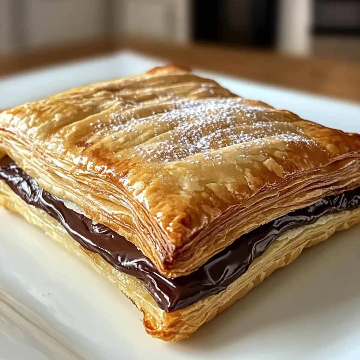 Jump to Recipe Print RecipeAs I stood in my kitchen, the enticing aroma of chocolate wafted through the air, pulling me back to bustling Italian cafes where each bite of pastry felt like a little celebration. My Easy 3-Ingredient Chocolate Puff Pastries are a delightful way to recreate that experience right at home—and the best part? They come together in just 25 minutes with minimal fuss. Perfect as a quick dessert or a luxurious breakfast treat, these pastries are not only easy on the eyes but also a crowd-pleaser you can whip up with just three simple ingredients. Imagine surprising your loved ones with these flaky delights, their interiors oozing rich chocolate goodness! Are you ready to elevate your snack game and indulge your sweet tooth? Why You’ll Crave This Chocolate Puff Pastry? Simplicity at Its Finest: This recipe demands just three ingredients, making it perfect for busy days when you crave something sweet without too much hassle. Delectable Variety: Feel free to switch up the chocolate type—dark, milk, or even white chocolate works wonders! Crowd-Pleasing Appeal: Perfect for any occasion, these pastries are sure to impress family and friends—you might want to make a double batch! Quick Satisfaction: With a total prep and cook time of just 25 minutes, your delicious treat will be ready in no time. Beautiful Presentation: Dusting with powdered sugar not only adds sweetness but also gives these pastries an elegant touch. For a richer dessert experience, try pairing them with a scoop of vanilla ice cream or enjoy alongside a steaming cup of coffee. You’ll find that these Easy 3-Ingredient Chocolate Puff Pastries are as enjoyable to make as they are to eat! Chocolate Puff Pastry Ingredients For the Pastry • Frozen Puff Pastry – This is the key to achieving that light and flaky texture; choose a high-quality brand for best results. • Chocolate Chips – The filling that brings sweetness and depth; dark chocolate is recommended, but feel free to use milk or white chocolate as desired. For the Garnish • Powdered Sugar – This sweet dusting adds a lovely finishing touch and elevates your Chocolate Puff Pastry’s presentation. Step‑by‑Step Instructions for Easy 3-Ingredient Chocolate Puff Pastries Step 1: Thaw the Puff Pastry Start by removing the frozen puff pastry from the freezer and allowing it to thaw at room temperature for about 30 minutes. This step is crucial as it makes the pastry pliable and easier to work with. While the pastry is softening, gather your ingredients and equipment, including a rolling pin and a baking sheet lined with parchment paper for easy cleanup. Step 2: Preheat the Oven While the pastry thaws, preheat your oven to 400ºF (200ºC). A fully preheated oven is vital for achieving beautifully puffed pastries with that golden-brown finish. As the temperature rises, line a baking sheet with parchment paper, making it ready for the puff pastries once they are shaped. Step 3: Cut the Pastry Once your puff pastry is thawed, transfer it onto a lightly floured surface. Using a sharp knife or pizza cutter, carefully cut the dough into 6 rectangles, approximately 3×5 inches in size. These rectangles will serve as the foundation for your Chocolate Puff Pastries, providing ample space for the rich chocolate filling. Step 4: Add the Chocolate Chips Sprinkle half of the chocolate chips onto each rectangle, making sure to leave a small border around the edges. This border is essential as it will help seal the pastries once rolled. As you layer in the chocolate, envision the rich melty center that awaits inside each pastry, ready to delight your taste buds. Step 5: Roll the Pastries Gently roll each rectangle around the chocolate filling, ensuring that the chocolate is enclosed well inside. Pinch the seams firmly to seal them, preventing any chocolate from leaking during baking. This step is key for your Easy 3-Ingredient Chocolate Puff Pastries to maintain their delightful shape and keep all that sweet goodness contained. Step 6: Bake the Pastries Carefully place the rolled pastries on your prepared baking sheet, ensuring they have a little space between them to expand. Bake in your preheated oven for approximately 20 minutes, or until the pastries are puffed and golden brown. Keep an eye on them in the last few minutes, as you want that perfect crispy exterior. Step 7: Cool and Dust Once baked, remove the pastries from the oven and allow them to cool slightly on the baking sheet for about 5 minutes. This cooling step helps the chocolate filling set a bit. After cooling, dust the tops of your Chocolate Puff Pastries with powdered sugar, adding a sweet and elegant touch that makes them irresistible. What to Serve with Easy 3-Ingredient Chocolate Puff Pastries? A delightful dessert deserves accompaniments that elevate its charm and flavor while creating a well-rounded experience. Rich Vanilla Ice Cream: The creamy sweetness of vanilla ice cream contrasts beautifully with the warm, gooey chocolate center, creating a heavenly duo. Fresh Berries: Juicy strawberries or tart raspberries add a burst of freshness, balancing the rich flavors of the pastries while offering a lovely pop of color. Steaming Coffee: A cup of rich, dark coffee can cut through the sweetness, making it the perfect partner for savoring these delightful pastries at breakfast or brunch. Whipped Cream: Light and airy, whipped cream adds a smooth texture that enhances the overall indulgence of the chocolate puff pastry. Chocolate Sauce Drizzle: A drizzle of warm chocolate sauce brings an extra layer of decadence, perfect for true chocolate lovers who want to intensify their experience. Mint Tea: The refreshing touch of mint tea creates a wonderful palate cleanser, enhancing the rich flavors without overwhelming your senses. Almond Croissants: For a breakfast spread, pair it with almond croissants for a delightful pastry lineup that feels luxurious yet comforting. By choosing any of th