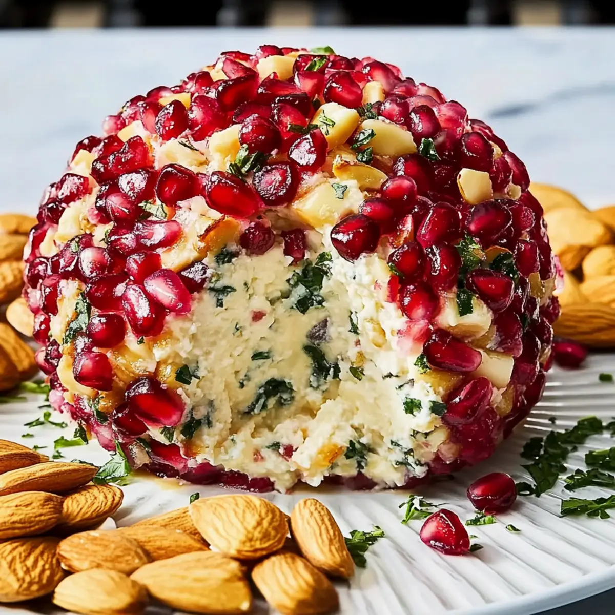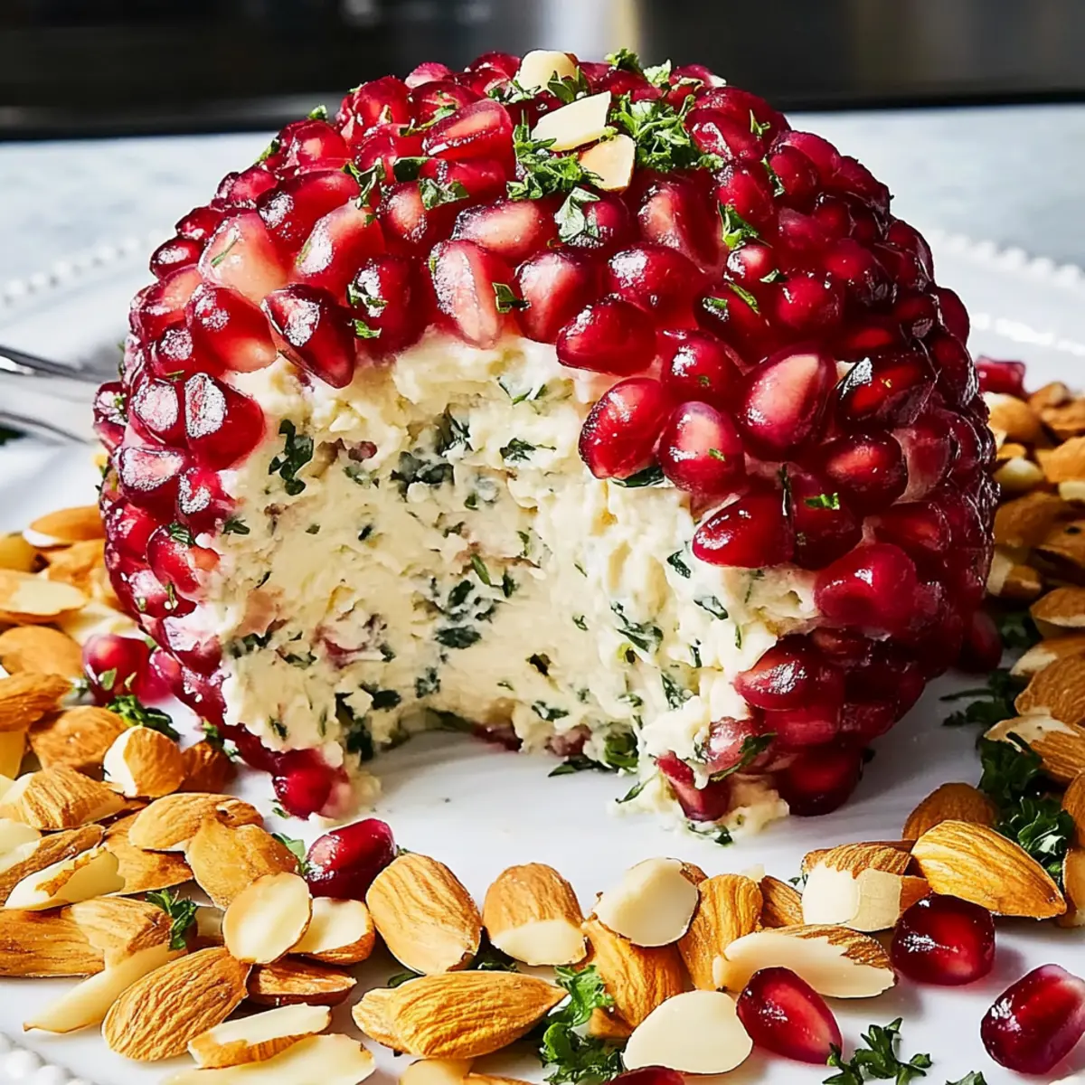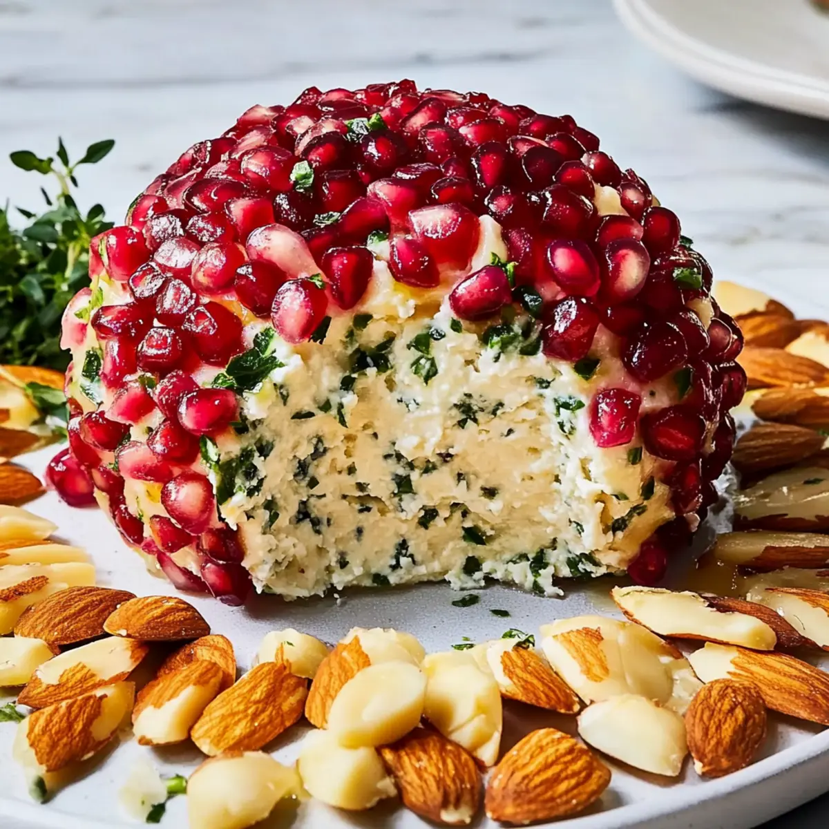 This Christmas Cheese Ball blends creamy cheeses with vibrant pomegranate for a stunning appetizer perfect for holiday gatherings.
