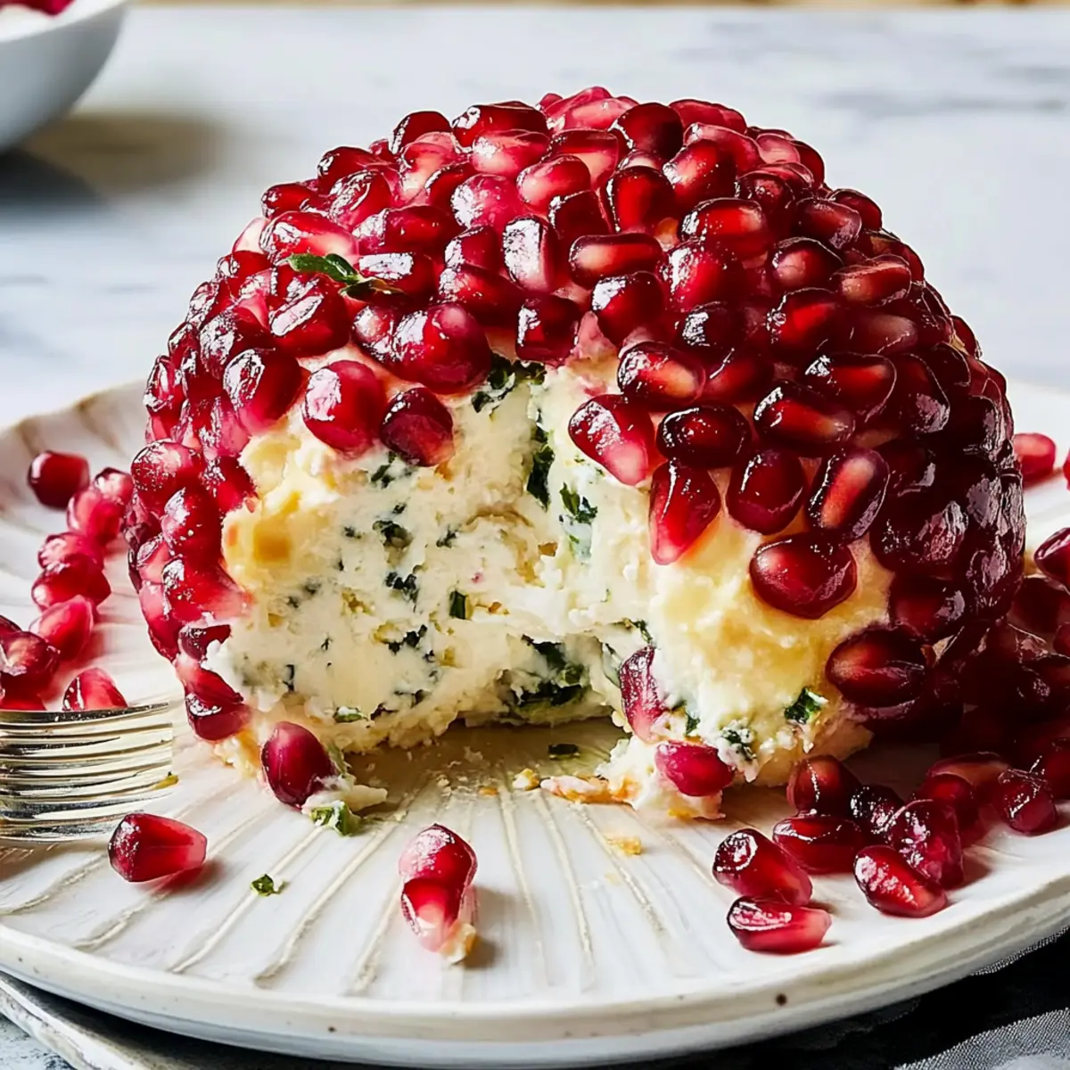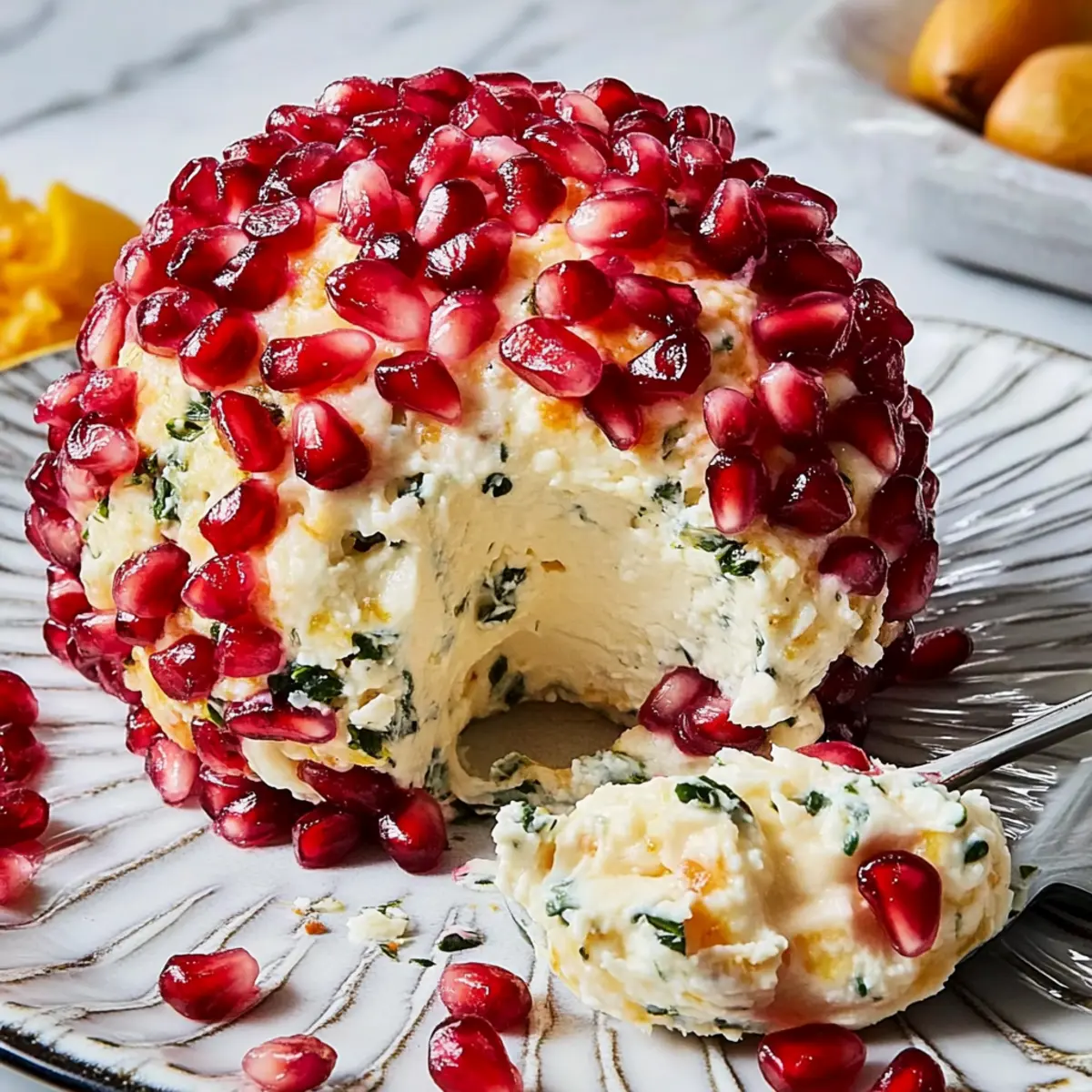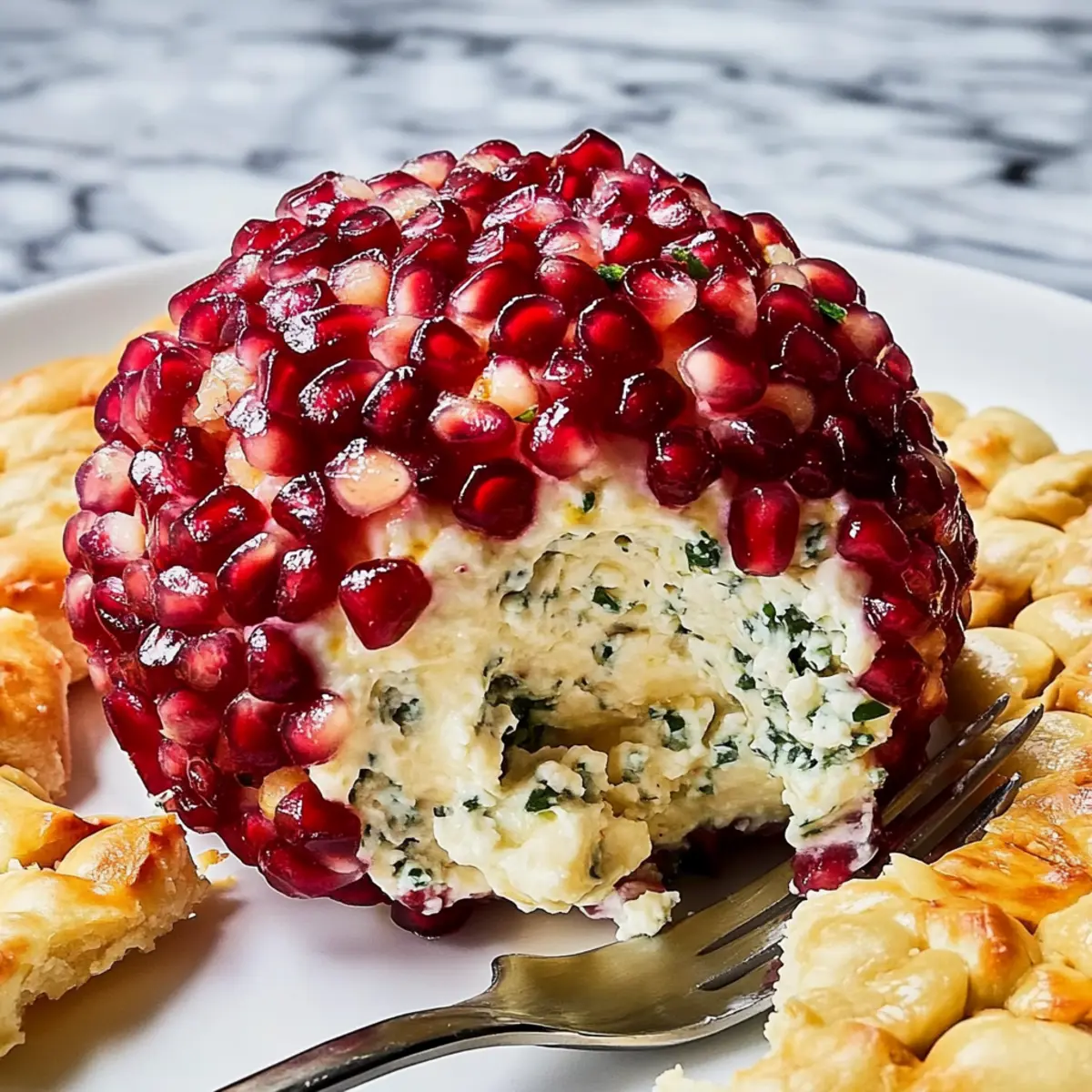 Jump to Recipe Print RecipeAs the holiday season approaches, I find myself reminiscing about the joyous gatherings filled with laughter and the irresistible aroma of home-cooked delights. One standout appetizer that steals the show every time is the Christmas Cheese Ball. This festive beauty, adorned with vibrant pomegranate arils, not only looks stunning on the table but is also incredibly easy to make! With just a few simple steps, you’ll impress your family and friends while providing a gluten-free option if you choose the right crackers. Whether you’re hosting a holiday party or bringing a dish to share, this creamy cheese ball is sure to be a crowd-pleaser. Who knew something so delightful could be put together so effortlessly? Ready to learn how to craft this eye-catching appetizer that embodies the spirit of the season? Let’s dive in! Why is this cheese ball a must-try? Irresistible Appeal: This festive cheese ball is not only a feast for the eyes but also for the taste buds, combining creamy cheeses and crunchy almonds with the sweet tang of pomegranate. Quick & Easy: With just a few simple mixing and shaping steps, you can create an impressive appetizer without spending hours in the kitchen. Customizable: Feel free to swap ingredients! Experiment with herbs or cheeses to suit your preference or dietary needs. Consider adding flavors from my Baked Mac Cheese or even try similar texture-rich options with my Fried Ham Cheese. Perfect for Any Occasion: This cheese ball makes an ideal centerpiece for holiday gatherings or cozy get-togethers, ensuring you create a memorable feast that everyone will rave about. Gluten-Free Option: By selecting gluten-free crackers, you can cater to all your guests’ dietary needs, making this recipe a friendly choice for gatherings. Christmas Cheese Ball Ingredients • Ready to create a stunning centerpiece for your holiday gathering? Here’s what you need! For the Cheese Mixture 8-oz. block cream cheese, softened – Ensures a creamy base; let it sit at room temperature for easier mixing. 6 oz. goat cheese – Adds a delightful tangy flavor and creamy texture. 1 cup shredded Gruyère (or sharp white cheddar) – Gives depth to the flavor; mozzarella can be a milder substitute. For the Coating 1/2 cup sliced, toasted almonds – Provides a satisfying crunch; feel free to swap with walnuts or pecans. 1 cup pomegranate arils – Offers a decorative touch and a tangy burst of flavor; fresh arils are best for this Christmas cheese ball. For Seasoning 2 Tbsp. chopped fresh parsley – Brightens the dish with freshness and color. 1 Tbsp. chopped fresh thyme – Delivers aromatic earthiness; dried thyme works too if fresh isn’t available. Kosher salt – Enhances overall flavor. Freshly ground black pepper – Adds a hint of mild heat. For Serving Crackers, for serving – Choose an assortment for various textures; ensure gluten-free options are available for a wider audience. Step‑by‑Step Instructions for Christmas Cheese Ball Step 1: Combine Cheeses In a medium mixing bowl, use an electric mixer on medium speed to beat the softened cream cheese and goat cheese together until smooth and creamy, about 2-3 minutes. Ensure there are no lumps for the best texture in your Christmas Cheese Ball. This creamy base will allow the flavors to meld beautifully. Step 2: Add Gruyère Gradually add the shredded Gruyère cheese to the cream mixture, stirring on low speed until combined. Mix for another 1-2 minutes until the cheeses are fully incorporated. The cheese blend should be thick and creamy, providing a rich and savory backdrop for your cheese ball. Step 3: Flavoring Next, gently fold in the toasted almonds, chopped parsley, thyme, kosher salt, and freshly ground black pepper using a spatula. Make sure everything is evenly distributed throughout the mixture, enhancing the flavor profile of your Christmas Cheese Ball. This step adds delightful crunch and aromatic freshness. Step 4: Form Cheese Ball With clean hands, scoop the cheese mixture and shape it into a ball. Once formed, roll the cheese ball in the pomegranate arils until it is evenly coated, pressing lightly so they stick. The vibrant red of the pomegranate arils will give your cheese ball a festive appearance, making it a centerpiece for holiday gatherings. Step 5: Chill Place the coated cheese ball on a plate and refrigerate for at least 15 minutes. Chilling helps the flavors meld and firm up the cheese ball, allowing for easier slicing and serving. Watch for a slight firmness to the touch, indicating it’s ready. Step 6: Serve Arrange your beautifully chilled Christmas Cheese Ball on a platter with an assortment of crackers, offering a variety for guests to enjoy. Ensure some gluten-free crackers are available for all dietary needs. This appetizer not only looks stunning on your table but promises to be a crowd-pleaser at your festive gatherings. Christmas Cheese Ball Variations Feel free to unleash your creativity and customize this cheese ball to match your palate! Nut-Free: Substitute almonds with sunflower seeds for a delightful crunch that keeps it allergy-friendly. Vegan Option: Use vegan cream cheese and nutritional yeast for a cheesy flavor without dairy. Pair with gluten-free crackers for a complete treat! Herb Infusion: Incorporate different fresh herbs like chives or dill to change the flavor profile, adding a refreshing twist to your cheese ball. Spicy Kick: Add a pinch of cayenne pepper or some finely chopped jalapeños to the cheese mixture for a delightful heat that balances with the sweet pomegranate. Cranberry Twist: Swap pomegranate arils for dried cranberries for a sweet alternative with a chewy texture; this combination lends a warm touch to the festive dish. Mixed Cheese: Experiment with a blend of cream cheese, feta, and blue cheese for a bold flavor burst that’s sure to impress. Sweet & Savory: Drizzle honey over the cheese ball before topping with nuts for a sweet