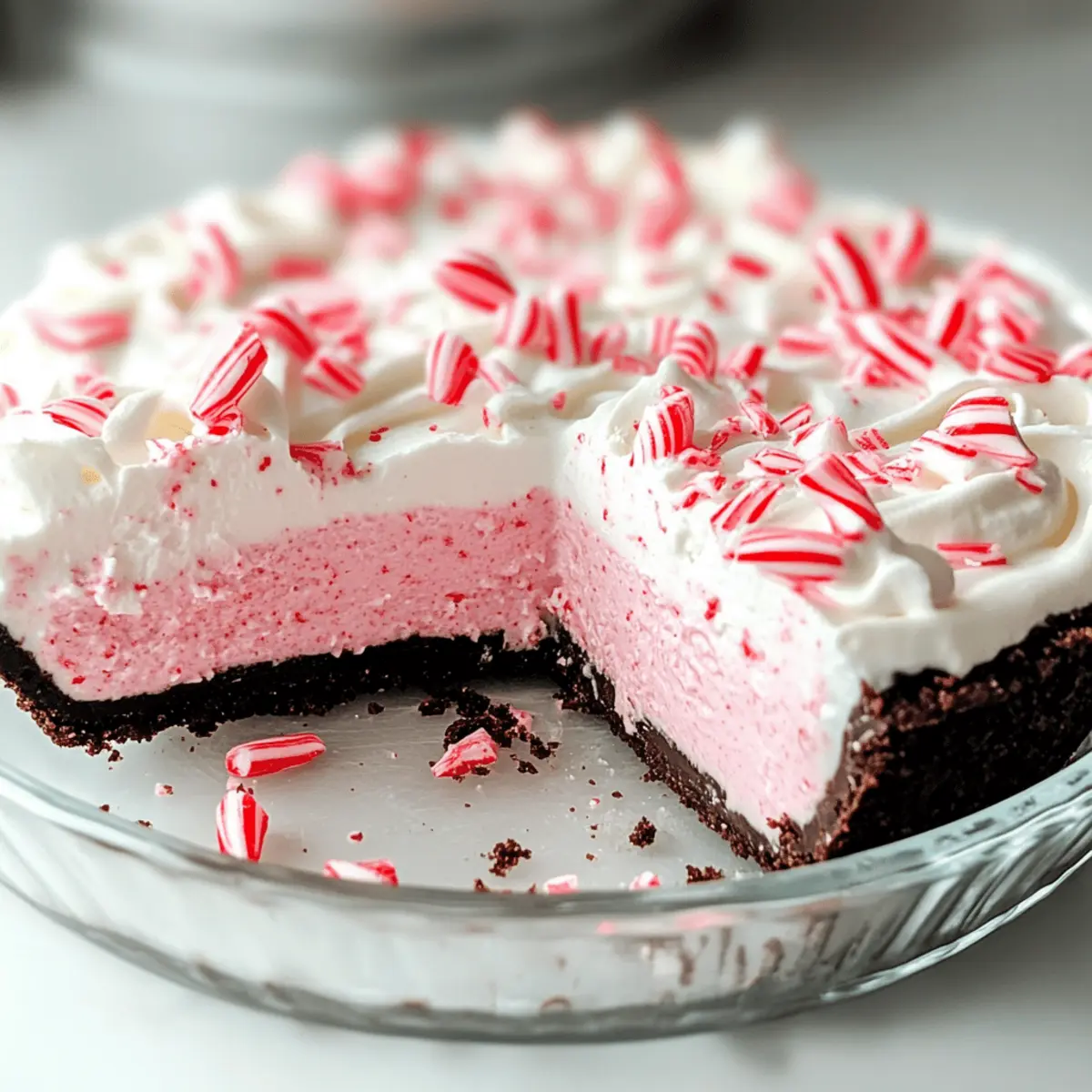 Jump to Recipe Print RecipeAs I was whisking away in my kitchen, the first hints of the holiday season scented the air with minty joy, and I couldn’t resist whipping up my No Bake Christmas Peppermint Pie. This delightful dessert is this season’s must-have, combining an ultra-creamy peppermint filling with a rich chocolate cookie crust that’s so easy to make. With just a few simple steps, you can create a show-stopping treat perfect for holiday gatherings, leaving you more time to enjoy the festivities. Plus, it’s a fantastic make-ahead option—simply chill it overnight and wow your guests with its vibrant red and white swirls and crunchy peppermint topping. Ready to make your dessert dreams come true this Christmas? Let’s get started! Why You’ll Love This Christmas Peppermint Pie Simplicity: This no bake recipe requires minimal prep time and no fancy equipment, making it perfect for busy holiday schedules. Crowd-Pleasing: It’s a festive dessert that everyone—kids and adults alike—can’t resist, ensuring your gathering is a hit. Make-Ahead Magic: Preparing this pie a day in advance means one less thing to worry about on party day, allowing you more time for fun! Rich Flavor Contrast: With a luscious peppermint filling paired beautifully with the chocolate cookie crust, each bite is a holiday delight. Endless Variations: Want to mix things up? You can easily swap the crust or add extra ingredients to impress your guests. For more festive inspiration, check out my Chicken Pot Pie. Add a splash of peppermint schnapps for an adult twist that takes this dessert to new heights! Christmas Peppermint Pie Ingredients For the Filling Cream Cheese – Provides a creamy, rich filling; opt for full-fat block cream cheese for the best texture. Powdered Sugar – Sweetens the mixture while adding smoothness; can substitute with granulated sugar, but ensure thorough mixing for an even consistency. Heavy Cream – Whipped to create lightness in the filling; use fresh heavy cream for the best results. Vanilla Extract – Adds depth to the flavor; make sure to use pure vanilla for the finest taste. Peppermint Extract – Delivers the signature Christmas peppermint flavor; start with half the recommended amount and adjust according to taste. For the Crust Oreo Pie Crust – The base of your pie; pre-made saves time, although a homemade crust can be a delicious alternative. For the Topping Cool Whip – Convenient and light for topping; can be replaced with freshly whipped cream if preferred. Crushed Peppermint Candy – Adds crunch and festive flair; avoid crushing too finely to keep it textured. This Christmas Peppermint Pie will undoubtedly be a holiday favorite that charms everyone at the table! Step‑by‑Step Instructions for Christmas Peppermint Pie Step 1: Whip the Heavy Cream In a large mixing bowl, pour in the fresh heavy cream and beat it using an electric mixer on medium-high speed for about 3-5 minutes until you achieve stiff peaks. The cream should form peaks that stand upright when you lift the beaters. This light and fluffy base will add an airy quality to your Christmas Peppermint Pie. Step 2: Cream the Cheese and Sugar In a separate bowl, add the softened cream cheese and powdered sugar, then beat them together using the mixer on medium speed until the mixture is smooth and creamy, typically 2-3 minutes. Make sure to scrape down the sides of the bowl as needed to ensure everything is well combined and that your filling for the Christmas Peppermint Pie is perfectly silky. Step 3: Add Flavorings To the cream cheese mixture, incorporate the vanilla extract and peppermint extract, blending them together until evenly mixed. If you’re using food coloring for festive swirls, add a few drops to your filling and stir until it reaches your desired shade. The peppermint extract will provide that classic holiday flavor that makes this pie special. Step 4: Fold in Peppermint Candy Gently fold half a cup of crushed peppermint candy bits into the cream cheese mixture using a spatula. This adds delightful crunch and enhances the festive flavor. Be careful not to overmix; you want to keep that airy texture from the heavy cream while ensuring every bite of your Christmas Peppermint Pie is dotted with peppermint delight. Step 5: Combine the Mixtures Now, carefully add the whipped heavy cream to the cream cheese mixture. Using a spatula, gently fold the two mixtures together until fully combined and smooth. Take your time, as you want it to be airy and fluffy without deflating the whipped cream. This delightful blend is the heart of your creamy Christmas Peppermint Pie. Step 6: Fill the Pie Crust Pour the combined filling into the pre-made Oreo pie crust, and use a spatula to spread it evenly all the way to the edges. Smooth the top so it looks inviting and professional. This will form the decadent base of your Christmas Peppermint Pie, ready to be topped and chilled. Step 7: Add the Topping Spread a layer of Cool Whip over the top of the filled pie, creating an even blanket of fluffy goodness. With a spatula, you can create decorative swirls or peaks if you like. This light topping complements the creamy filling, ensuring every slice of your Christmas Peppermint Pie is visually stunning. Step 8: Chill the Pie Place your pie in the refrigerator to chill for at least 4 hours, or preferably overnight. This chilling time helps the filling set nicely, resulting in a firm yet creamy texture when served. The flavors will also meld together beautifully, enhancing the festive taste of your Christmas Peppermint Pie. Step 9: Serve and Enjoy Once chilled, slice the pie into wedges and serve it cold for the best flavor and texture. For an extra touch, sprinkle additional crushed peppermint candy on top just before serving, adding a pop of color and a festive crunch. Your Christmas Peppermint Pie is now ready to charm guests and become a seasonal favorite! Christmas Peppermint Pie Variations Embrace 