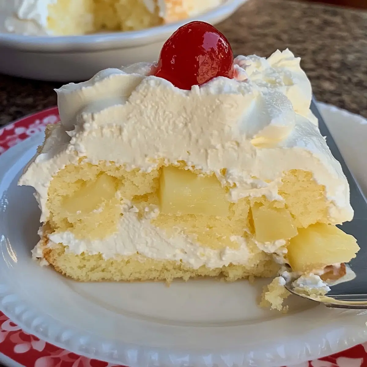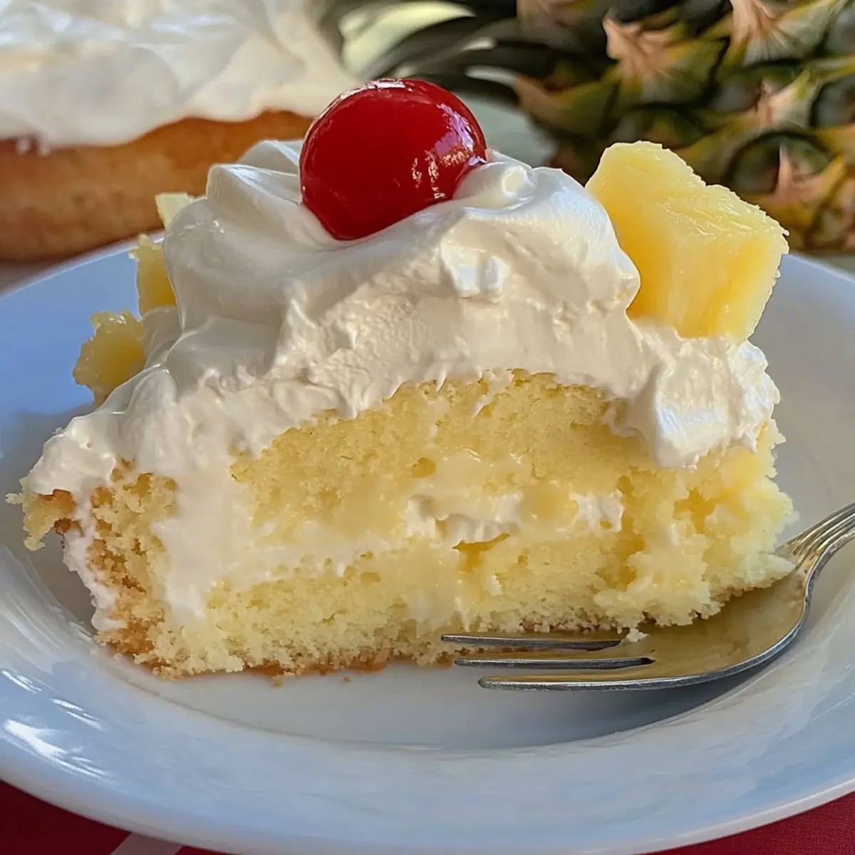 Jump to Recipe Print RecipeAs I stood by the window, the aroma of baking cake mingled with the sounds of laughter and chatter from the family gathering outside. This is the moment that inspired my love for homemade desserts—making connections through food. Today, I’m excited to share my Easy Church Cake with Creamy Pineapple Topping, a recipe that beautifully blends simplicity with nostalgia. With just a few pantry staples and no special equipment needed, this traditional treat is perfect for those who crave delicious homemade cake without the stress. Plus, it’s a crowd-pleaser that you can whip up in no time, allowing you to focus on creating memories rather than spending hours in the kitchen. Are you ready to bring a slice of joy to your next gathering? Let’s get baking! Why is Church Cake so special? Simplicity at your fingertips: This Easy Church Cake comes together effortlessly, requiring only basic ingredients and no special tools—perfect for even novice bakers. Nostalgic flavors: The delightful hints of pineapple, cream cheese, and whipped topping will transport you back to cherished family gatherings and potlucks. Customizable just for you: Feel free to explore with different pudding flavors or fruit toppings. Want to try a twist? Substitute vanilla pudding with banana for a delightful variation. Make-ahead convenience: Prepare it a day in advance and let it chill—ideal for busy schedules and ensures maximum flavor. Crowd favorite: With its lightness and refreshing taste, this cake is sure to impress your guests. Serve it at your next family gathering, and watch everyone come back for seconds! Be sure to also check out these variations: Fried Strawberry Cheesecake Sandwiches or the delightful Peanut Butter Cheesecake for more dessert inspiration! Church Cake Ingredients • Get ready to bake! For the Cake • Jiffy Cake Mix – This light and airy mix serves as the foundation; you can swap in any yellow or butter cake mix for a different flavor. • Egg – Acts as a binder and adds moisture; don’t skip it for the best texture! • Cold Water or Pineapple Juice – Use either as the liquid component; pineapple juice enhances the tropical flavor of your Church Cake. For the Creamy Layer • Cream Cheese – Brings richness and tang; make sure it’s softened for easy mixing. • Instant Vanilla Pudding – This creates a creamy topping; consider using lemon or banana pudding for a unique twist. • Milk – Hydrates the pudding mixture; any variety you prefer will work perfectly. For the Topping • Crushed Pineapple – Adds a natural sweetness and delightful texture; be sure to drain it well to avoid a soggy cake. • Whipped Topping – Provides a fluffy finish; you can use a defrosted tub or make your own whipped cream for freshness. Now that we have our ingredients ready, let the baking magic begin! With this Church Cake, you’re not just making a dessert; you’re creating memories that will linger long after the last bite. Step‑by‑Step Instructions for Church Cake Step 1: Preheat and Prepare Begin by preheating your oven to 350°F (175°C). While the oven is heating up, gather your 9×13-inch baking pan and grease it lightly to prevent sticking. This simple step ensures your Church Cake will come out beautifully without losing any of its deliciousness. Step 2: Mix the Cake Batter In a large mixing bowl, combine the Jiffy cake mix, egg, and your choice of cold water or pineapple juice. Mix until well combined, ensuring there are no lumps for a smooth batter. Pour the mixture into the greased baking pan, spreading it evenly, and get ready to bake this delightful Church Cake! Step 3: Bake the Cake Place the populated baking pan in your preheated oven and bake for 10-12 minutes. Keep an eye on the cake; it’s done when a toothpick inserted into the center comes out clean. Once baked, carefully remove it from the oven and let it cool completely in the pan to lock in moisture and flavor. Step 4: Prepare the Cream Cheese Mixture While your cake cools, take a mixing bowl and beat the softened cream cheese until smooth and creamy. This step is crucial for creating a luscious layer in your Church Cake. Set this silky cream cheese mixture aside for later use. Step 5: Make the Pudding Layer In a separate bowl, whisk together the instant vanilla pudding and milk until the mixture thickens, which should take about 2 minutes. This creamy blend will give your Church Cake a rich topping, so ensure it’s well combined before folding it into the cream cheese mixture prepared earlier. Step 6: Combine and Layer Once the cake has completely cooled, spread the creamy pudding and cream cheese mixture evenly over the top of the cake. Use a spatula for a smooth spread, allowing the richness to perfectly complement the fluffy cake beneath. Your Church Cake is already taking shape! Step 7: Add the Pineapple Next, drain the crushed pineapple thoroughly to avoid excess moisture. Scatter the juicy crushed pineapple evenly over the creamy layer, ensuring each slice will have that sweet tropical flavor. This addition makes your Church Cake incredibly refreshing and satisfying. Step 8: Finish with Whipped Topping Finally, spread the whipped topping over the pineapple layer, creating a fluffy finish on your Church Cake. Feel free to be generous, as this light topping is the crowning glory of your cake. Once assembled, cover the cake and refrigerate for at least one hour to set all the flavors beautifully. Make Ahead Options Preparing your Easy Church Cake in advance is a fantastic way to save time, especially during busy days! You can bake the cake and let it cool completely up to 24 hours ahead of time; simply store it tightly covered at room temperature to maintain its moisture. The creamy pudding and cream cheese layer can also be made in advance and stored in the refrigerator for up to 3 days—just blend the ingredients and keep them airtight. When you’re ready to serve, layer the