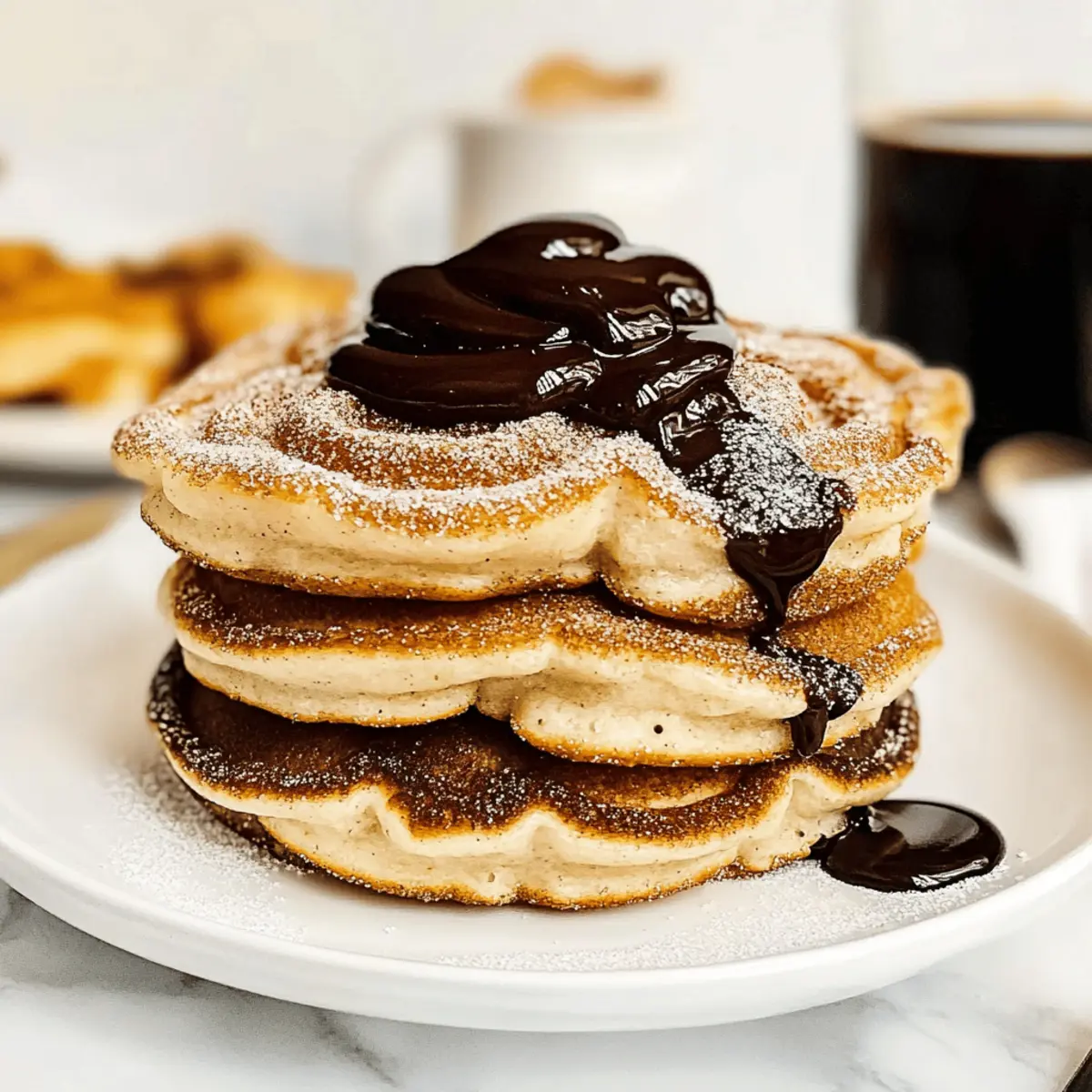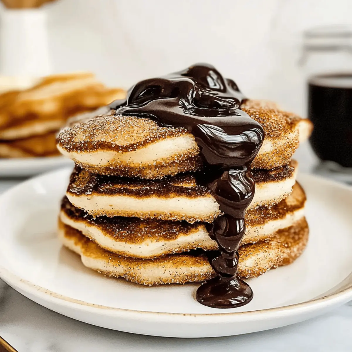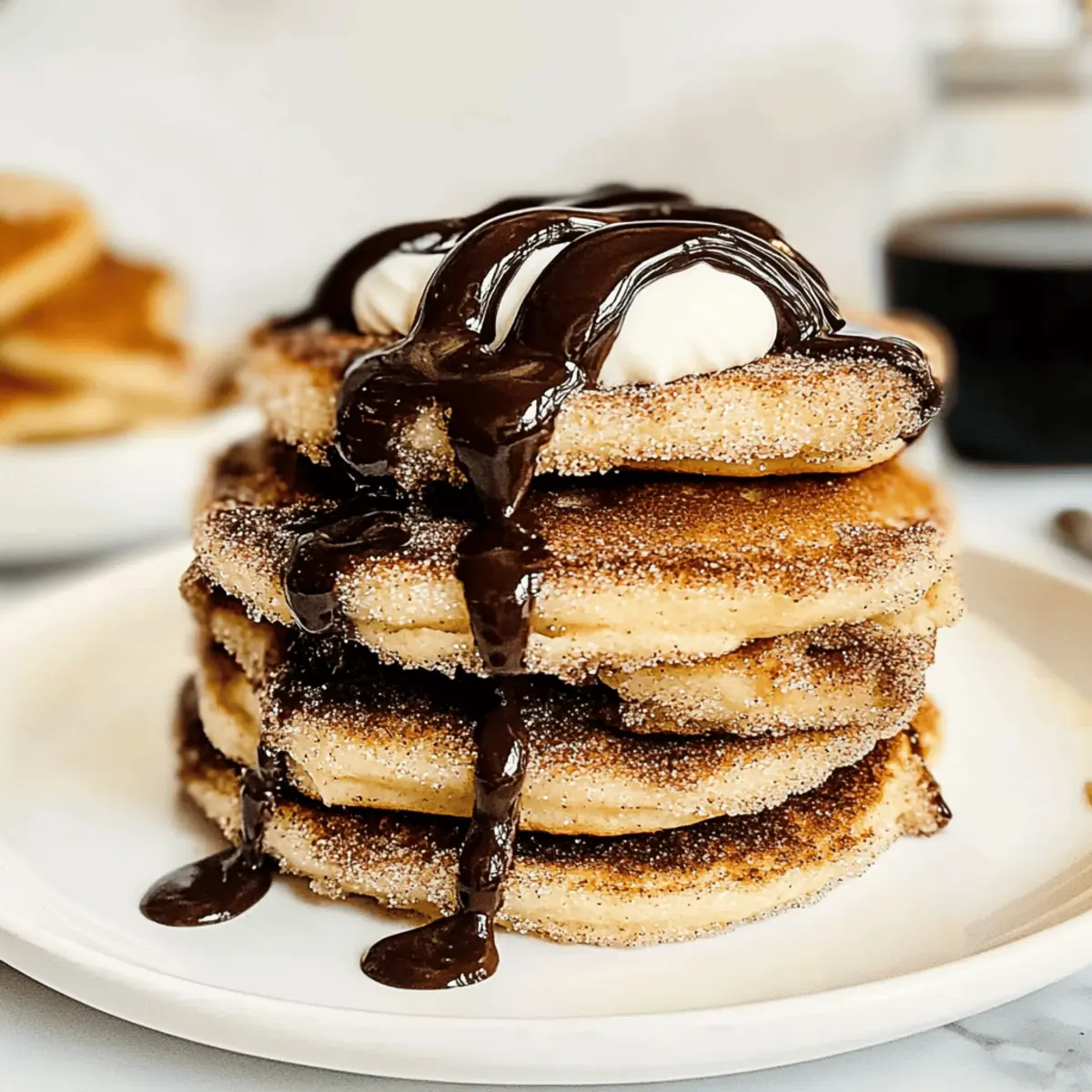 Stack your coated churro pancakes on plates and serve warm. Drizzle with rich chocolate sauce or creamy condensed milk for an indulgent twist that will elevate these to an unforgettable breakfast or dessert treat.