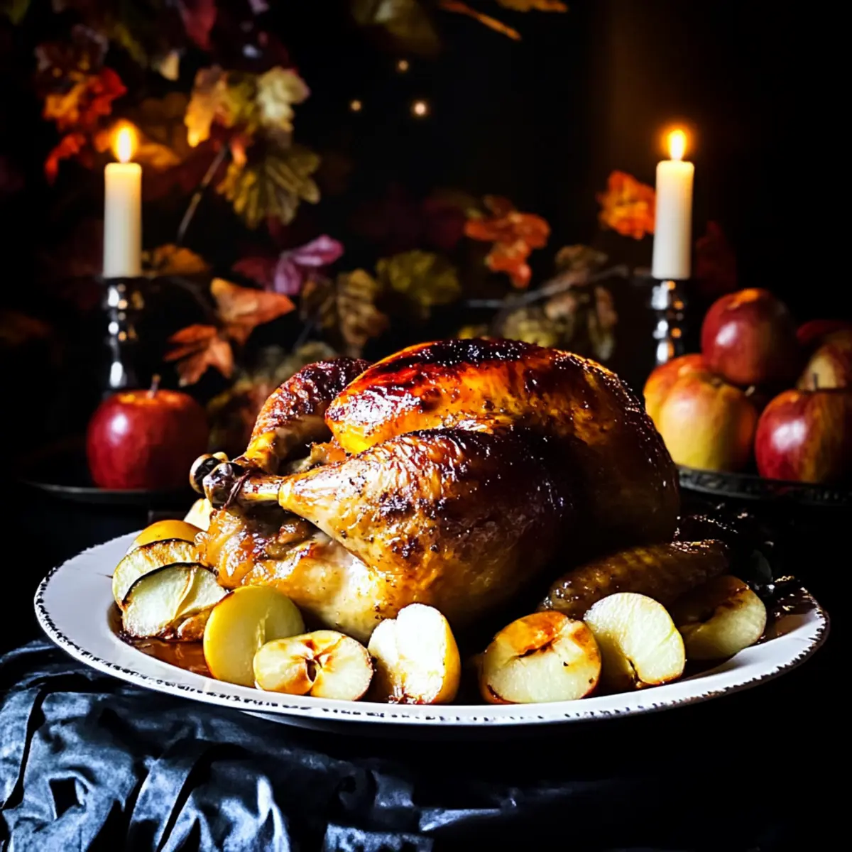 Jump to Recipe Print RecipeThe moment the leaves start to turn, my kitchen transforms into a cozy haven filled with inviting aromas of fall. Enter the Cider Brined Roast Chicken—a recipe that embodies the essence of the season. Brining in apple cider ensures each bite is succulent and juicy, while a delightful maple glaze and a hint of citrus lend a sweet, zesty touch that will have your family asking for seconds. Not only is this dish a showstopper, perfect for gathering loved ones around the table, but it’s also a comforting choice that rivals any fast-food option you might be tempted by. With a simple preparation method and robust flavors, this dish promises to be a standout at your next autumn dinner. Are you ready to elevate your roasting game? Let’s dive into the details! Why is Cider Brined Roast Chicken Amazing? Unmatched Juiciness: Brining this roast chicken in apple cider ensures that each slice is bursting with flavor and moisture, leaving traditional roasted chicken in the dust. Easy Ingredient Access: You likely already have most ingredients in your pantry or refrigerator, making this a hassle-free recipe to whip up. Autumnal Delight: The notes of apple, maple, and citrus perfectly capture the essence of fall, inviting friends and family to gather around the dinner table. Versatile Pairings: Serve it with seasonal sides like roasted vegetables or a fresh green salad for a balanced meal that’s sure to impress. Leftovers Galore: This dish keeps well, so you can savor every bite for days. Consider turning any leftover meat into delicious sandwiches or add it to a comforting soup like a Garlic Chicken Thigh for a new take on the classic. With its comforting flavors and straightforward preparation, this cider brined roast chicken will quickly become a family favorite! Cider Brined Roast Chicken Ingredients For the Brine 2 L water – Base for the brine; ensures proper hydration for the chicken. 6½ cups apple cider, divided – Adds subtle apple flavor and sweetness; fresh cider yields the best results. 1 cup kosher salt – Essential for brining, which helps keep the chicken moist; use less if substituting with table salt. ½ cup brown sugar – Sweetens the brine; white sugar can easily substitute it. 12-14 sprigs fresh thyme, divided – Infuses brine with flavor; dried thyme works too (1 tablespoon). 1 tbsp peppercorns – Adds a light spiciness to the brine; optional to reduce or omit. 1 L ice water – Cools down the brine after heating; no substitutions. For the Chicken 6-7 lb roaster chicken – The star of the dish; larger sizes work best for even cooking. ½ cup butter, softened – Used for the compound butter, imparting rich flavor; a dairy-free option is available. 3 sprigs fresh sage, divided – Provides an earthy flavor; can swap for dried sage in smaller amounts. 1 orange – Adds zesty notes through its zest for the compound butter and cavity stuffing; lemons are a tasty alternative. ½ tsp pepper, divided – Seasoning for the chicken; adjust according to taste preferences. 1 tbsp olive oil – Needed for roasting; can substitute with vegetable oil. 1 onion – Aromatic base for roasting; shallots are a great substitution. 3 garlic cloves – Enhance flavors; garlic powder can be used instead for convenience. 3 Gala apples – Provide a sweet touch when roasted; Honeycrisp or Fuji apples work beautifully as substitutes. For the Maple Glaze and Gravy 2 tbsp maple syrup – Creates the sweet glaze; honey can be a delightful alternative. ⅓ cup flour – Thickens the gravy; opt for gluten-free all-purpose flour if needed. Extra chicken broth or apple cider – Adjusts gravy consistency; ensure it’s low-sodium for a healthier option. Step‑by‑Step Instructions for Cider Brined Roast Chicken Step 1: Brining the Chicken In a large pot, combine 2 liters of water, 6½ cups of apple cider, 1 cup of kosher salt, ½ cup of brown sugar, 12-14 sprigs of thyme, and 1 tablespoon of peppercorns. Heat over medium until the salt and sugar dissolve completely, then remove from heat and allow to cool. Once cool, add 1 liter of ice water and the 6-7 lb roaster chicken, ensuring it’s fully submerged. Refrigerate for 12 to 24 hours. Step 2: Prep Compound Butter While the chicken brines, prepare your compound butter. In a bowl, mix ½ cup of softened butter with finely chopped thyme, 3 sprigs of sage, the zest of 1 orange, and ½ teaspoon of pepper. Blend well until fully incorporated, then set aside some of the mixture to reserve for later. This delightful compound butter will infuse the chicken with incredible flavor. Step 3: Prepare for Roasting Preheat your oven to 350°F (175°C). While the oven heats, chop the onion and any remaining aromatics such as garlic and orange. In a roasting pan, drizzle 1 tablespoon of olive oil, spreading it evenly, and layer the chopped onion and aromatic ingredients at the bottom. This aromatic base will enhance the roast chicken’s flavor as it cooks. Step 4: Air Dry Chicken After the brining period, remove the chicken from the brine, and pat it dry thoroughly with paper towels. Place the chicken on a wire rack to air dry at room temperature for 1 hour. This step is crucial as it helps to achieve crispy skin, ensuring your Cider Brined Roast Chicken turns golden and delicious. Step 5: Apply Butter and Stuffing Once the chicken is air-dried, rub the compound butter all over the chicken, making sure to get under the skin wherever possible for maximum flavor. Then, stuff the cavity with the halved orange and remaining herb sprigs. This will infuse the chicken with aromatic citrus notes as it roasts, enhancing the overall flavor profile. Step 6: Roasting Place the prepared chicken in the roasting pan, ensuring it sits atop the aromatic base. Pour an additional cup of cider into the pan, then roast uncovered for 1 hour. Watch for golden skin as it develops a beautiful brown color. Check occasionally and baste with juice for added moistu