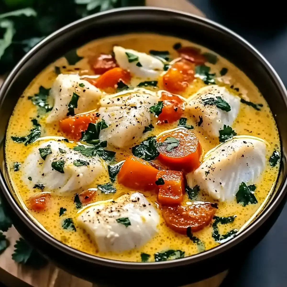 Jump to Recipe Print RecipeOn a rainy afternoon, I found myself craving something warm and comforting to chase away the chill. That’s when this creamy coconut white fish stew became my culinary escape. With its silky coconut milk base and vibrant vegetables, every spoonful transports me to sun-drenched shores, making it the perfect antidote to a dreary day. This Coconut White Fish Stew not only showcases the delicate flavors of fresh fish but is also dairy-free and gluten-free, making it a fantastic option for everyone at your table. Quick to whip up, it’s ideal for both impressing guests and indulging in a little self-care after a long day. Curious how you can stir up your own tropical getaway right in your kitchen? Let’s dive in! Why Choose Coconut White Fish Stew? Deliciously Comforting: This stew wraps you in warmth with its creamy coconut milk and fresh ingredients, perfect for any cozy dinner. Versatile Ingredients: Easily swap fish types or add veggies like spinach or zucchini to tailor it to your family’s taste. Pair it with jasmine rice or crusty bread for a complete meal! Quick to Prepare: Ideal for busy weeknights, it comes together in under 30 minutes, allowing you to savor every moment without lengthy prep. Dairy-Free Goodness: Enjoy a rich, creamy flavor without the dairy; it’s a delightful option for everyone, including those with dietary restrictions. Tropical Flavor Escape: Each bowl offers a taste of paradise, making it a fun, unique dish to impress your dinner guests. Don’t miss this opportunity for a culinary escape right at home! Coconut White Fish Stew Ingredients For the Stew Base • White Fish Fillets – Mild flavors like cod or halibut work best; try tilapia for a budget-friendly option. • Coconut Milk – Gives the dish its creamy texture; consider light coconut milk for a lower-calorie version. • Low-Sodium Vegetable Broth – A flavorful liquid to build the stew; chicken broth is a good substitute if not vegetarian. For the Aromatics • Fresh Ginger – Adds warming spice; using fresh ginger enhances the overall flavor. • Garlic – Infuses the stew with depth and aroma; fresh garlic provides the best taste. • Onion – Creates a savory foundation for the dish; white or yellow onions work well. For the Vegetables • Bell Peppers (mixed red and yellow) – Provides sweetness and color; feel free to add spinach or zucchini for extra nutrition. For Finishing Touches • Fresh Lime Juice – Brightens and elevates flavors; it’s essential for that zesty finish. • Fresh Cilantro – Adds a burst of herbaceous freshness; parsley can be used as a substitute if needed. Step‑by‑Step Instructions for Coconut White Fish Stew Step 1: Sauté Aromatics Begin by heating 2 tablespoons of oil in a large pot over medium heat. Add 1 diced onion and sauté for about 3-4 minutes until it becomes translucent. Next, incorporate 3 minced garlic cloves and 1 tablespoon of freshly grated ginger; stir them together for an additional 1-2 minutes until fragrant, creating a beautiful aromatic base for your Coconut White Fish Stew. Step 2: Add Vegetables Introduce 1 cup of sliced mixed bell peppers to the pot, stirring frequently for about 5 minutes until they start to soften yet retain some crunch. This colorful addition not only enhances the visual appeal of your stew but also contributes lovely sweetness and texture, blending beautifully with the sautéed aromatics. Step 3: Combine Liquid Ingredients Pour in 1 can of coconut milk and 2 cups of low-sodium vegetable broth into the pot. Stir the mixture well, ensuring everything is incorporated evenly. Bring the stew to a gentle simmer over medium heat; you’ll see small bubbles forming along the edges, creating a rich, creamy base that’s ideal for your fish. Step 4: Cook Fish Gently add 1 pound of white fish fillets, such as cod or halibut, into the simmering broth. Cover the pot and let the fish cook for about 10 minutes. It’s ready when the fish flakes easily with a fork and is opaque in color. This step allows the flavors to meld, creating a delectable Coconut White Fish Stew. Step 5: Finish Dish Remove the pot from heat and stir in the juice of 1 fresh lime and ¼ cup of chopped cilantro. This final touch brightens the stew, adding a zesty flavor that enhances the overall taste. Taste and adjust the seasoning with salt and pepper to your liking for the perfect finishing touch. Step 6: Serve Ladle the creamy Coconut White Fish Stew into warm bowls and garnish with extra cilantro if desired. This inviting, tropical dish is best enjoyed with jasmine rice or crusty bread for dipping, allowing you to soak up every last drop of its deliciousness. What to Serve with Coconut White Fish Stew? Cozy up your meal with delightful sides that perfectly complement this creamy, tropical delight. Jasmine Rice: A fragrant base that absorbs the stew’s flavors, making every bite an aromatic experience. Crusty Bread: Ideal for dipping and soaking up the rich, creamy broth, adding a satisfying crunch to each spoonful. The combination of textures creates a comforting contrast. Fresh Salad: A vibrant mix of greens like spinach or arugula adds a refreshing crunch, balancing the stew’s creaminess. Toss in cherry tomatoes and a zesty vinaigrette for that extra zing. Roasted Vegetables: Consider a medley of seasonal veggies like carrots, zucchini, and bell peppers, roasted to caramelized perfection. Their natural sweetness will harmonize beautifully with the coconut flavors. Coconut Rice: For a double coconut delight, serve your stew over coconut-infused rice. It enhances the tropical theme and adds an extra layer of creaminess. Mango Salsa: Bright, sweet, and spicy, this fresh topping can elevate your stew even further. Use it to sprinkle on top and introduce a delightful pop of flavor. Make Ahead Options These Coconut White Fish Stew components are ideal for busy cooks looking to save time in the kitchen! You can chop the 