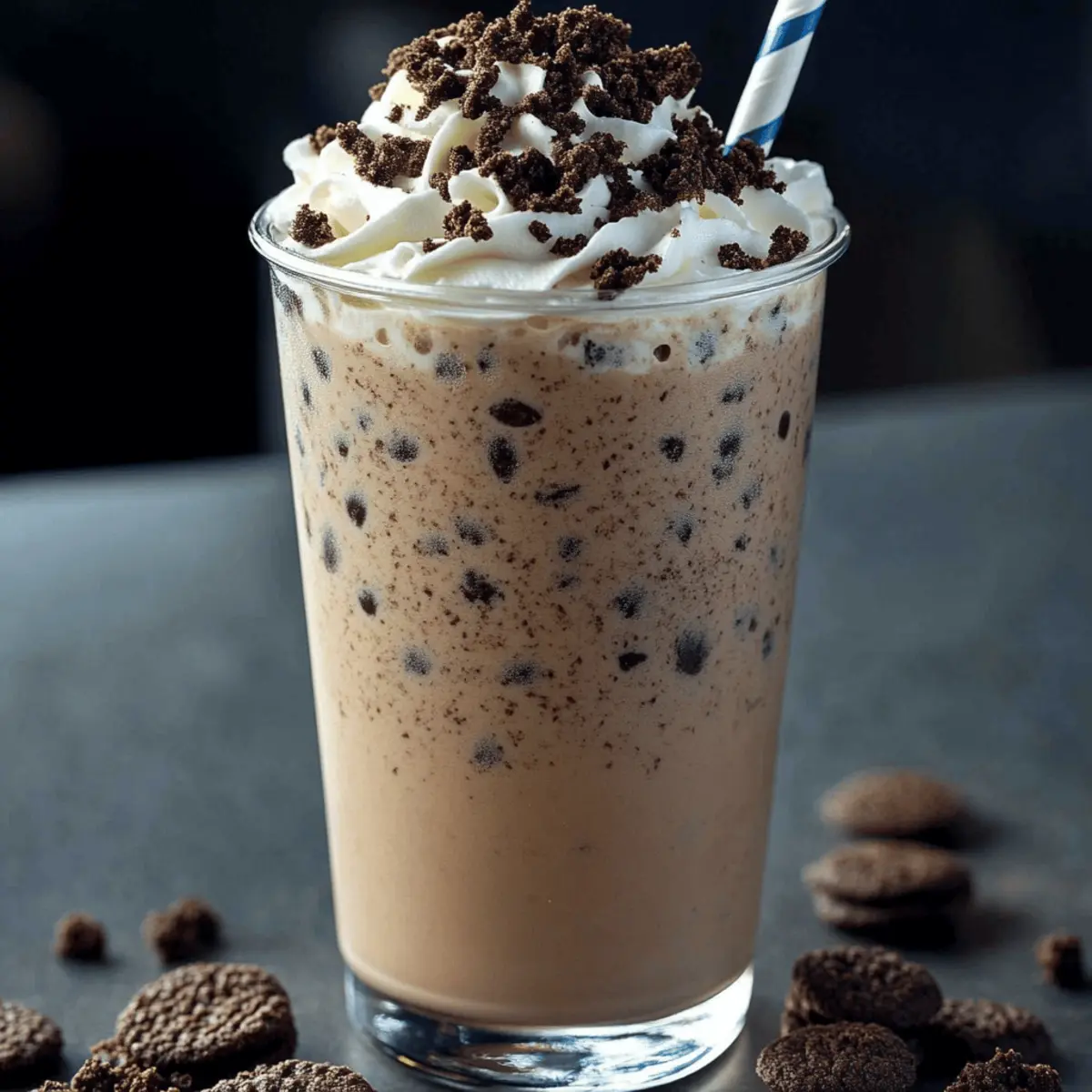 Jump to Recipe Print RecipeAs I stood in my kitchen, the sun streaming in and wafting delightful scents around me, a thought struck me: why not bring that iconic café experience home? The delightful combination of a Cookies and Cream Frappuccino is exactly what I needed. This dreamy concoction combines cold milk, refreshing ice, luscious chocolate ice cream, and crunchy cookie crumbs to create a treat that’s as indulgent as it is customizable. Whether you prefer a dairy-free twist or want to add a shot of coffee for an extra kick, this recipe is effortlessly adaptable to fit any craving. Plus, it’s ready in mere minutes, making it the perfect pick-me-up for busy afternoons or cozy evenings. Are you ready to sip on a homemade drink that tastes just like a gourmet café creation? Let’s dive into making this irresistible treat! Why is this frappuccino a must-try? Decadent flavors: The rich combination of chocolate ice cream and cookie crumbs creates an indulgent taste that elevates your beverage experience. Effortless customization: Easily adjust this recipe to meet your dietary needs—choose almond or oat milk for a delicious dairy-free version! Quick to make: Ready in just minutes, this frappuccino is perfect for anyone seeking a delightful treat without the wait. Crowd pleaser: Whether it’s a sunny afternoon or a cozy gathering, this drink is sure to impress friends and family alike with its café-like charm, just like our Cotton Candy Cookies or Red Velvet Crinkle Cookies. Unique inspirations: Feel free to experiment with flavor variations, like adding a splash of vanilla extract for a special twist that keeps things exciting! Cookies and Cream Frappuccino Ingredients For the Base Milk (240 ml) – Acts as the creamy foundation; substitute with almond, oat, or coconut milk for a dairy-free version. Ice Cubes (120 ml) – Essential for that refreshing chill; no substitutions needed. For the Creaminess Chocolate Ice Cream (60 ml) – Provides rich chocolate flavor; opt for a dairy-free frozen dessert if vegan. Chocolate Sandwich Cookie Crumbs (30 g) – The star ingredient that gives a crunchy texture; Oreos or lactose-free cookies work well. For the Topping Whipped Cream – Adds a decadent layer on top; can easily be made dairy-free. Chocolate Cookie Crumbles – Optional garnish that enhances both crunch and visual appeal. Whip up this delightful Cookies and Cream Frappuccino and treat yourself to a café-like indulgence at home! Step‑by‑Step Instructions for Cookies and Cream Frappuccino Step 1: Gather Ingredients Start by assembling all your ingredients: 240 ml of milk (or a dairy-free alternative), 120 ml of ice cubes, 60 ml of chocolate ice cream, and 30 g of chocolate sandwich cookie crumbs. Ensure you have a high-powered blender ready, as it will help in achieving that smooth and velvety texture essential for your Cookies and Cream Frappuccino. Step 2: Combine Ingredients in Blender In your blender, pour in the milk first to create a liquid base. Follow by adding the ice cubes, chocolate ice cream, and the cookie crumbs. This order helps the ice blend more efficiently. Secure the lid tightly and prepare to blend, as this step is crucial for creating a cafe-style drink right in your kitchen. Step 3: Blend Until Smooth Blend the mixture on high speed for about 30 to 45 seconds, or until it transforms into a smooth, creamy consistency. Keep an eye out for any remaining ice chunks; if you notice them, blend a bit longer. A perfectly blended Cookies and Cream Frappuccino should be thick yet pourable, shimmering with a delightful sheen. Step 4: Chill Your Glass While your frappuccino blends, take a moment to chill your glass. You can run it under cold water or place it in the freezer for a few minutes. A chilled glass enhances the experience and helps keep your drink cold longer, making every sip of your Cookies and Cream Frappuccino irresistibly refreshing. Step 5: Pour into the Glass Once your frappuccino is blended to perfection, carefully pour the creamy mixture into the chilled glass. Watch as the cookies and cream blend creates a beautiful swirl. Make sure to fill the glass to the brim for an indulgent presentation that not only looks impressive but also promises a satisfying, rich taste. Step 6: Add the Finishing Touches Top your Cookies and Cream Frappuccino generously with whipped cream, letting it cascade down the sides for an inviting look. For an extra touch of charm and crunch, sprinkle additional cookie crumbles on top. This delightful garnish makes your drink eye-catching and adds a delightful texture that complements the smooth base. Step 7: Serve Immediately Serve your Cookies and Cream Frappuccino immediately to enjoy it at its best! The combination of cold, creamy flavors is most delightful when fresh, so be sure to pass it around quickly. Pair it with a light snack or enjoy it as a standalone treat to elevate your afternoon or evening into a special occasion. What to Serve with Cookies and Cream Frappuccino Imagine sipping on a velvety drink while nibbling on delightful snacks that complement its rich flavors. Crunchy Biscotti: A perfect dipping companion, biscotti adds a satisfying crunch and brings a delightful contrast to the creamy frappuccino. Chocolate Muffins: Their soft, chocolatey goodness pairs seamlessly with the Cookies and Cream Frappuccino, creating a double treat for any chocolate lover. Fresh Berries: Light and refreshing, fresh berries like strawberries or raspberries offer a burst of natural sweetness to cleanse the palate. Miniature Fruit Tart: A fruit tart brings a balance of creaminess and fruitiness, perfectly offsetting the indulgent frappuccino. Coffee Cake: The buttery texture and slight cinnamon flavor of coffee cake make it an ideal companion, enhancing that delightful café vibe. Light Salty Pretzels: Their salty crunch provides a delightful contrast to the sweet, creamy drink while enhancing the overall flavor experience. V