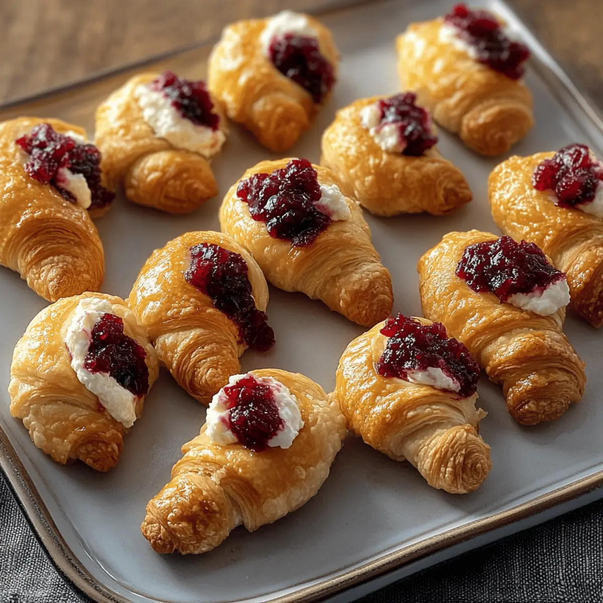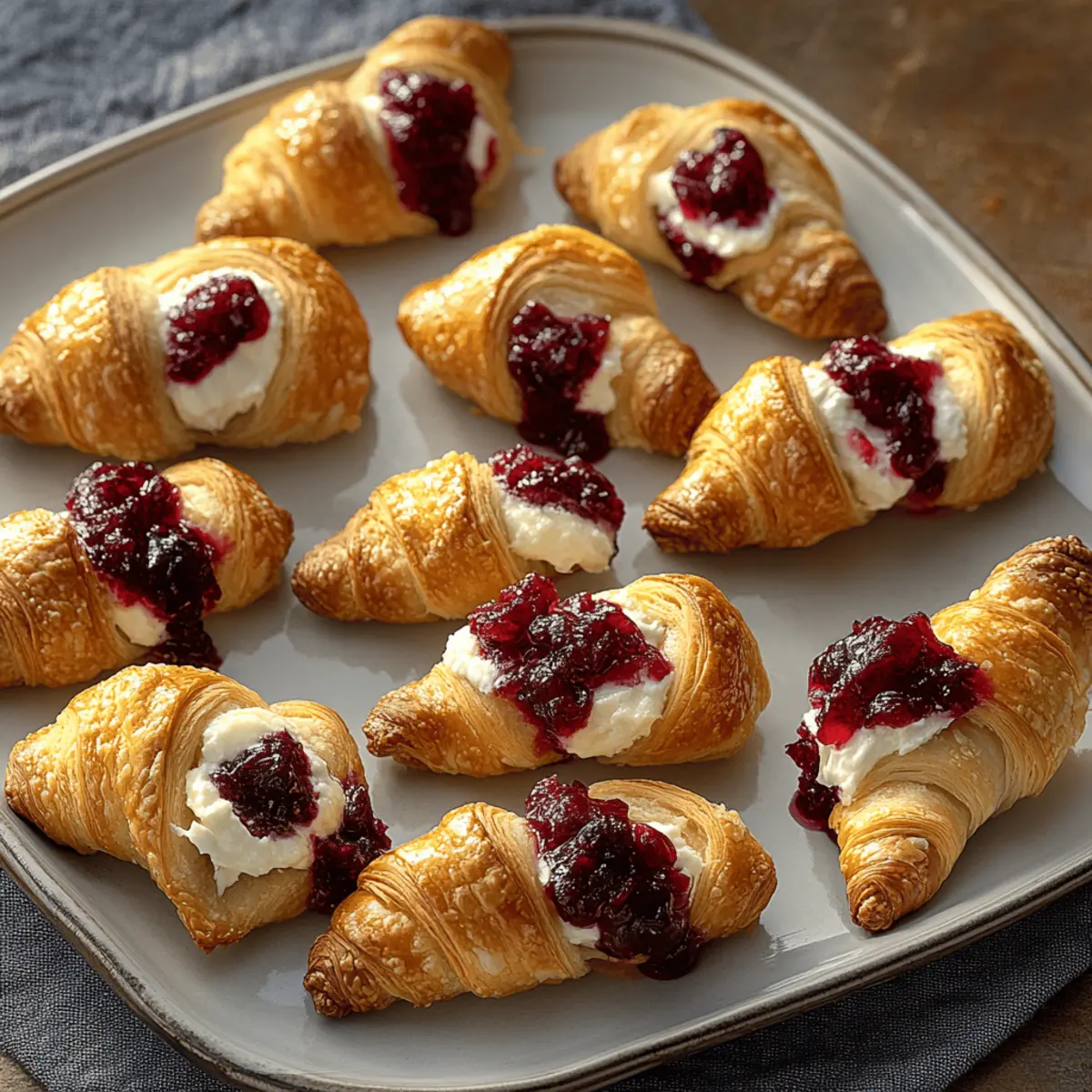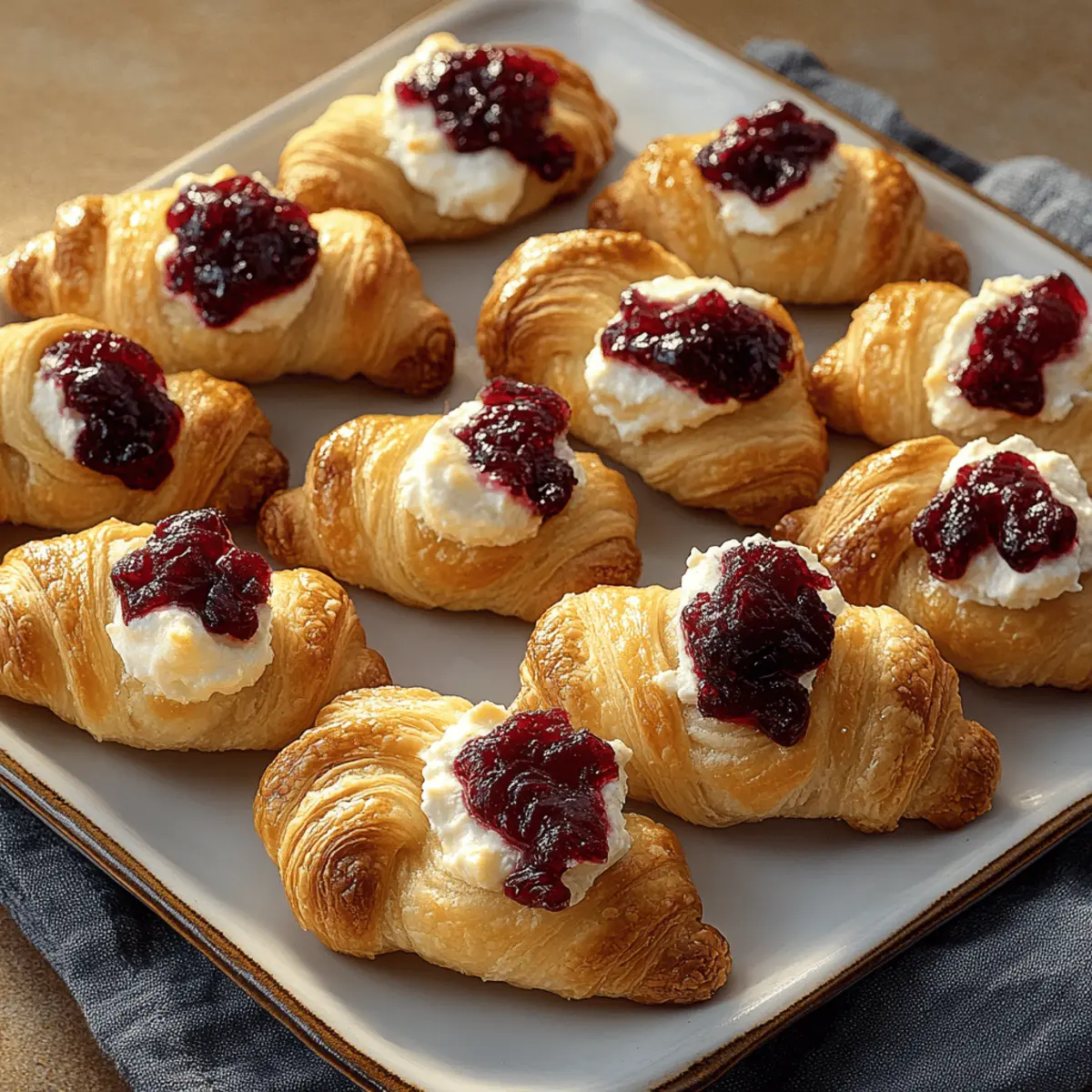 Jump to Recipe Print RecipeAs I pulled open the oven door, the warm, buttery aroma of these Cranberry Cream Cheese Crescent Bites wrapped around me like a cozy blanket. Admittedly, I was a bit skeptical at first—would something so easy really impress my guests? But with just 20 minutes of prep, I transformed simple crescent dough and cream cheese into fluffy, bite-sized treats that have quickly become my go-to for fall gatherings. The delightful pairing of creamy filling and tart cranberry jam makes these treats both festive and satisfying, ensuring they’re always a crowd-pleaser. Plus, their quick prep time means I can whip them up without the fuss on busy days. Curious to see how easy it is to make these delightful bites in your own kitchen? Why Are These Bites So Irresistible? Effortless Preparation: With only 20 minutes of prep, these treats are a breeze to make, perfect for busy hosts. Delicious Contrast: The creamy, sweet filling paired with tart cranberry creates a delightful flavor explosion. Perfect for Any Occasion: Whether it’s a Thanksgiving gathering or a simple family snack, they fit right in! Versatile Variations: Feel free to swap ingredients like using raspberry jam or even adding nuts for extra crunch. If you’re loving easy treats, don’t forget to check out my Baked Mac Cheese for another quick favorite! Crowd-Pleaser: These bite-sized wonders always disappear quickly at parties, leaving guests wanting more. Cranberry Cream Cheese Crescent Bites Ingredients For the Dough • Crescent Roll Dough – Provides a flaky, buttery base for the bites. Substitution: Any pre-made pastry dough can be used if needed. For the Filling • Cream Cheese (4 oz, softened) – Adds richness and creaminess to the filling. Note: Ensure it’s at room temperature for easy mixing. • Powdered Sugar (¼ cup) – Sweetens the cream cheese filling for balance with the tart cranberry. Substitution: Maple syrup can be used for a lower-sugar option, adjusting the quantity as needed. • Vanilla Extract (½ tsp) – Enhances the overall flavor of the filling. Notes: Use pure vanilla extract for the best flavor. • Whole Berry Cranberry Sauce (½ cup) – Provides a tart contrast to the sweet cream cheese. Substitution: If unavailable, raspberry or any tart jam can work. For the Topping • Optional Topping (e.g., chopped pecans or orange zest) – Adds texture and an aromatic finish. Notes: Omit for nut allergies or use pumpkin spice for a seasonal twist. Step‑by‑Step Instructions for Cranberry Cream Cheese Crescent Bites Step 1: Preheat and Prepare Begin by preheating your oven to 375°F (190°C). While it warms up, grease or line a mini muffin tin with paper liners to prevent sticking. This ensures your Cranberry Cream Cheese Crescent Bites will release easily once baked. An even layer of non-stick spray will do the trick! Step 2: Mix the Filling In a medium mixing bowl, combine 4 ounces of softened cream cheese, ¼ cup of powdered sugar, and ½ teaspoon of vanilla extract. Use a hand mixer or a spatula to blend until smooth and creamy—this should take about 2-3 minutes. The mixture should be well combined with no lumps, creating a luscious filling for your bites. Step 3: Prepare the Dough Unroll the crescent roll dough on a clean surface and slice each triangle in half lengthwise, creating smaller triangles. Gently press each dough piece into the prepared muffin cups, ensuring they cover the bottom and sides. This will create a lovely, flaky shell for your filling to nestle in. Step 4: Fill the Dough Cups Spoon about 1 teaspoon of the cream cheese mixture into each dough cup, ensuring an even distribution. Then, top each with 1 teaspoon of whole berry cranberry sauce, allowing some of the mixture to peek through. The vibrant red jam will contrast beautifully with the creamy filling once baked. Step 5: Add Optional Toppings If desired, sprinkle chopped pecans or a touch of orange zest on top of the filled cups for added texture and flavor. This step enhances the festive appeal of your Cranberry Cream Cheese Crescent Bites, making them a delightful treat perfect for any gathering. Step 6: Bake to Perfection Carefully place the muffin tin in the preheated oven and bake for 11-13 minutes, or until the dough is golden brown and puffed. Keep an eye on them through the oven door—you want that beautiful, flaky exterior! Step 7: Cool and Serve Once baked, remove the muffin tin from the oven and let it cool slightly for about 5 minutes. Gently lift the bites out of the cups and transfer them to a cooling rack. Serve warm, and watch your guests enjoy these irresistible Cranberry Cream Cheese Crescent Bites! Storage Tips for Cranberry Cream Cheese Crescent Bites Fridge: Store baked cranberry cream cheese crescent bites in an airtight container for up to 3 days to maintain their delightful flavor and texture. Freezer: You can freeze these bites before baking. Assemble them, place in a sealed container, and store for up to 2 months. Bake directly from frozen, adding 2-3 minutes to the baking time. Reheating: For best results, reheat in the oven at 350°F for about 5-7 minutes; this will revive their flaky texture and warm creamy filling. Assembling Ahead: Feel free to prepare the bites ahead of time, refrigerate them for up to a day before baking. Just ensure to cover them well to prevent drying out. Make Ahead Options These Cranberry Cream Cheese Crescent Bites are a fantastic choice for meal prep, allowing you to enjoy fresh flavors while saving time during busy days or festive gatherings! You can prepare the cream cheese filling and refrigerate it for up to 3 days in advance—just ensure it’s stored in an airtight container to maintain its creamy texture. Additionally, you can assemble the bites (filling and all) and keep them in the refrigerator for up to 24 hours before baking. When you’re ready to serve, bake them straight from the fridge, adding an extra minute or two if needed 