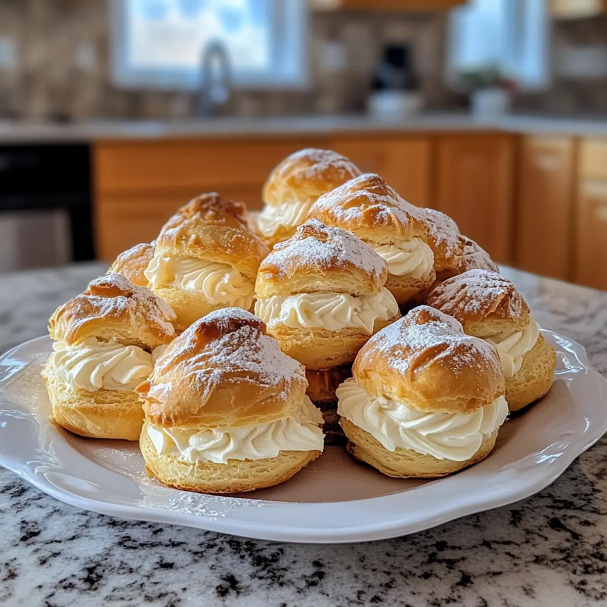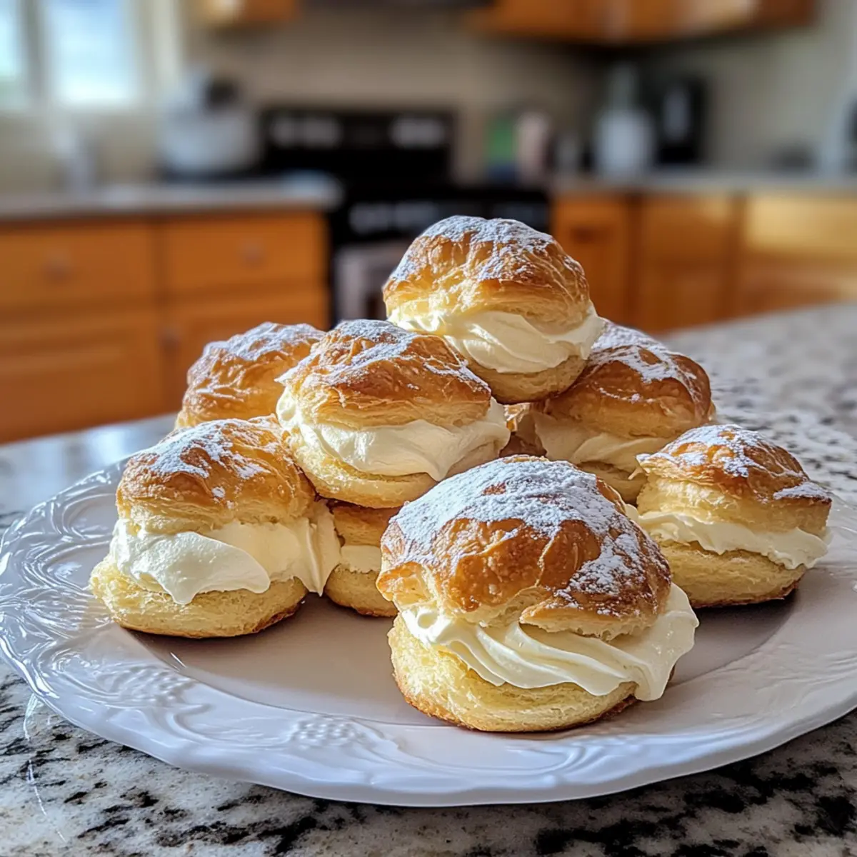 Jump to Recipe Print RecipeThere’s something truly magical about the delicate dance of dough and cream that results in Mom’s Famous Cream Puffs. These airy, cloud-like bites are not only a cherished family tradition but also quick to whip up for any gathering or cozy evening treat. As I pipe the dough onto the baking sheet, memories of laughter and joy fill the kitchen, promising that each puff will transport you straight to dessert heaven. Made with simple ingredients, these cream puffs are a delightful way to satisfy your sweet tooth without the fuss of complicated recipes. Plus, they’re perfect for impressing guests or simply indulging in a little self-care. Are you ready to transform your kitchen into a pastry wonderland? Let’s dive in! Why Are Cream Puffs So Irresistible? Light and Airy: Each cream puff is a cloud of bliss, balancing a crunchy exterior with a soft, fluffy interior. Rich Vanilla Cream: The luxurious filling of vanilla cream elevates these treats to gourmet status without any extra effort. Easy to Make: With just a few basic ingredients, you’ll have perfect puffs that even beginners can master. Impressive Presentation: Served dusted with powdered sugar, they look as stunning as they taste, making them the star of any dessert table. For a delightful pairing, try them with a side of fresh berries or a drizzle of chocolate sauce, too! Cream Puff Ingredients For the Dough All-purpose Flour – Provides structure to the cream puff pastry; substitute with gluten-free flour if needed. Butter – Adds richness and flavor to the pastry; unsalted butter is recommended for better control of saltiness. Water – Hydrates the flour to create steam during baking, resulting in puffed pastry; can be replaced with milk for a creamier taste. Eggs – Essential for light and airy texture; room temperature eggs mix in more easily. For the Filling Heavy Cream – Creates a rich and creamy filling; ensures that the cream puffs are luscious and satisfying. Powdered Sugar – Sweetens the filling and helps achieve a smooth texture; can be substituted with granulated sugar, though it may affect the texture. Vanilla Extract – Enhances the filling’s flavor; almond extract can be used for a unique twist. Optional Serving Enhancements Additional Powdered Sugar – For dusting the finished cream puffs; makes them look even more tempting. Fresh Berries or Chocolate Sauce – Elevates presentation; adds a fresh burst or a touch of indulgence to the dessert. Indulge in these delightful cream puffs, a homemade treat that’s sure to become a favorite! Step‑by‑Step Instructions for Mom’s Famous Cream Puffs Step 1: Preheat the Oven Begin by preheating your oven to 400°F (200°C). This temperature is crucial for creating the airy texture of your cream puffs. While the oven heats, line a baking sheet with parchment paper to ensure the puffs don’t stick, setting the stage for a perfect baking experience. Step 2: Make the Dough In a medium saucepan, combine 1 cup of water and ½ cup of butter over medium heat. As the butter melts, bring this mixture to a rolling boil. Once boiling, quickly add 1 cup of all-purpose flour, stirring vigorously until a thick dough forms that pulls away from the sides of the pan, creating a smooth ball. This process should take about 3–5 minutes. Step 3: Incorporate Eggs Remove the saucepan from heat and allow the dough to cool for about 5 minutes. Once it’s slightly warm, crack in 4 eggs one at a time, mixing thoroughly after each addition until the dough becomes smooth and glossy. This step is essential for giving your cream puffs that light and airy structure. Step 4: Pipe the Puffs Transfer the dough to a piping bag fitted with a large round tip. Pipe the dough onto the prepared baking sheet, creating 2-inch rounds spaced about 2 inches apart. Each mound should be smooth and uniform, resembling little clouds ready to puff up beautifully in the oven. Step 5: Bake Place the baking sheet in the preheated oven and bake for 20-25 minutes. Watch closely as the dough puffs and turns a lovely golden brown. Your cream puffs are done when they are hollow to the tap and have a crisp exterior. Avoid opening the oven during this time to maintain the temperature and allow them to rise. Step 6: Prepare the Filling While your cream puffs are baking, make the filling. In a mixing bowl, whisk together 1 cup of heavy cream, 1 cup of powdered sugar, and 1 teaspoon of vanilla extract. Beat until soft peaks form, creating a luscious vanilla cream that will sit heavenly inside your baked puffs. Step 7: Fill the Puffs Once the cream puffs are cooled completely, carefully split each one in half using a serrated knife. Gently fill each puff with the prepared vanilla cream mixture, ensuring it’s generous but not overflowing. This delightful filling adds the charm that truly makes Mom’s Famous Cream Puffs a family favorite. Step 8: Serve To finish, lightly dust your filled cream puffs with additional powdered sugar for an elegant touch. Serve them on a decorative plate, possibly with fresh berries or a drizzle of chocolate sauce for an extra burst of flavor. Your cream puffs are now ready to impress! Expert Tips for Cream Puffs Dough Consistency: Ensure the dough is smooth and glossy before piping; this guarantees proper puffing during baking and avoids dense puffs. Bake Steadily: Resist the urge to open the oven while baking; even a slight drop in temperature can cause your cream puffs to collapse. Room Temperature Eggs: Start with room temperature eggs for optimal mixing; they incorporate better into the dough, ensuring a lighter texture. Cutting Technique: Use a serrated knife to gently split the cream puffs for filling without crushing them; this helps maintain their airy structure. Flavor Variations: Feel free to experiment with flavorings for the filling; consider adding cocoa powder or fruit purée for exciting twists on traditional cream puffs. How to Store and Fr