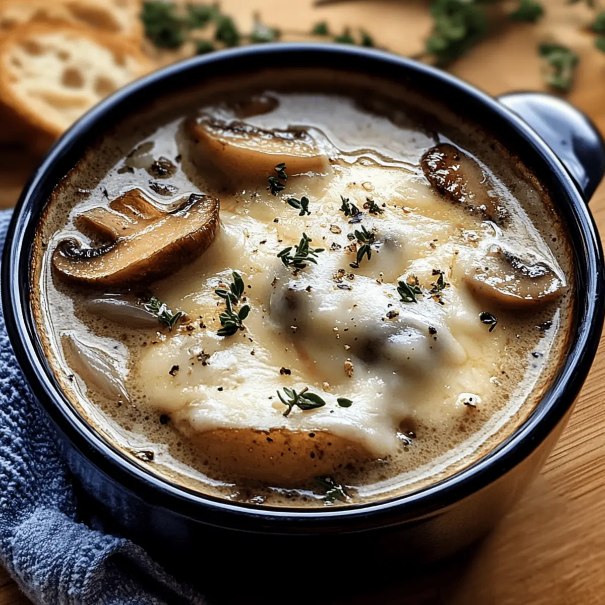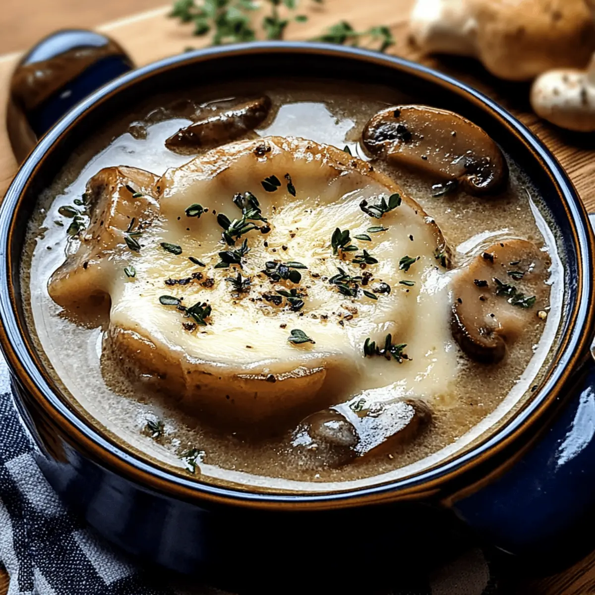 Jump to Recipe Print RecipeThe aroma of slow-cooked onions wafts through the kitchen like a warm hug, and suddenly, it feels like home. When the chilly breeze hits and fast food just won’t cut it, I find solace in crafting a bowl of Creamy French Onion and Mushroom Soup. This dish combines the rich sweetness of caramelized onions with the savory depth of earthy mushrooms, creating a cozy experience that lingers long after the last spoonful. Not only is this soup a comforting treat perfect for a brisk evening, but it’s also a breeze to prepare, impressing friends and family alike. With its vegetarian profile, it’s an inviting option for everyone at the table. So, are you ready to dive into this bowl of happiness and maybe even discover your favorite twist on a classic? Why is this soup so irresistible? Comforting warmth: This Creamy French Onion and Mushroom Soup is a delicious hug in a bowl, making it perfect for chilly nights. Rich flavors: Experience the deep, savory notes of caramelized onions and umami-rich mushrooms, balancing beautifully with creamy goodness. Easy to customize: Whether you want to add protein or try different cheeses, this recipe opens the door to countless variations. Quick and simple: With just a handful of ingredients and easy steps, you can whip up this delightful dish in a snap. Perfect for gatherings: Impress your friends and family with a dish that feels gourmet but is effortless to prepare; pair it with a crunchy baguette for a complete meal. This recipe is a perfect alternative to classic comforting soups like Chicken Noodle Soup or Baked Mac Cheese. Enjoy! Creamy French Onion and Mushroom Soup Ingredients For the Soup Onions – Provide savory sweetness and depth; substitute with shallots for a milder flavor. Mushrooms – Contribute earthy richness and umami; use shiitake or cremini for a stronger taste. Butter – Adds richness and aids in caramelizing onions; olive oil can be used for a lighter option. Garlic – Enhances flavor; fresh garlic is best, but garlic powder can be used in a pinch. Vegetable Broth – The base for the soup, adding depth; chicken broth can be used for a non-vegetarian option. Heavy Cream – Provides creaminess and richness; substitute with half-and-half or coconut cream for a lighter version. Cheese (e.g., Gruyère) – Garnish that adds flavor and decadence; use Swiss cheese or mozzarella if unavailable. Fresh Herbs (e.g., thyme) – Freshens the dish and adds aroma; dried herbs can be substituted but use less. Step‑by‑Step Instructions for Creamy French Onion and Mushroom Soup Step 1: Caramelize Onions In a large pot, melt 3 tablespoons of butter over medium-low heat. Add 3 sliced onions, stirring occasionally for about 30-40 minutes, or until they become golden brown and soft. This process is key for developing a deep flavor in your Creamy French Onion and Mushroom Soup, so be patient and don’t rush it! Step 2: Sauté Mushrooms Once the onions are beautifully caramelized, add 2 minced garlic cloves and 8 ounces of sliced mushrooms to the pot. Continue to sauté for about 5-7 minutes until the mushrooms are tender and any excess liquid evaporates. This step enhances the earthy richness of the soup, making it even more comforting. Step 3: Add Broth Pour in 4 cups of vegetable broth, stirring to combine all the ingredients. Bring the mixture to a gentle simmer over medium heat and let it cook for 10-15 minutes. This simmering time allows the flavors of the onions and mushrooms to meld beautifully, crafting the base of your Creamy French Onion and Mushroom Soup. Step 4: Incorporate Cream Reduce the heat to low, then stir in 1 cup of heavy cream gradually, ensuring it blends smoothly with the soup. Let it return to a gentle simmer for about 5 minutes. This addition creates a velvety texture and rich taste, elevating the comfort level of the soup to a new height. Step 5: Serve Ladle the hot soup into bowls and top each serving with a handful of shredded Gruyère cheese. For an aromatic finish, sprinkle some fresh thyme on top. This final step adds extra flavor and a touch of sophistication to your Creamy French Onion and Mushroom Soup, making it even more inviting. How to Store and Freeze Creamy French Onion and Mushroom Soup Fridge: Store the soup in an airtight container for up to 3 days. Let it cool to room temperature before sealing to avoid condensation. Freezer: For longer storage, freeze the soup in freezer-safe containers for up to 3 months. Leave some space at the top, as liquids expand when frozen. Reheating: Thaw overnight in the fridge before reheating. Warm gently on the stove over medium heat, stirring occasionally to maintain its creamy texture. Portioning: Consider freezing in individual portions for quick meals. Simply scoop into smaller containers for easy reheating whenever the craving for creamy French onion and mushroom soup strikes! What to Serve with Creamy French Onion and Mushroom Soup Cozy up your dinner table with delightful pairings that elevate your soup experience and create a memorable meal. Crunchy Baguette: The perfect vessel for scooping up rich soup and cheese, a warm, crusty baguette adds texture that complements the creamy broth. Mixed Green Salad: A side salad with tangy vinaigrette provides a refreshing contrast to the rich flavors, balancing the meal beautifully. Garlic Breadsticks: Crispy on the outside and soft on the inside, these savory bites are perfect for dipping into your flavorful soup. Spiced Roasted Potatoes: The savory, crispy exterior of seasoned roasted potatoes offers a comforting side, adding heartiness without overpowering the dish. Cheesy Gratin: This indulgent side brings layers of melted cheese and buttery layers, enhancing the comforting essence of your Creamy French Onion and Mushroom Soup. Red Wine: A glass of full-bodied red wine pairs beautifully, its tannins complementing the rich flavors of the soup while offering a touch of elegance. Lemon Tart: For