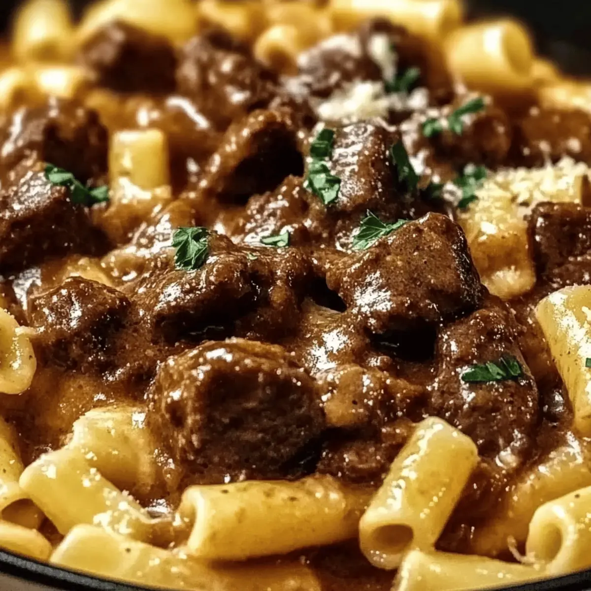 Jump to Recipe Print Recipe“Did you hear about the amazing pasta dish that can turn any weeknight into a special occasion?” That’s exactly what I thought when I first discovered this Creamy Garlic Beef Pasta recipe! It has quickly become a favorite in my kitchen, delivering both comfort and satisfaction with each bite. With tender slices of beef enveloped in a rich, garlicky sauce, this dish offers not just an indulgent experience but also flexibility—substitute ground beef, switch up the pasta shape, or adjust the creaminess according to your taste. Plus, it requires minimal prep time, making it the perfect solution for busy evenings. Whether you’re feeding a hungry family or treating yourself to a cozy dinner, you’ll find solace in this hearty creation. Are you curious to see how simple yet satisfying this recipe can be? Let’s dive in! Why Is This Pasta Recipe Irresistible? Comforting Experience: This Creamy Garlic Beef Pasta is the ultimate comfort food, perfect for cozy nights in or feeding a crowd. Easy to Make: With just a few simple steps, you’ll have a delightful dish ready on your table in no time. Flexible Ingredients: Substitute ground beef for swift prep or switch to different pasta shapes for personalized flair, as seen in our Baked Beef Chiles recipe. Rich, Velvety Sauce: The garlicky, creamy sauce clings beautifully to each bite, making every forkful a decadent experience! Crowd-Pleasing Flavor: It’s a dish that satisfies even the pickiest eaters, ensuring everyone leaves the table happy. Perfect for Meal Prep: Make the beef and sauce ahead of time for an effortless weeknight dinner; just combine with freshly cooked pasta when you’re ready to eat! Creamy Garlic Beef Pasta Ingredients • Dive right into the delightful world of Creamy Garlic Beef Pasta with these essential ingredients! For the Beef Beef – Use thinly sliced beef for a tender texture; ground beef is a fantastic substitute for quicker prep. For the Pasta Pasta – Fettuccine, linguine, or penne are recommended for best sauce adherence; feel free to switch it up based on your favorite! For the Sauce Garlic – Fresh garlic cloves bring a robust flavor; using pre-minced will save time, but fresh is best! Heavy Cream – This key ingredient adds irresistible creaminess; half-and-half can lighten the dish while still delivering a rich taste. Parmesan Cheese – Grated cheese gives depth; swapping in Pecorino Romano can add a different yet equally delightful flavor. Onion – Finely chopped onion enhances the dish’s sweetness; shallots can serve as a milder alternative. Butter – This adds richness to the sauce; olive oil can be a lighter choice without sacrificing flavor. Chicken Broth – It adds depth and flavor; swapping for vegetable broth makes the dish vegetarian-friendly. For Garnishing Fresh Herbs (Parsley/Basil) – A sprinkle of herbs brightens the dish and adds a pop of color; they’re optional but highly encouraged! Step‑by‑Step Instructions for Creamy Garlic Beef Pasta Step 1: Cook the Pasta Begin by bringing a large pot of salted water to a rolling boil over high heat. Add your chosen pasta, such as fettuccine or penne, and cook it until al dente, usually around 8–10 minutes. Once done, reserve ½ cup of the pasta water for later use, then drain the pasta and set it aside. Step 2: Cook the Beef In a large skillet, heat a tablespoon of oil over medium-high heat. Add thinly sliced beef seasoned with salt and pepper, cooking for about 3–4 minutes until it’s browned and no longer pink. Once it’s beautifully seared, remove the beef from the skillet and set it aside on a plate, allowing the residual heat in the pan to work its magic. Step 3: Make the Sauce In the same skillet, melt two tablespoons of butter over medium heat. Add the finely chopped onion and sauté for about 3 minutes until it turns translucent. Next, stir in minced garlic and cook for an additional 30 seconds, until fragrant. Pour in a splash of chicken broth to deglaze the pan, scraping up any flavorful bits, then stir in heavy cream and bring to a gentle simmer. Step 4: Thicken the Sauce Allow the sauce to simmer on low heat for around 5 minutes, stirring occasionally, until it thickens slightly. You’re looking for a creamy consistency that will coat your pasta beautifully. If the sauce seems too thick, you can add reserved pasta water a little at a time until it reaches your desired texture. Step 5: Combine Ingredients Return the cooked beef to the skillet with the creamy garlic sauce, mixing well to combine. Then, add the drained pasta directly into the skillet, tossing everything together gently. Ensure each strand of pasta is coated in that luscious sauce, adjusting the consistency with more pasta water if needed. Step 6: Finish and Serve Once combined, stir in grated Parmesan cheese until it melts into the sauce, adding an irresistible savory depth. Taste and adjust seasoning if necessary. Garnish your Creamy Garlic Beef Pasta with freshly chopped parsley or basil, and serve promptly for a warm, comforting dish that delights! Make Ahead Options These Creamy Garlic Beef Pasta preparations are perfect for busy weeknights! You can prepare the beef and sauce up to 3 days in advance; just store them in airtight containers in the refrigerator to maintain their rich flavors. When you’re ready to serve, cook your pasta fresh while gently reheating the beef and sauce in a skillet over low heat, adding a splash of pasta water to loosen it up if needed. This method will help you achieve that delightful, creamy texture while saving precious time during your busy evenings. With these make-ahead options, you’ll enjoy the comfort of a homemade dinner without the last-minute rush! How to Store and Freeze Creamy Garlic Beef Pasta Fridge: Store leftover Creamy Garlic Beef Pasta in an airtight container for up to 3 days. Reheat gently on the stovetop or in the microwave, adding a splash of water if needed. F
